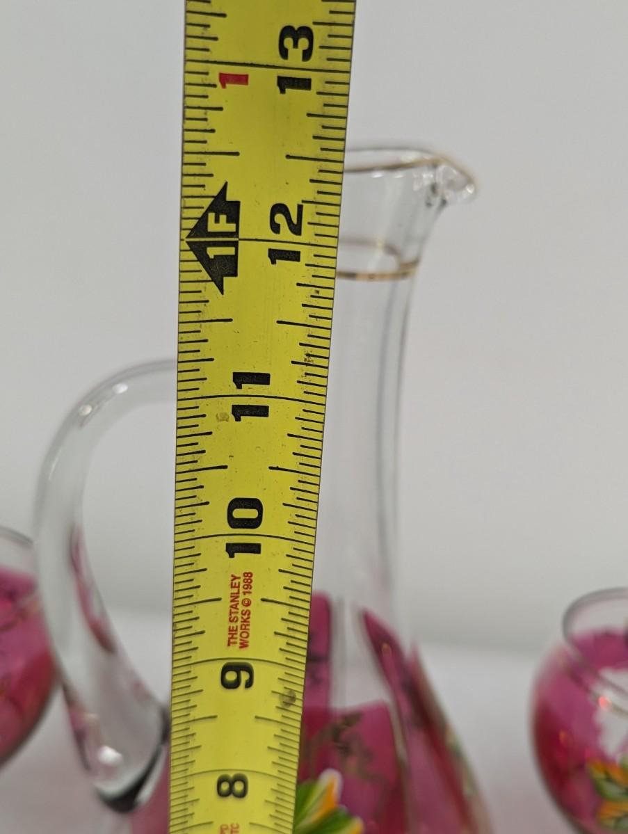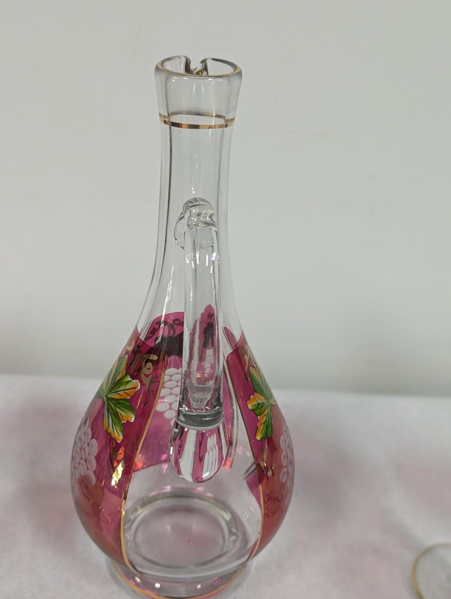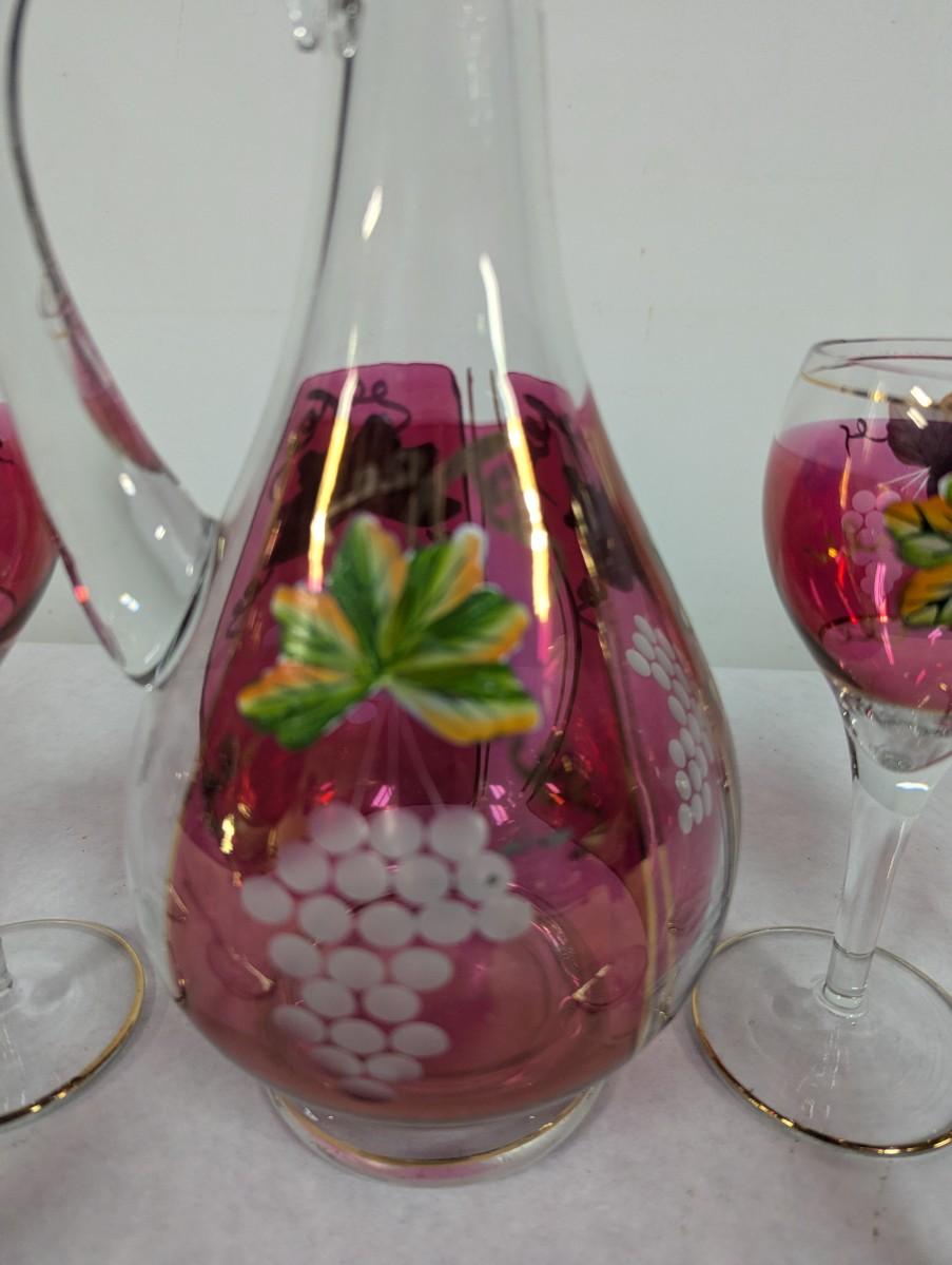 Hand Painted Vintage Wine Decanter & 6 Glasses