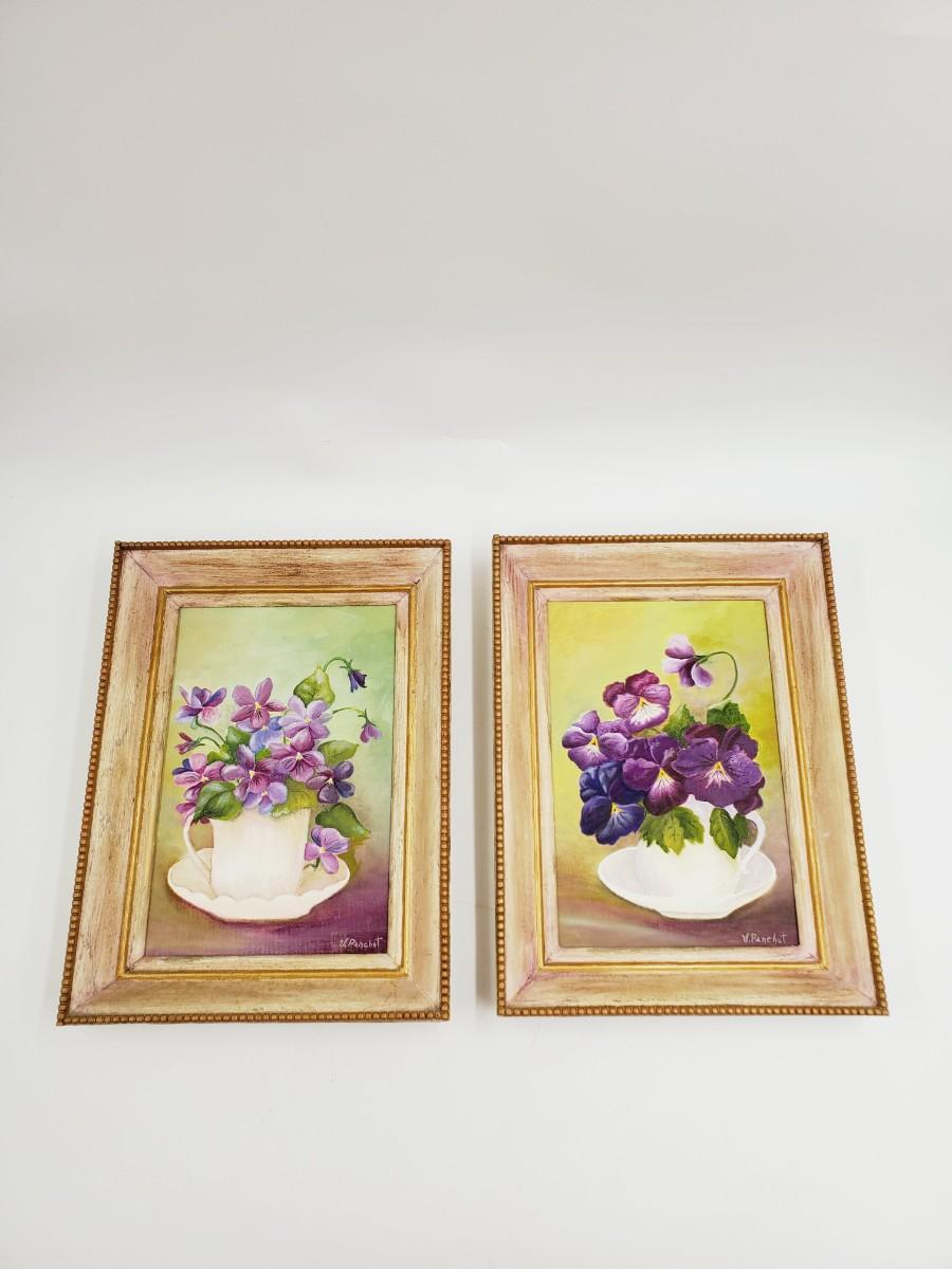 HAND PAINTED VIOLET PRINTS SET OF 2 SIGNED "V.PANCHOT"T