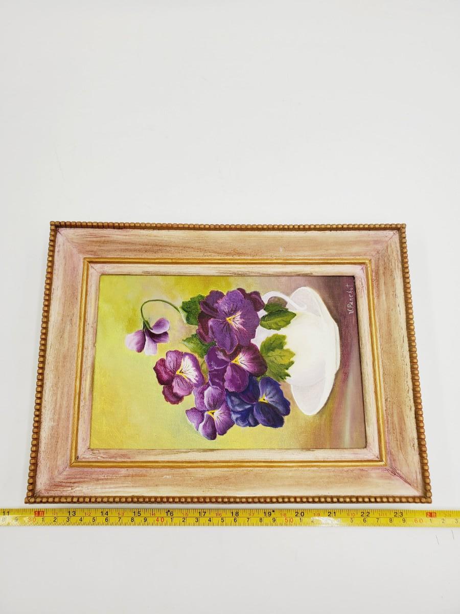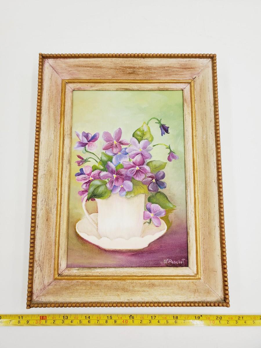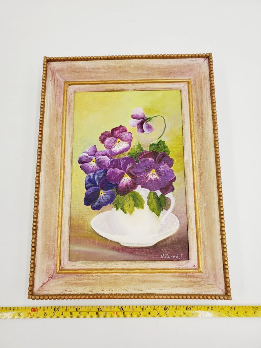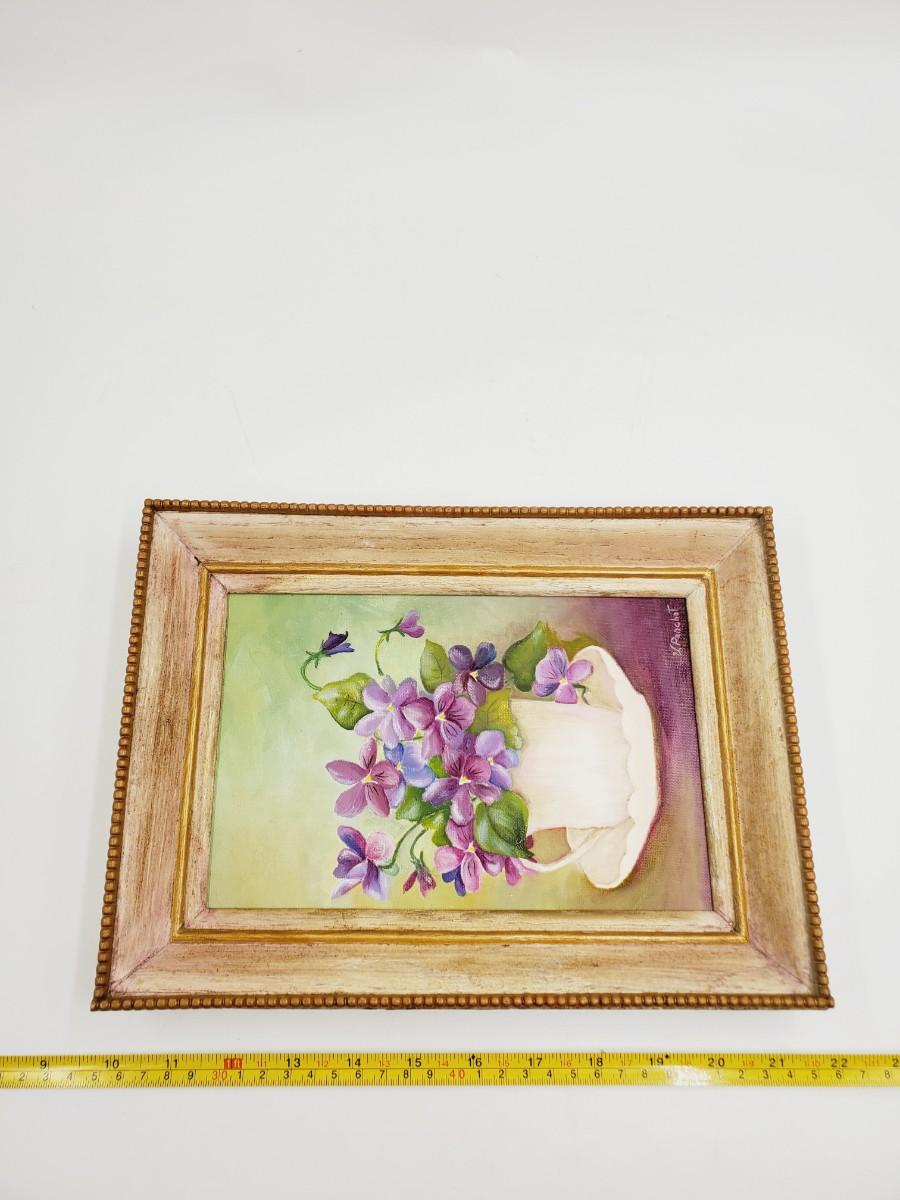 Very pretty set of 2 hand painted Violets, frames measure approximately 11.5in. L X 8.5in W
