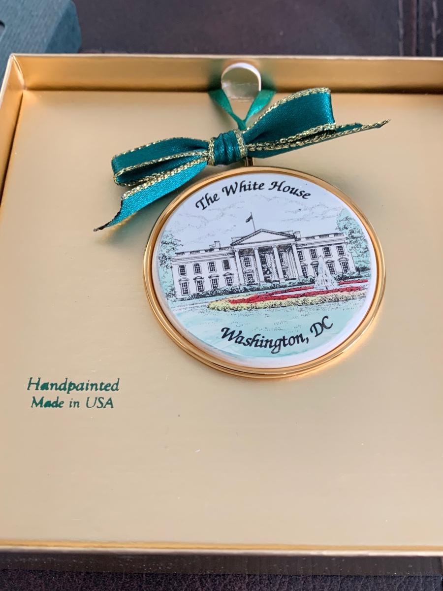 Hand Painted White House Ornament Barlow in Box