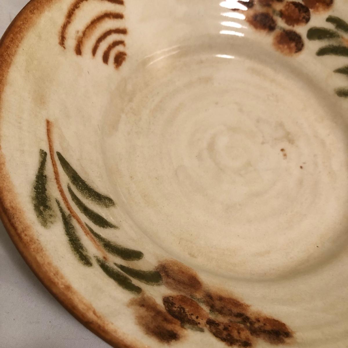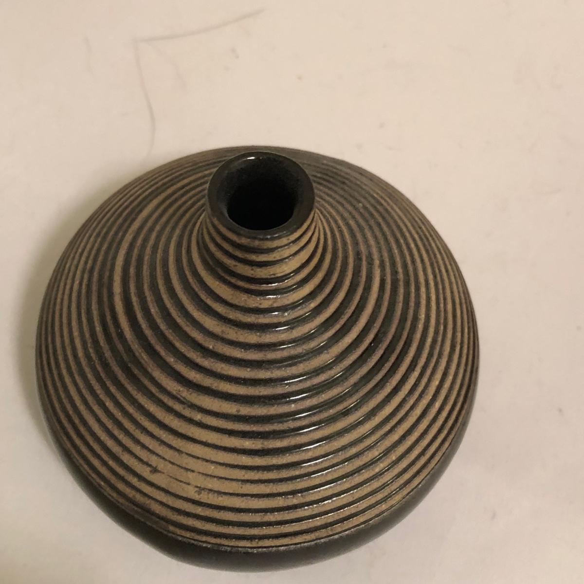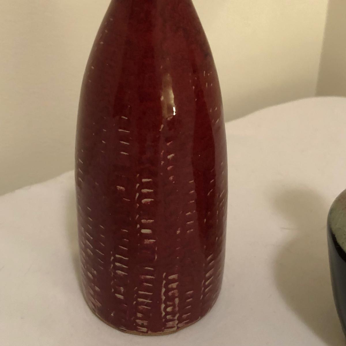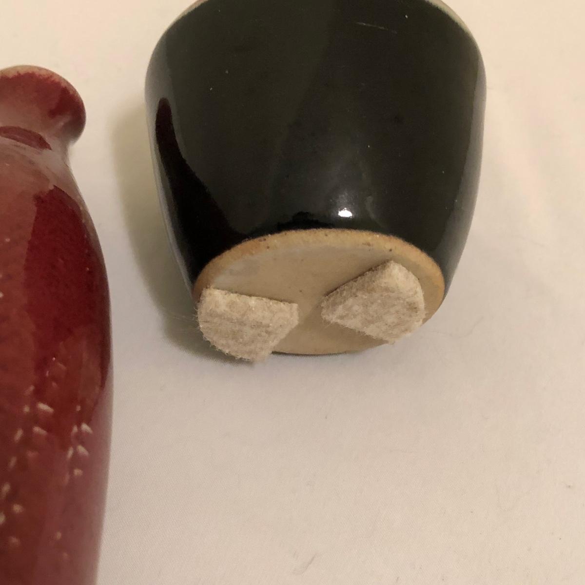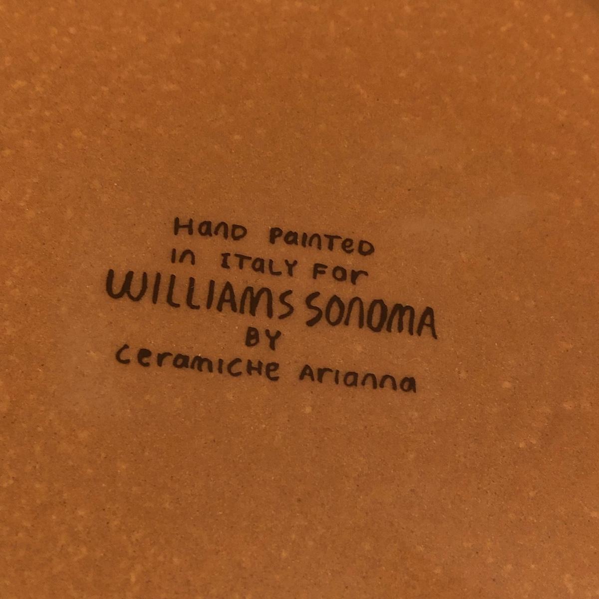 This lot has 4 pieces of pottery. The “Hand painted in Italy for Williams Sonoma by Ceramiche Arianna” bowl is 10” in diameter and is 2.5” tall. The tallest of the bud vases has a 2.5” base and is 6.5” tall. The two tone bud vase is about 3” at its’ widest and stands 5.5” tall. The bulbous bud vase is over 3” wide and is 3.5” tall. Two vases have felt stuck to bottom, see pictures. Shipping Available.
