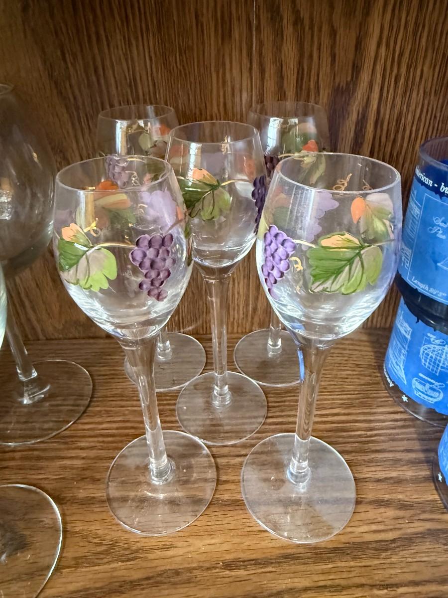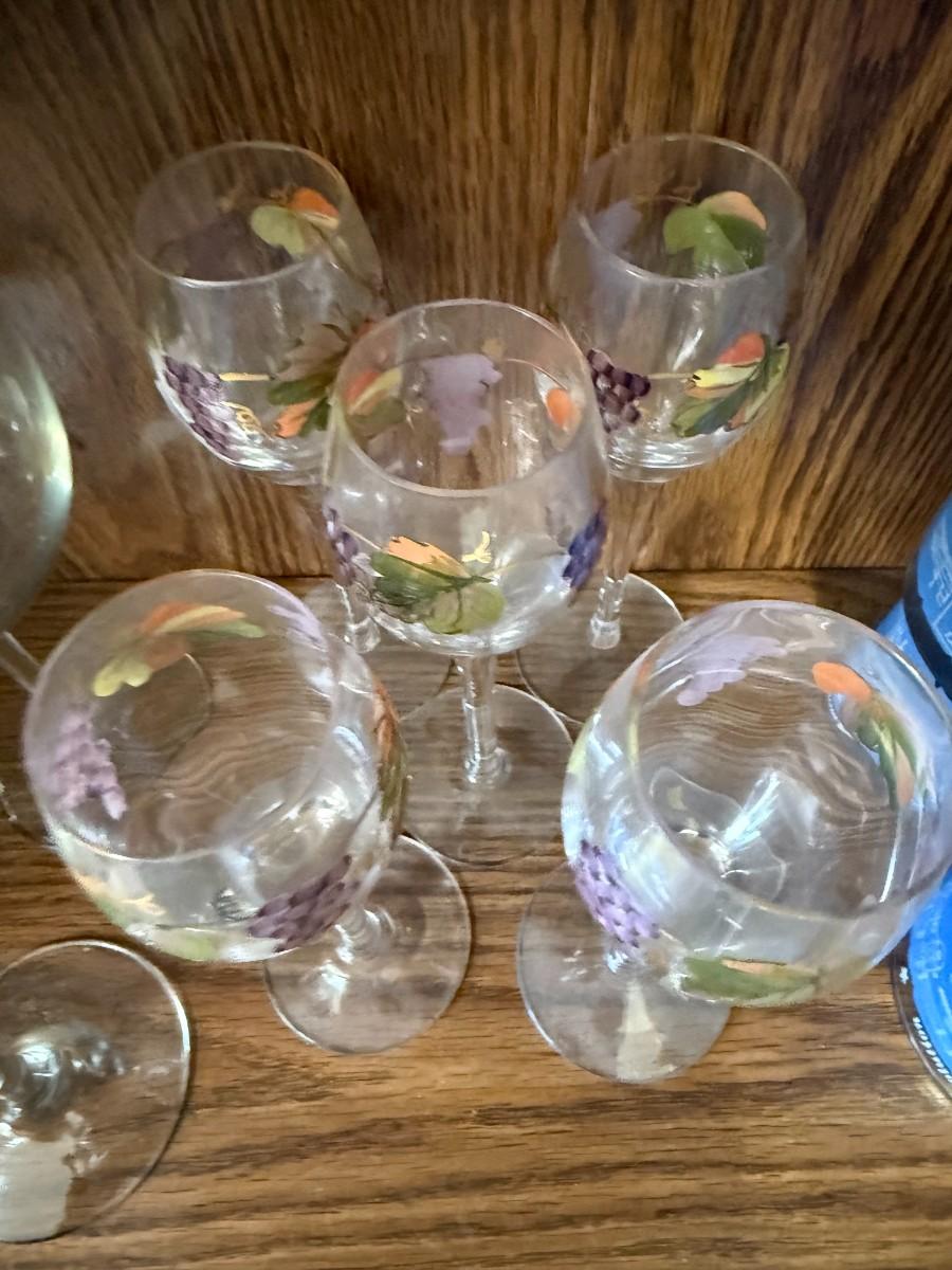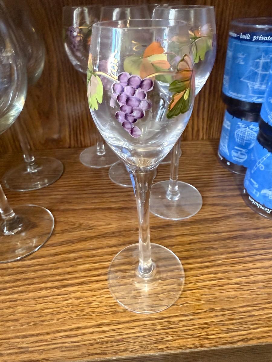 Hand Painted Wine Glasses with Grapes Design Set of 5