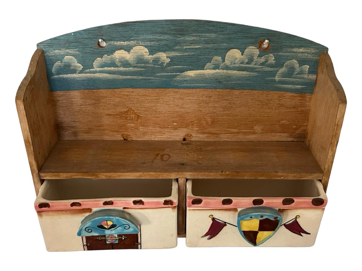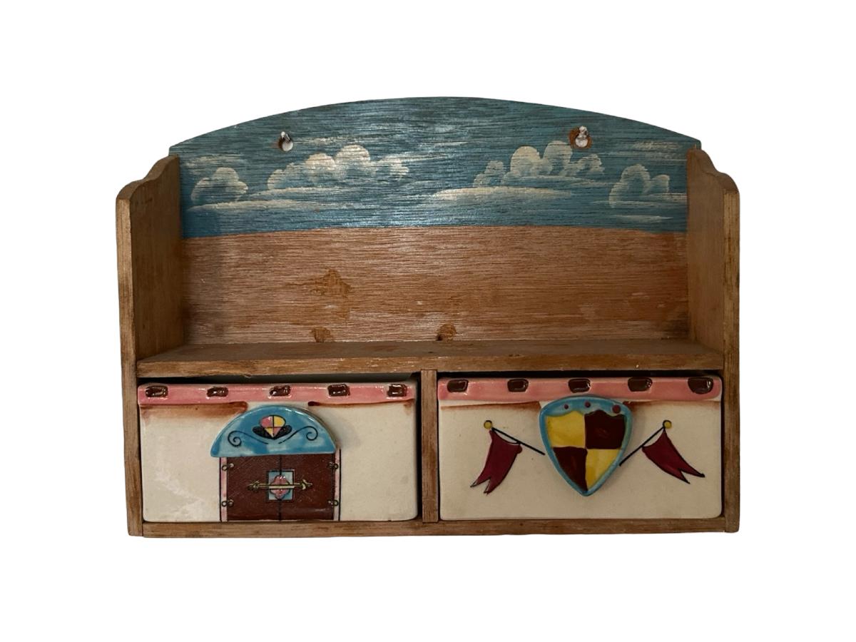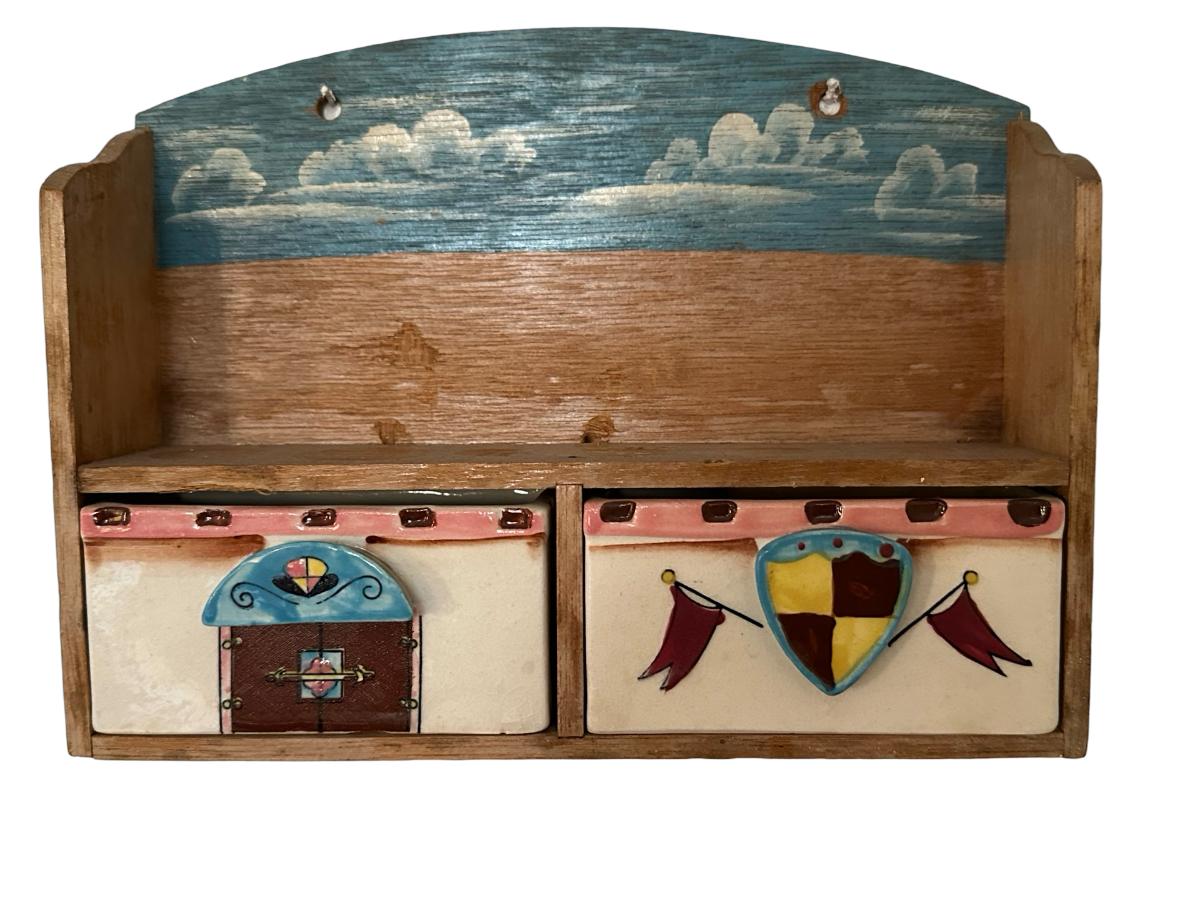 Hand Painted Wood Base with Ceramic Drawers Wall Hanging