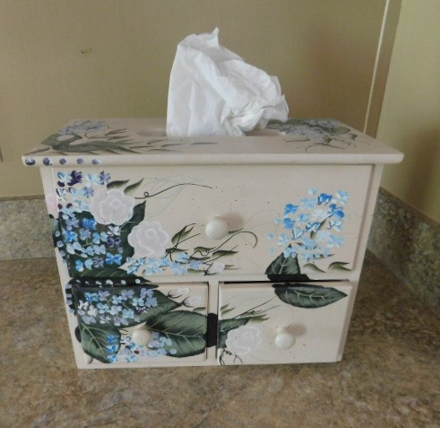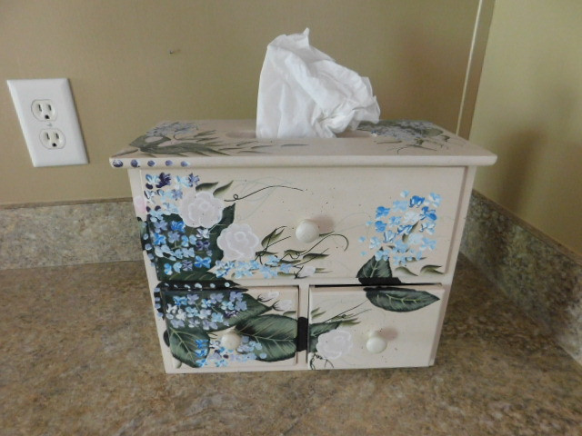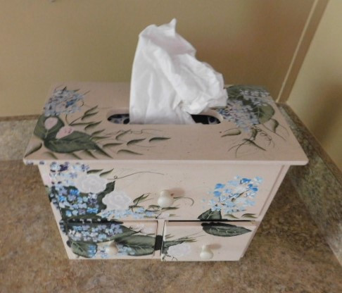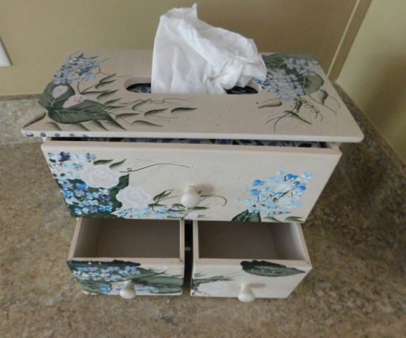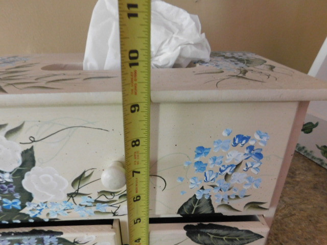 Hand Painted Wood Tissue Box with Storage Drawers 11"x9"