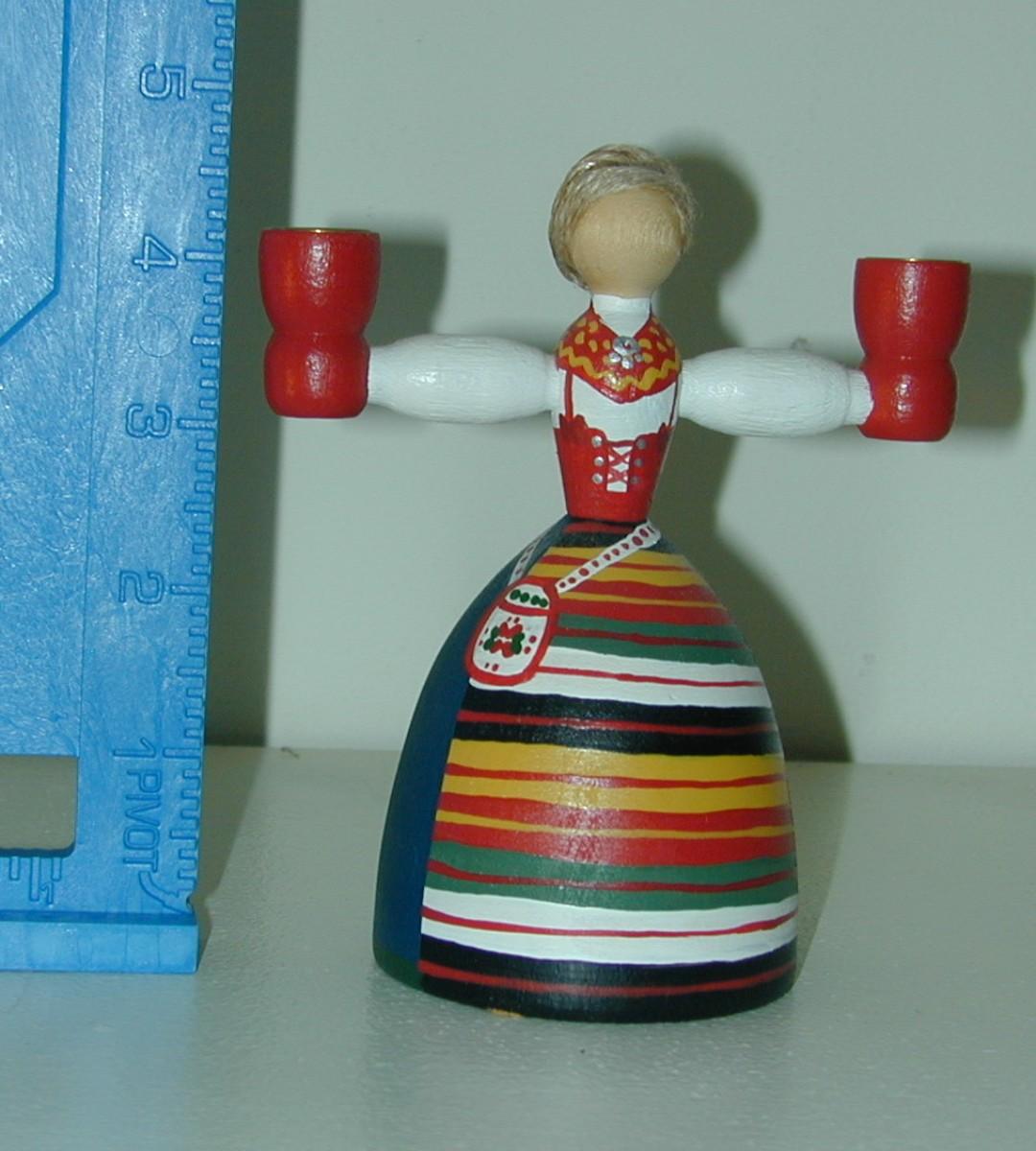 Hand Painted Wood Woman Candle Holder Originalet Fran Hemslojden