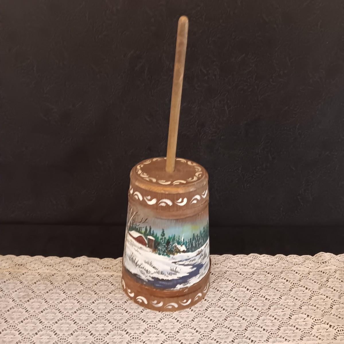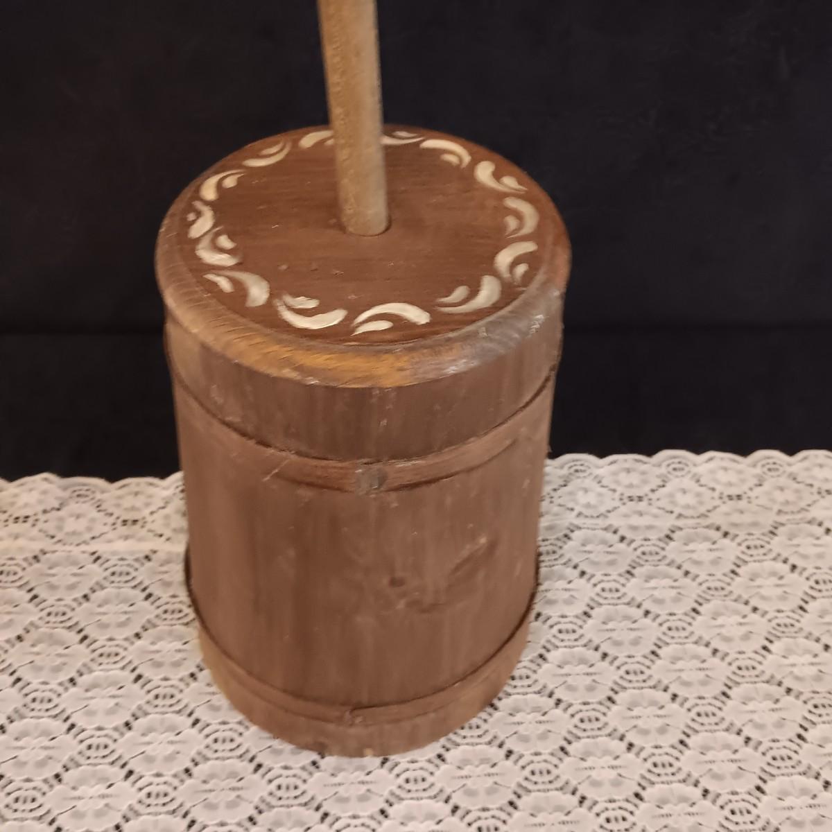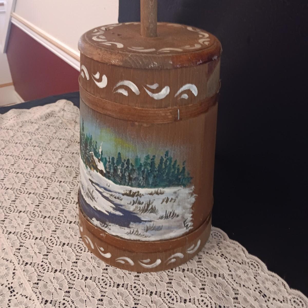 HAND PAINTED WOODEN BUTTER CHURN