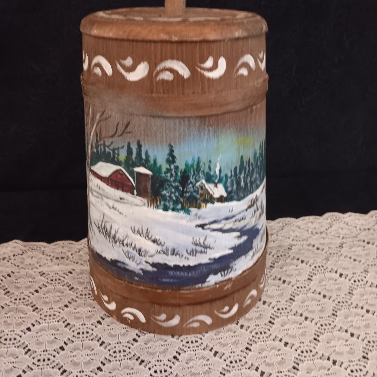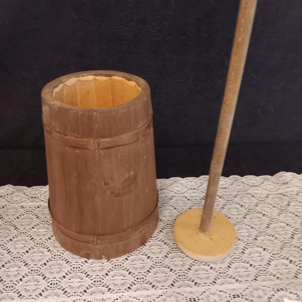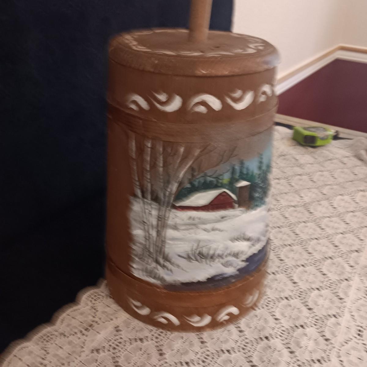HAND PAINTED WOODEN BUTTER CHURN