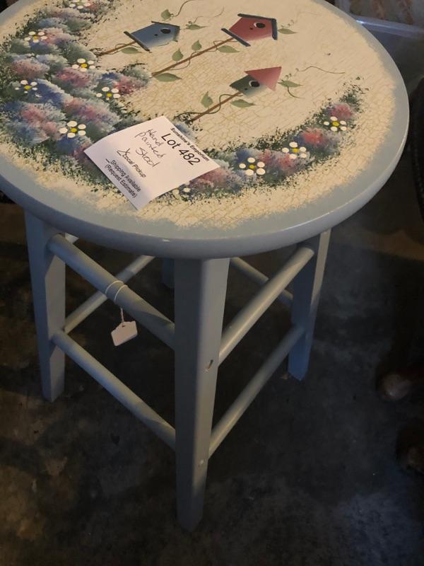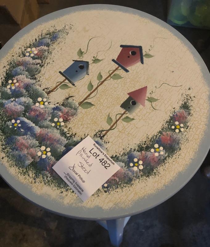 Hand Painted Wooden Stool w/Bird Houses - Lot 482