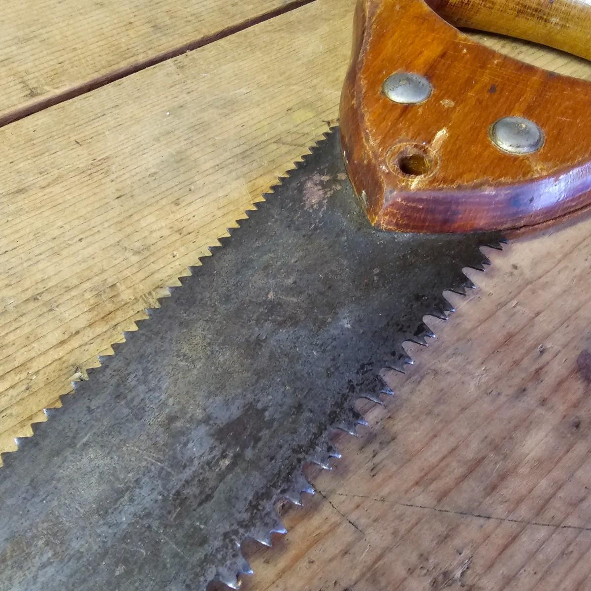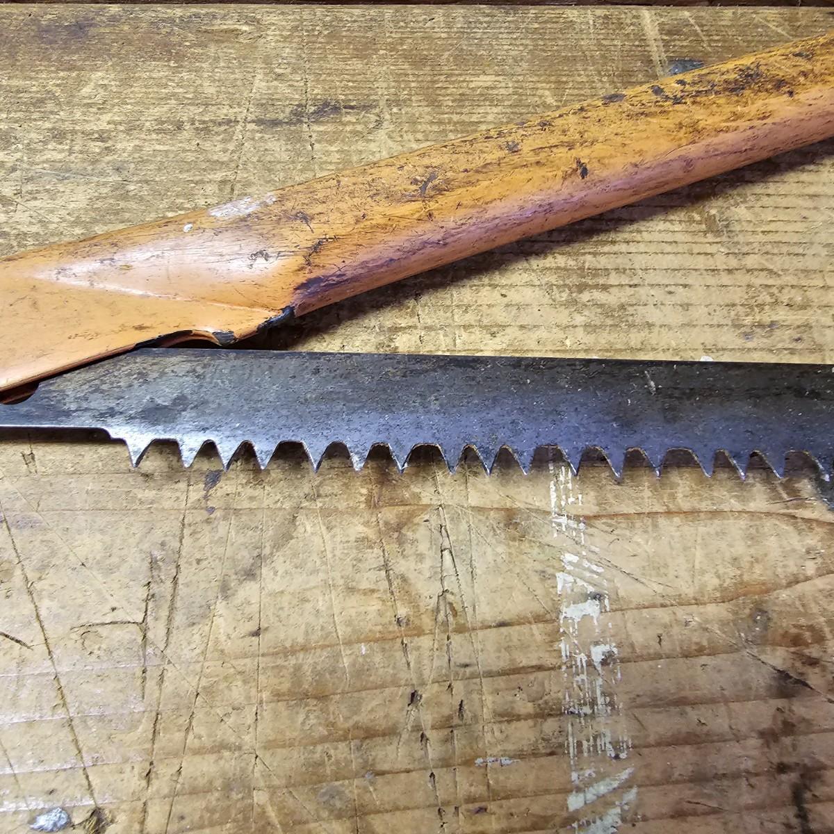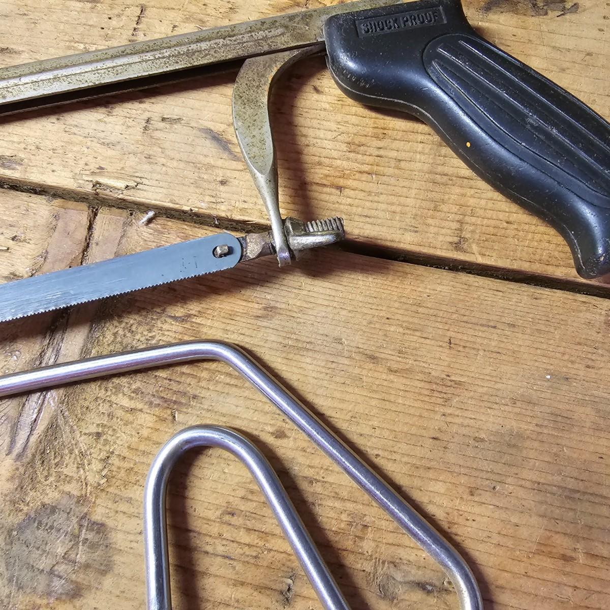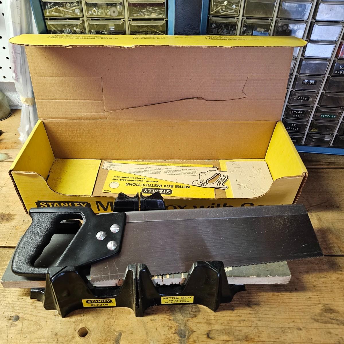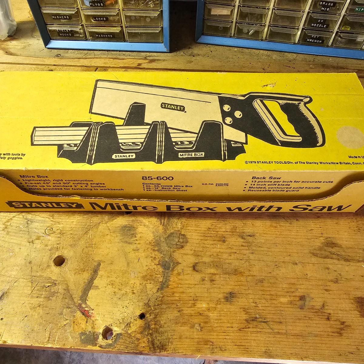 An assortment of hand saws, miter box, hack saw. Stanley miter box with 14" back saw, some crosscut saws for tree work. Extra hacksaw blades included. See photos for details. Shipping available.