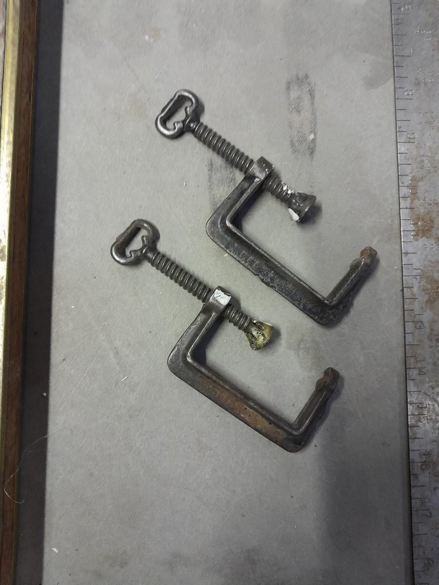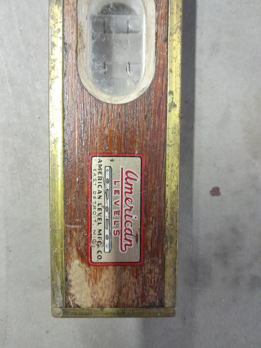 HAND SAW, CLAMPS, WOOD AND BRASS LEVEL AND A CARPENTERS SQUARE