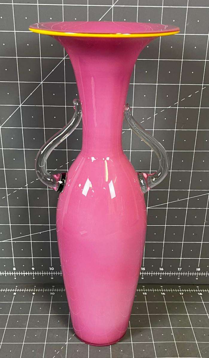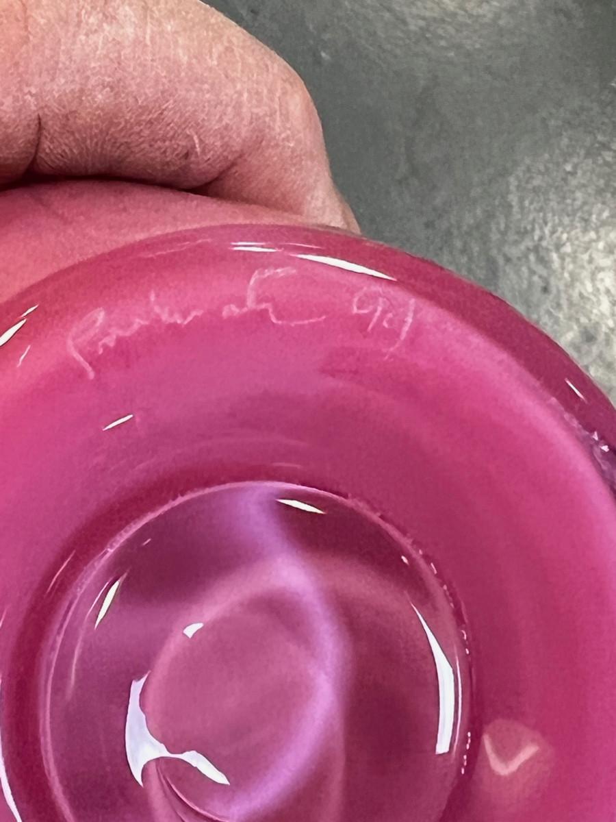 Hand Signed / Hand Blown 1994 Pink Glass Venetian Vase