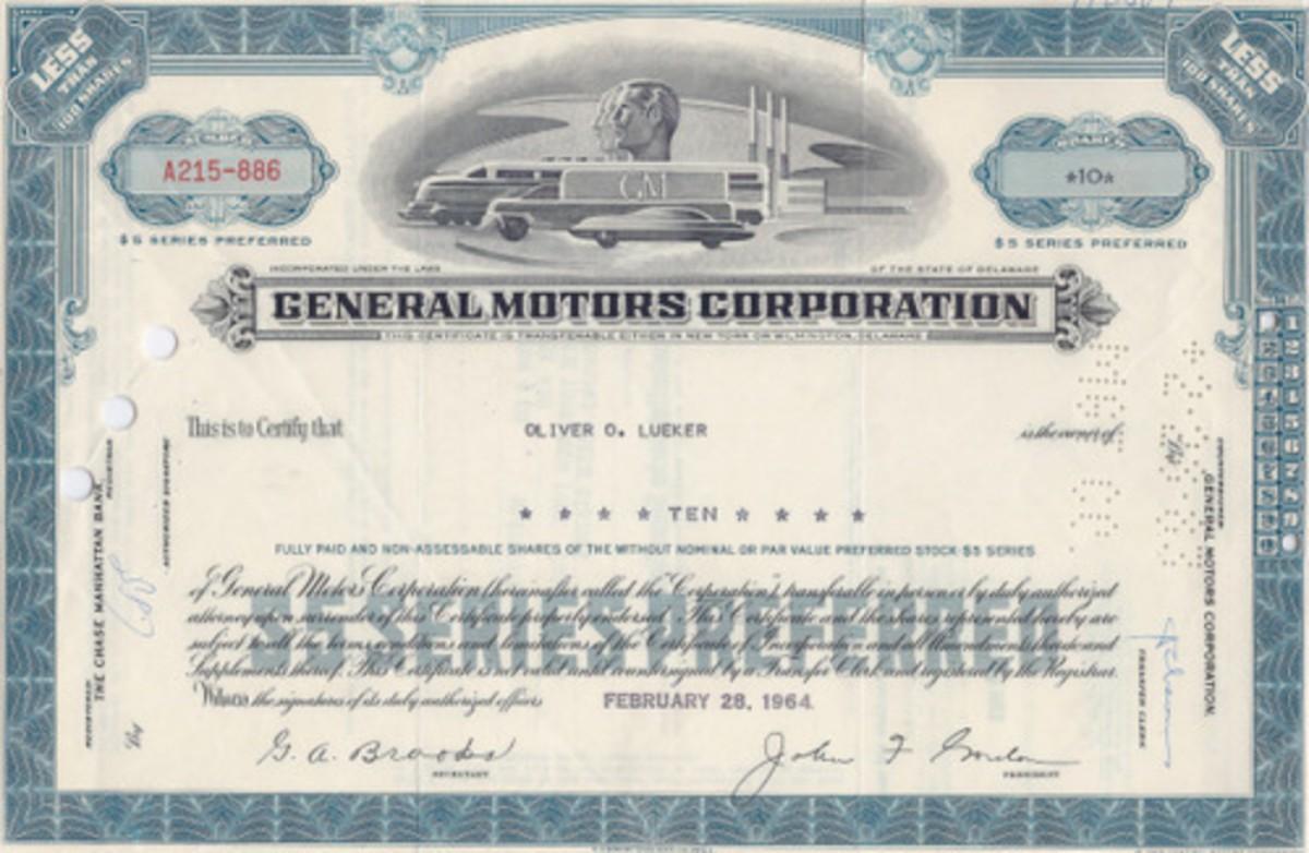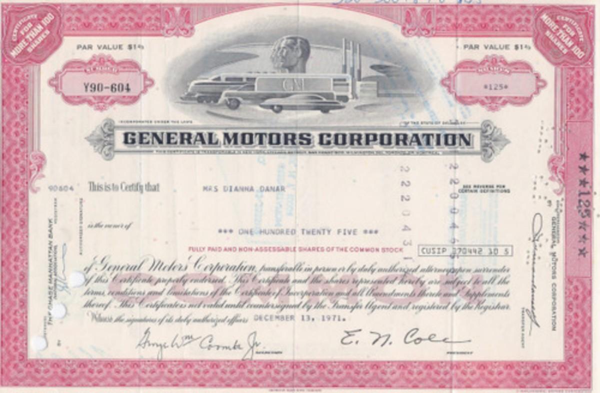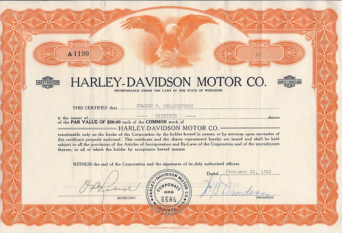 Hand Signed Harley Davidson Stock Cert. & 2 GM Certs.