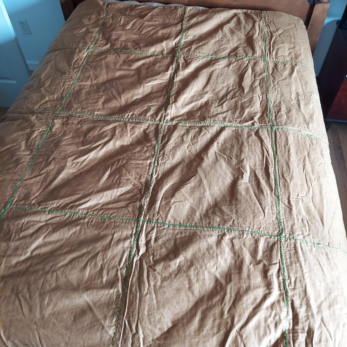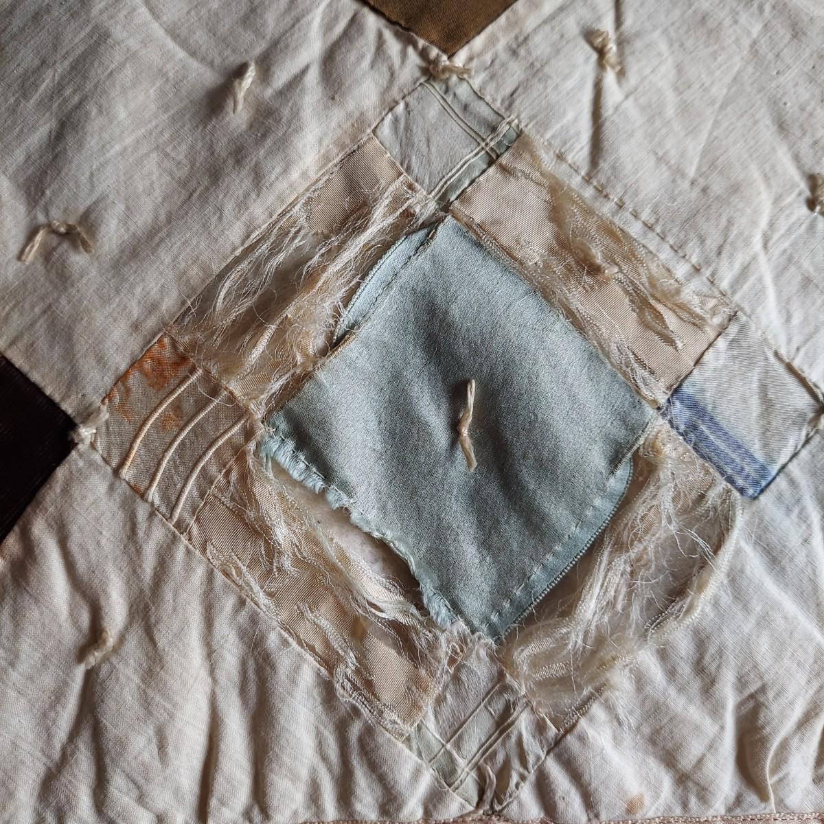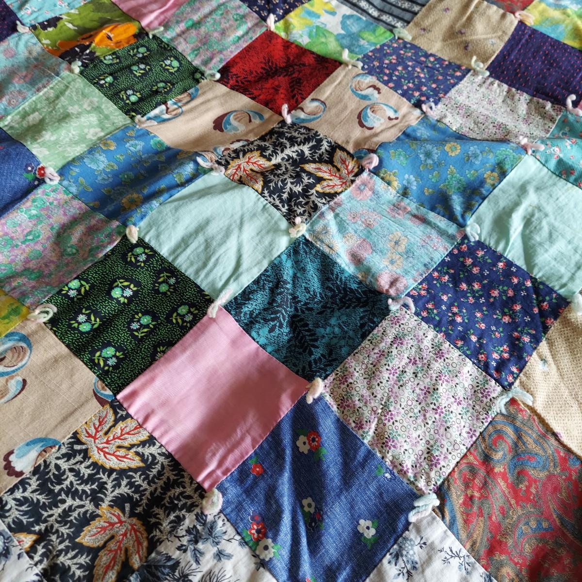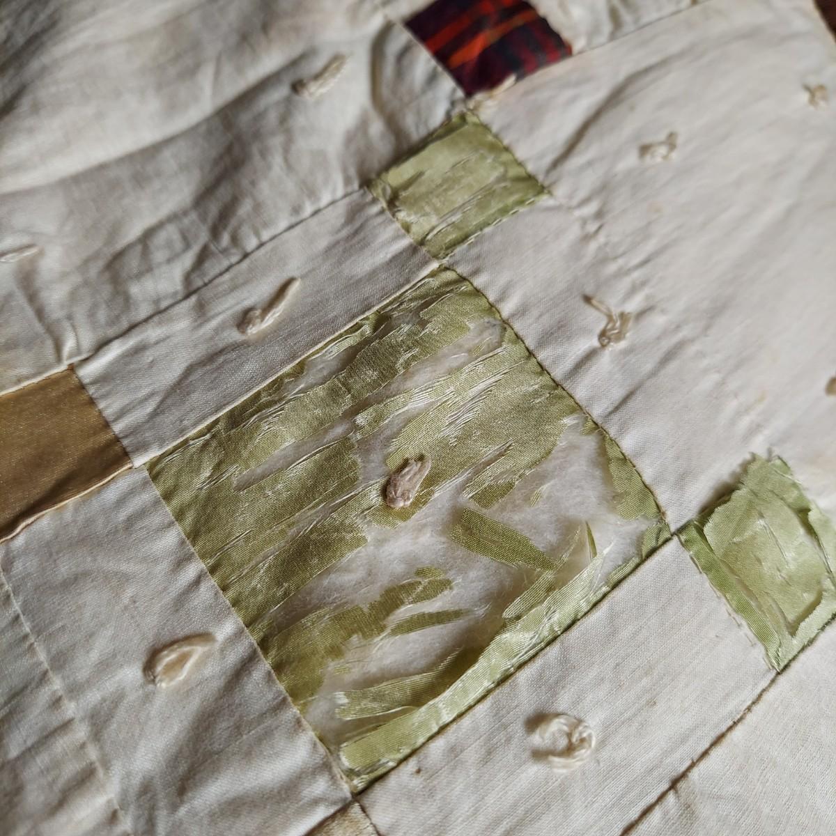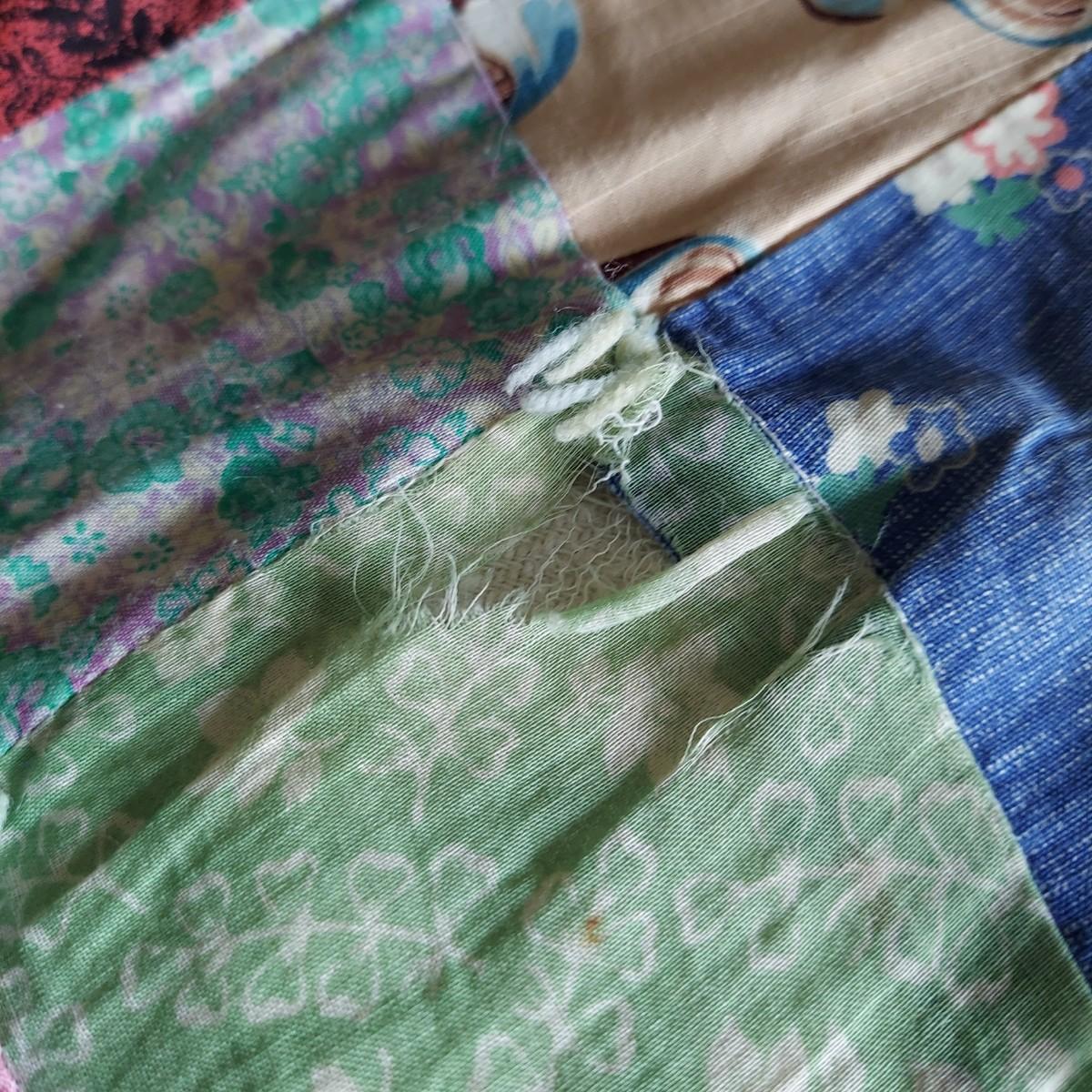 Five quilts that appear to be hand stitched and/or hand quilted. One quilt is quite old. It's dated 1891. It is very fragile and has some tears and worn areas. It measures 69” x 76"H. Another quilt, mostly white, also has some areas with wear. Please see photos for details. Shipping available