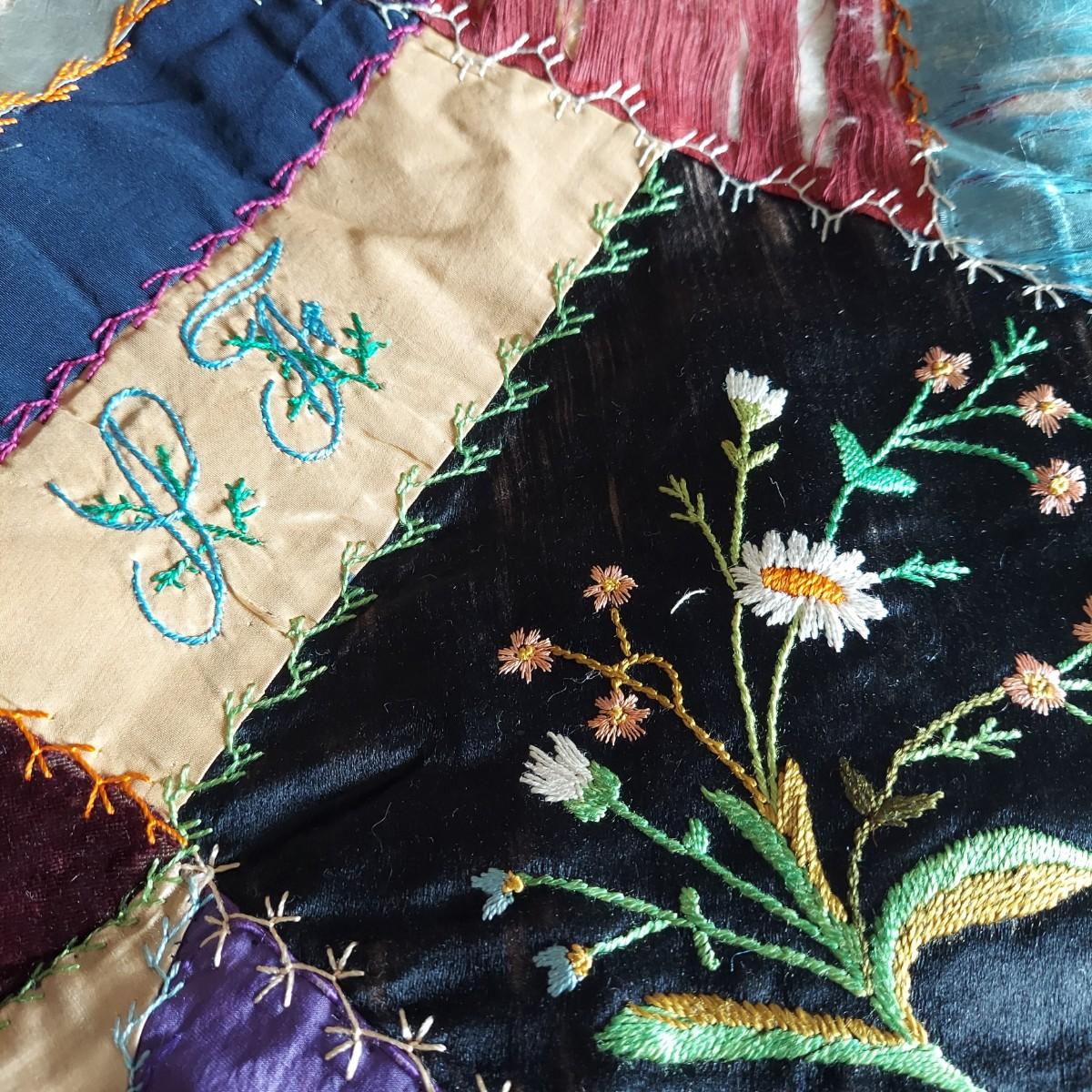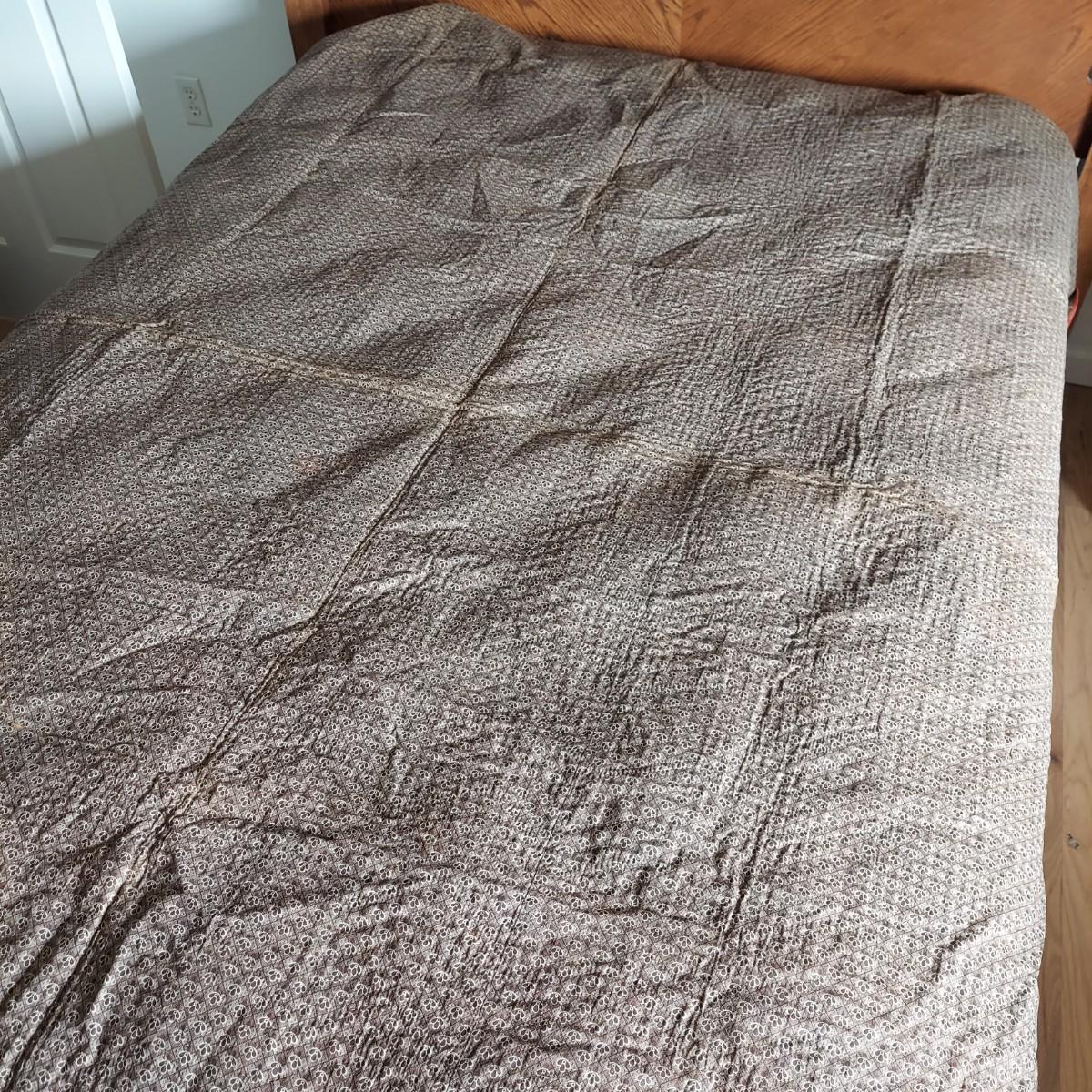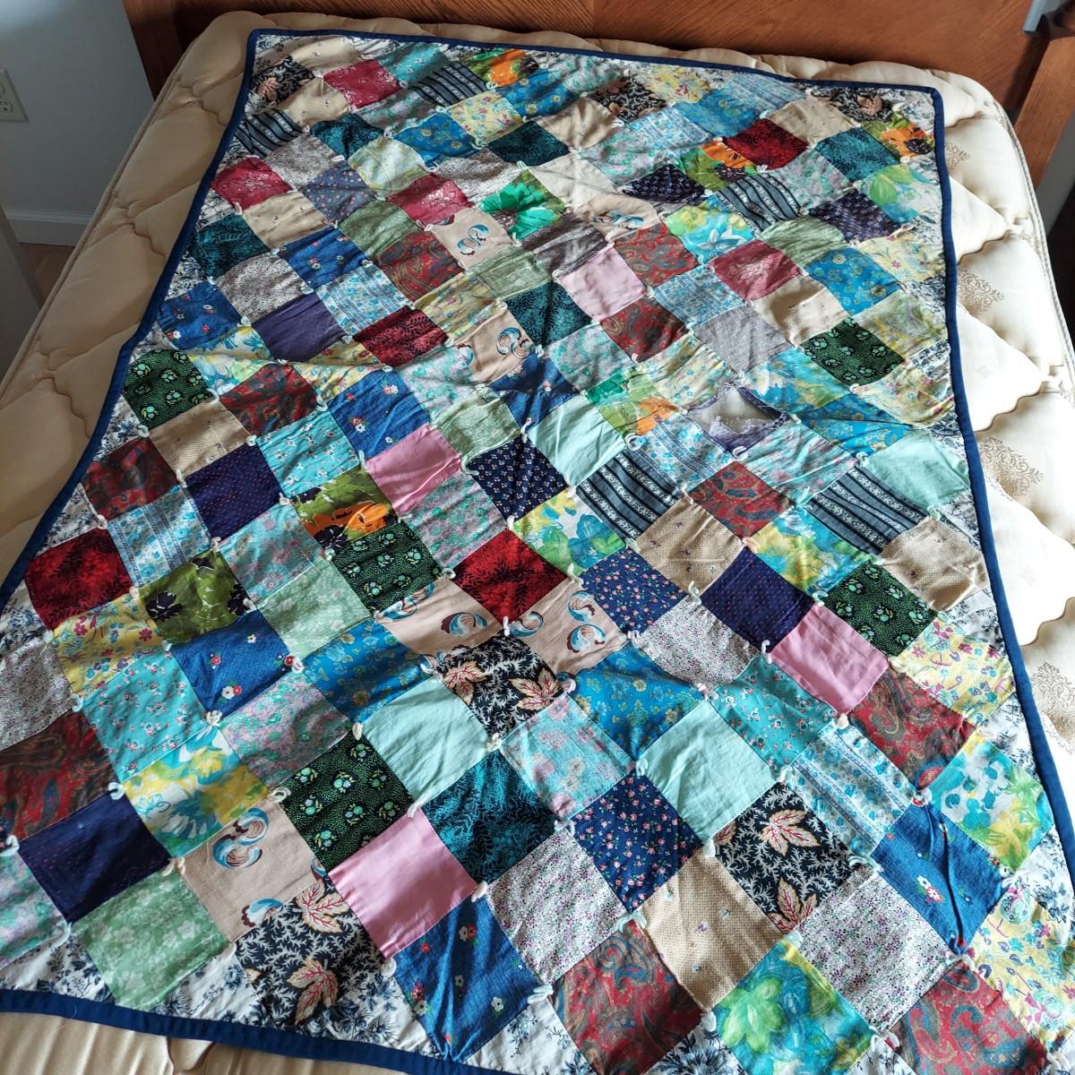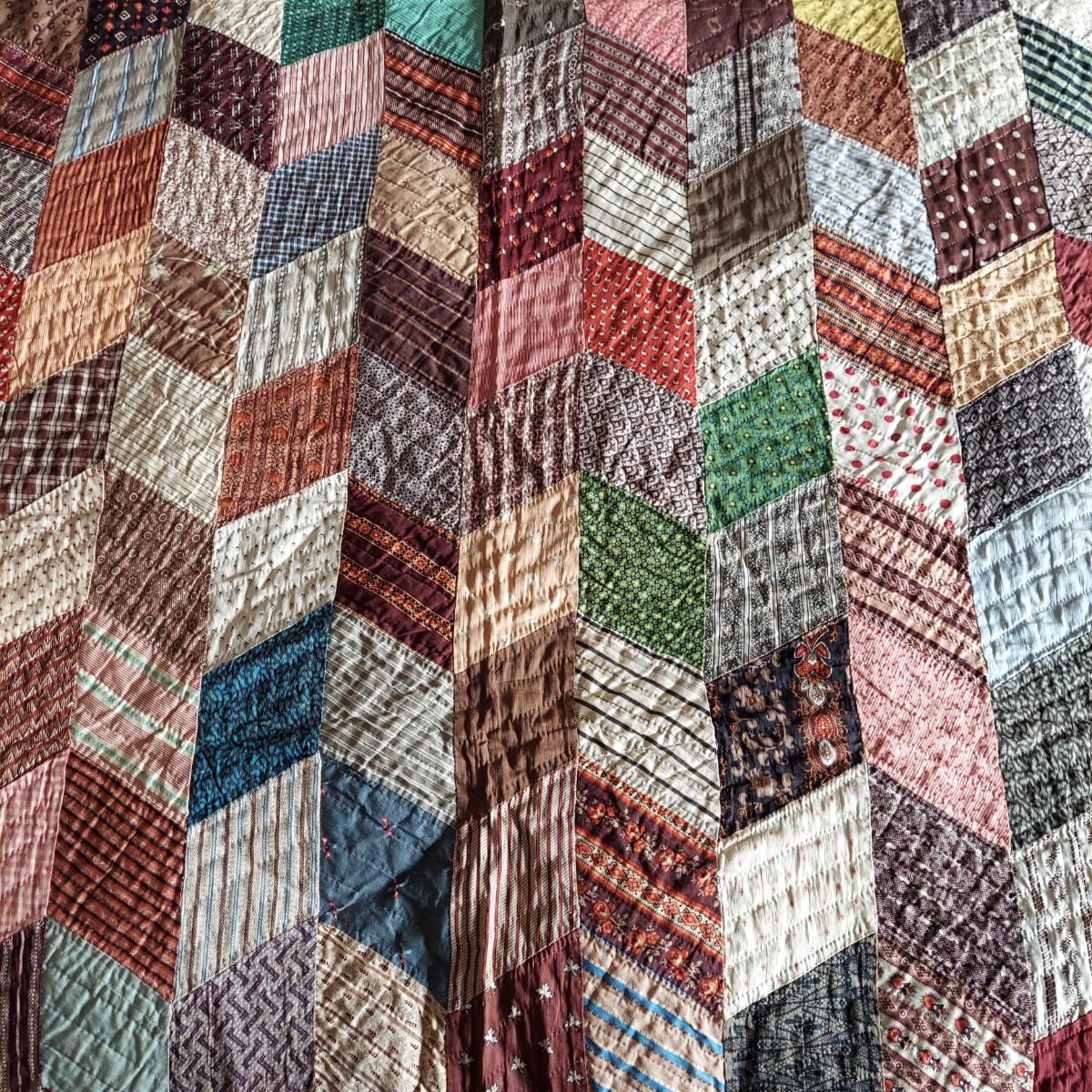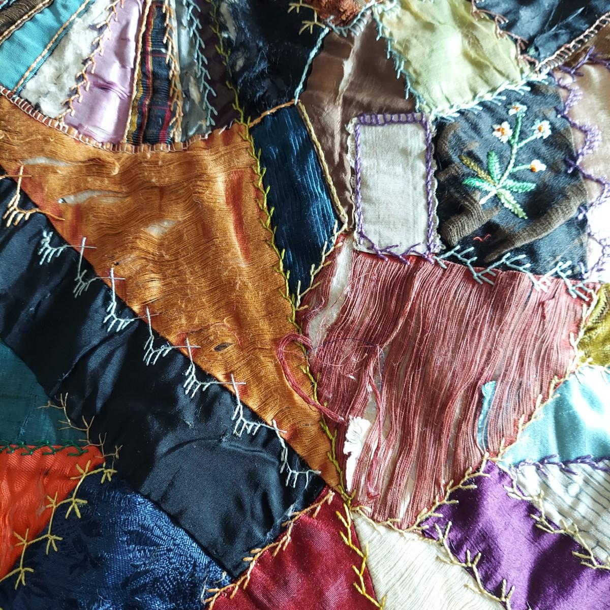 Five quilts that appear to be hand stitched and/or hand quilted. One quilt is quite old. It's dated 1891. It is very fragile and has some tears and worn areas. It measures 69” x 76"H. Another quilt, mostly white, also has some areas with wear. Please see photos for details. Shipping available