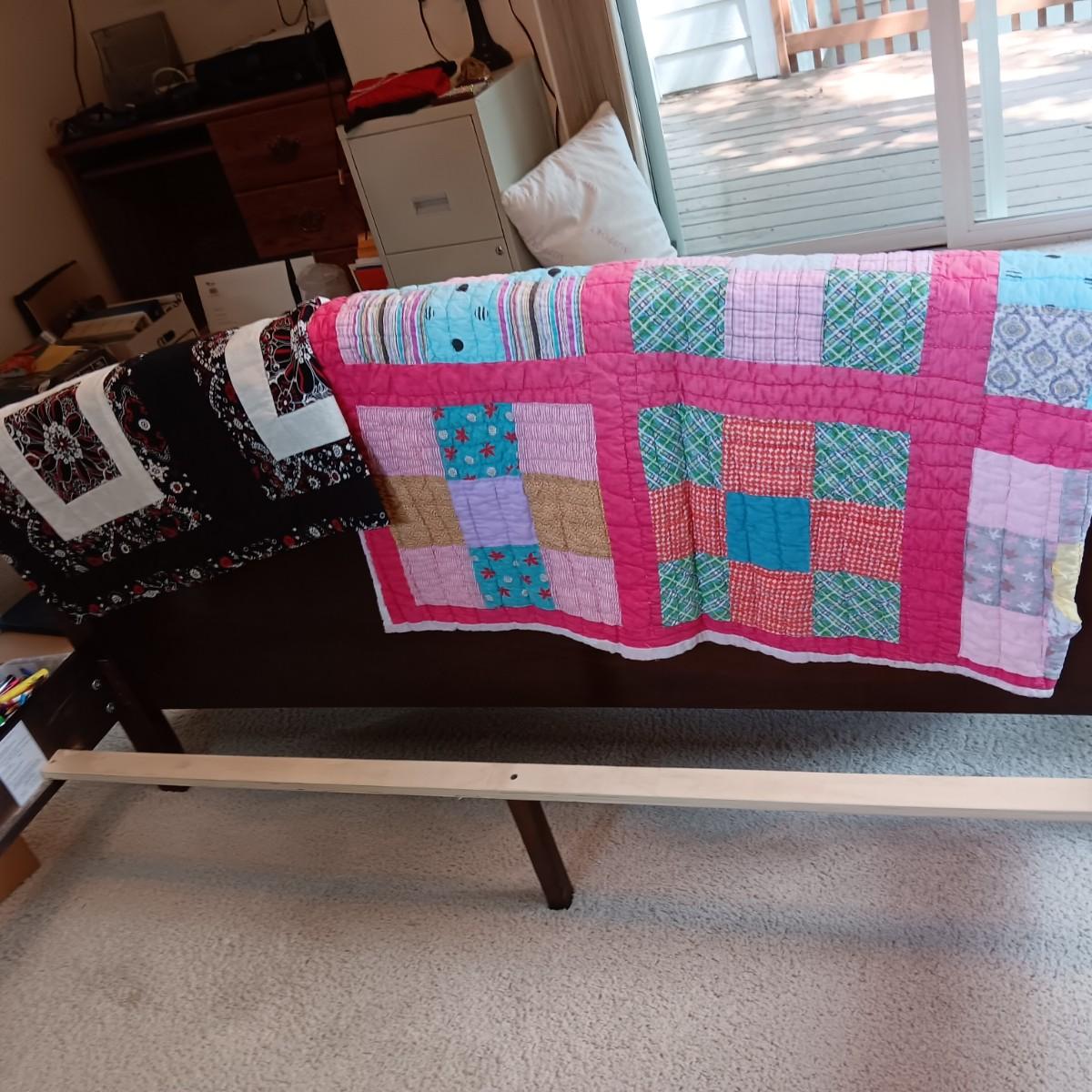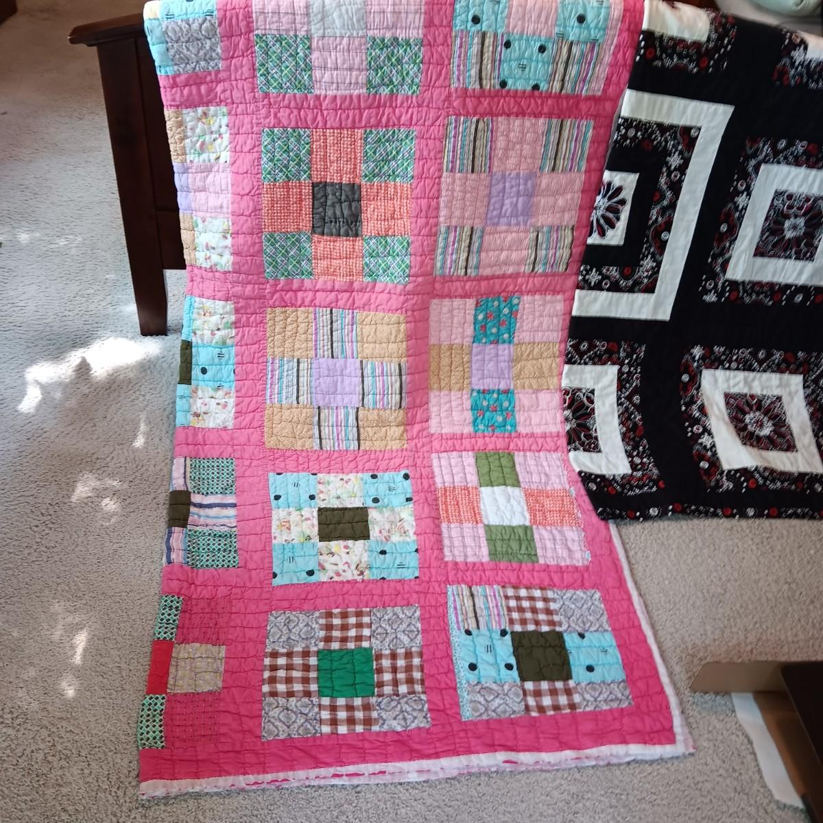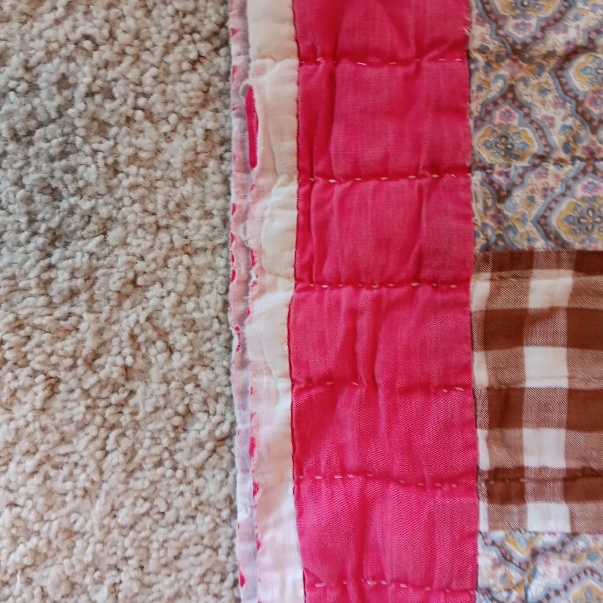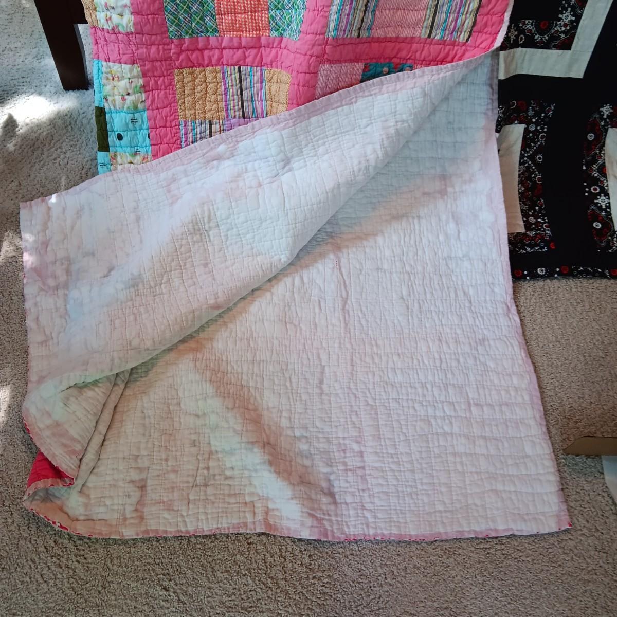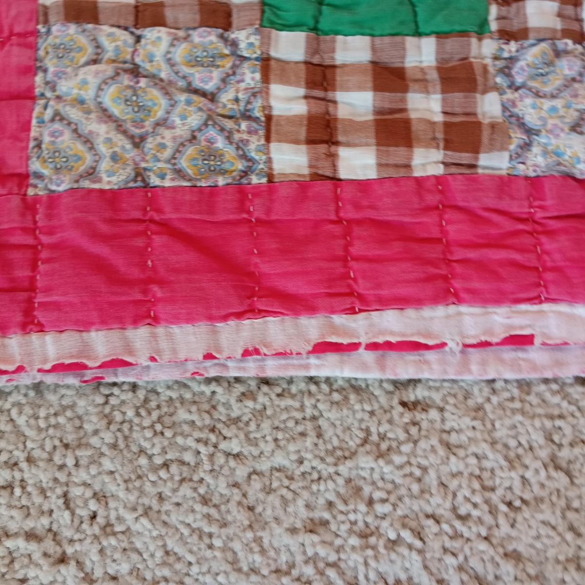 THERE IS SOME WEAR AND DAMAGE TO HAND STITCHED QUILT (SEE PICS)