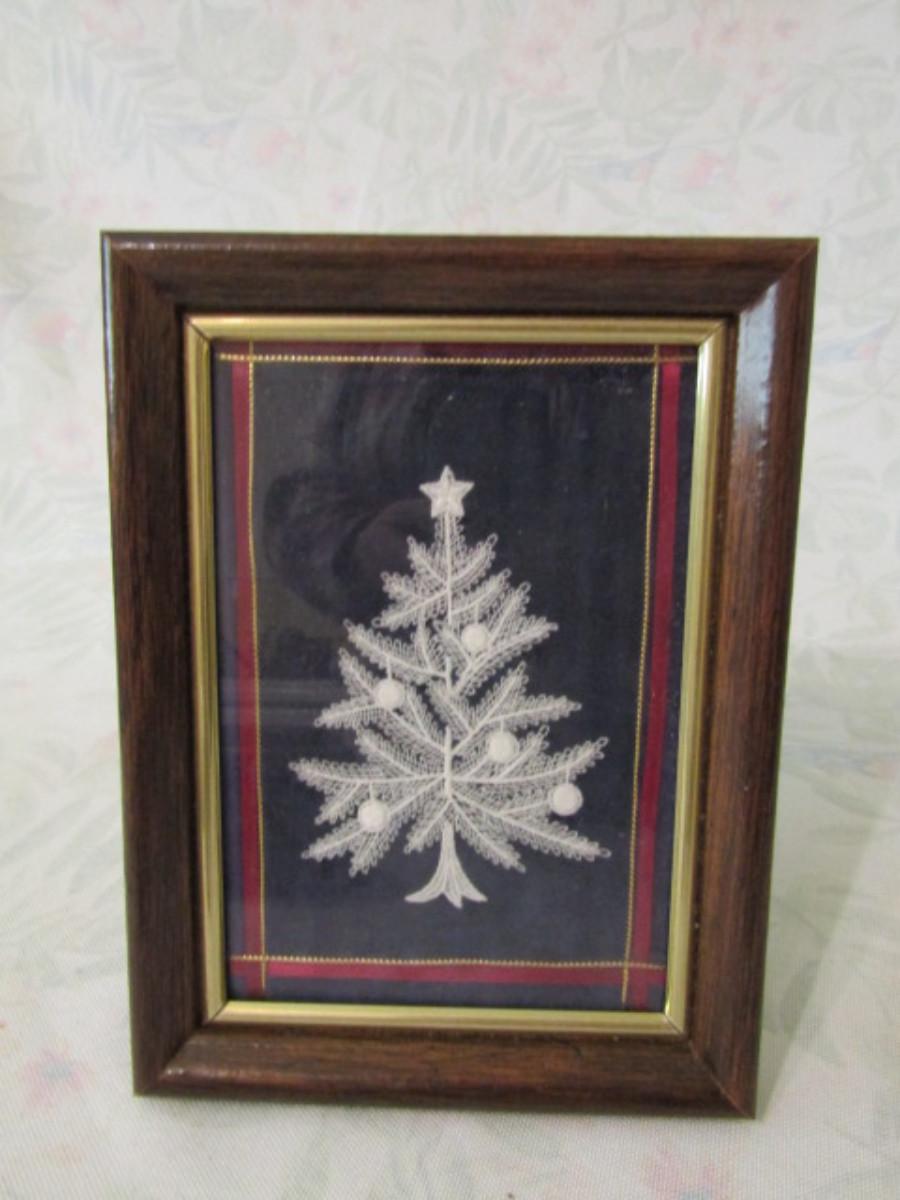 Hand Tatted Christmas Tree- Framed Under Glass