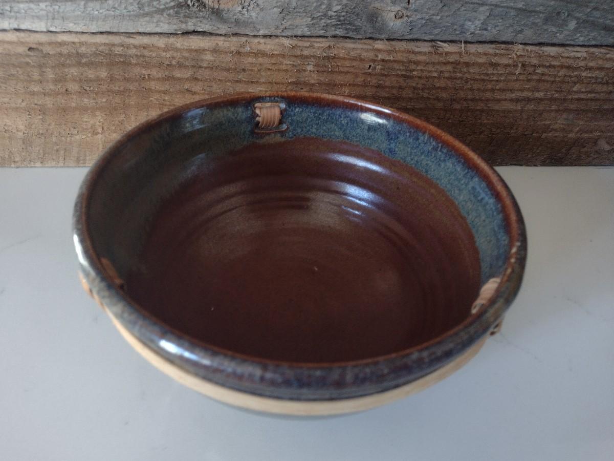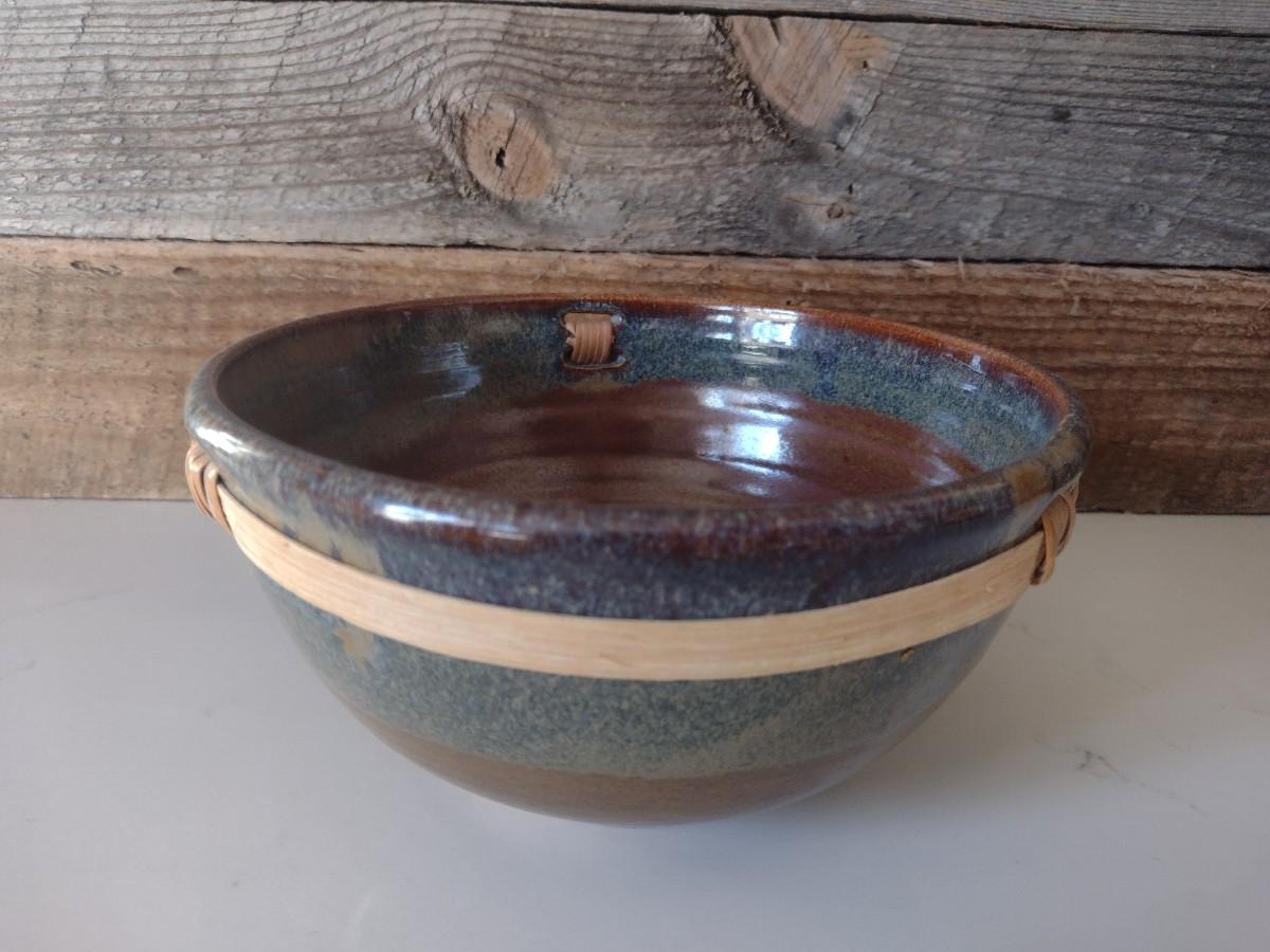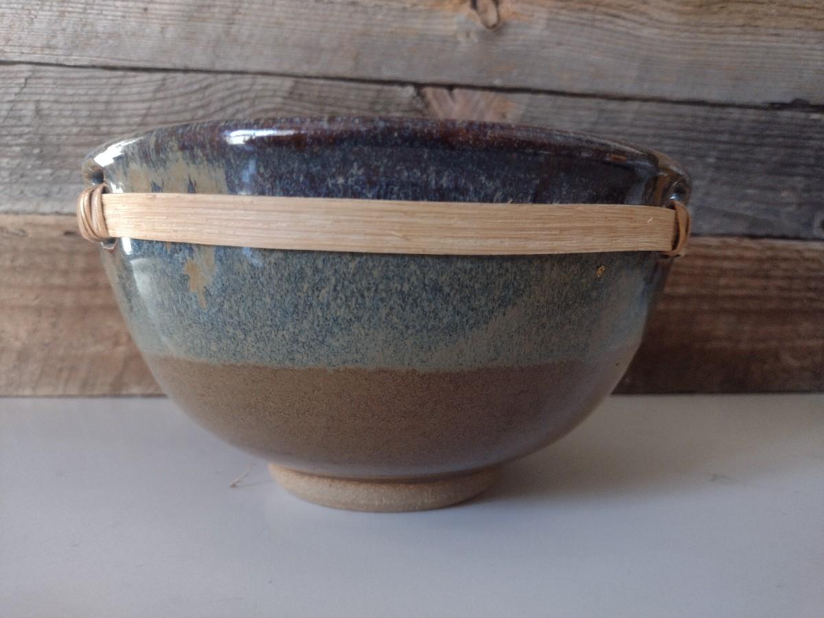 Hand Thrown Pottery Bowl with Splint Wood Trim Accent by Fran Symes