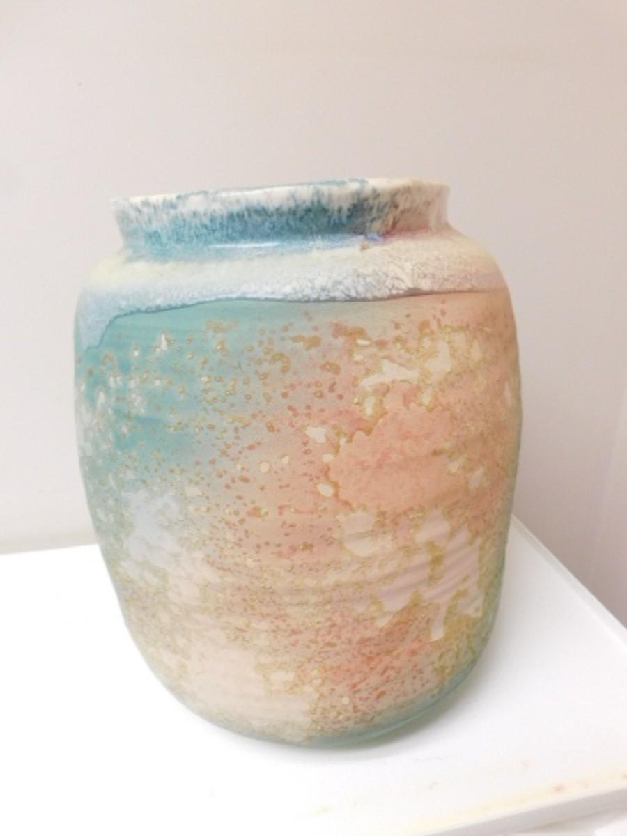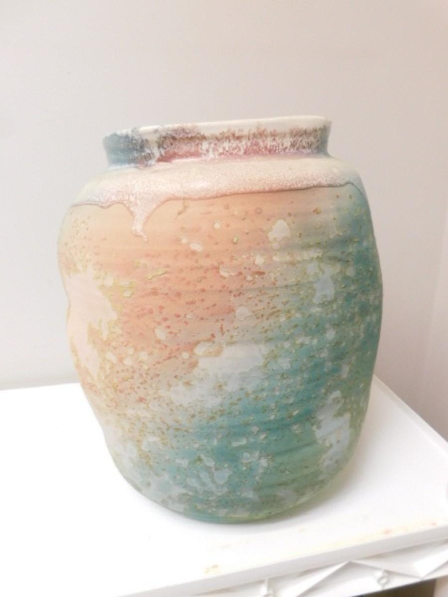 Hand Thrown Pottery Large Diameter Vase Signed by Artist Evans