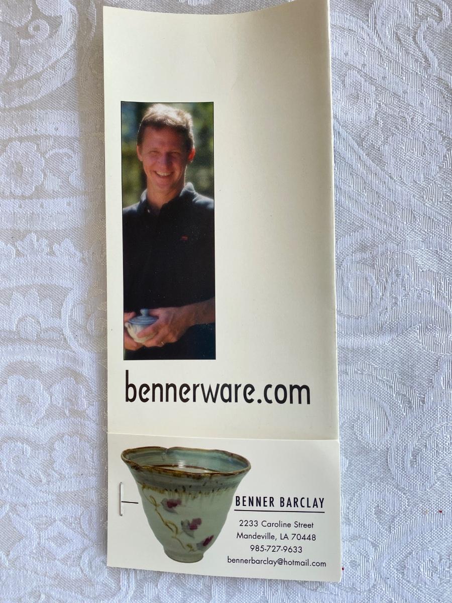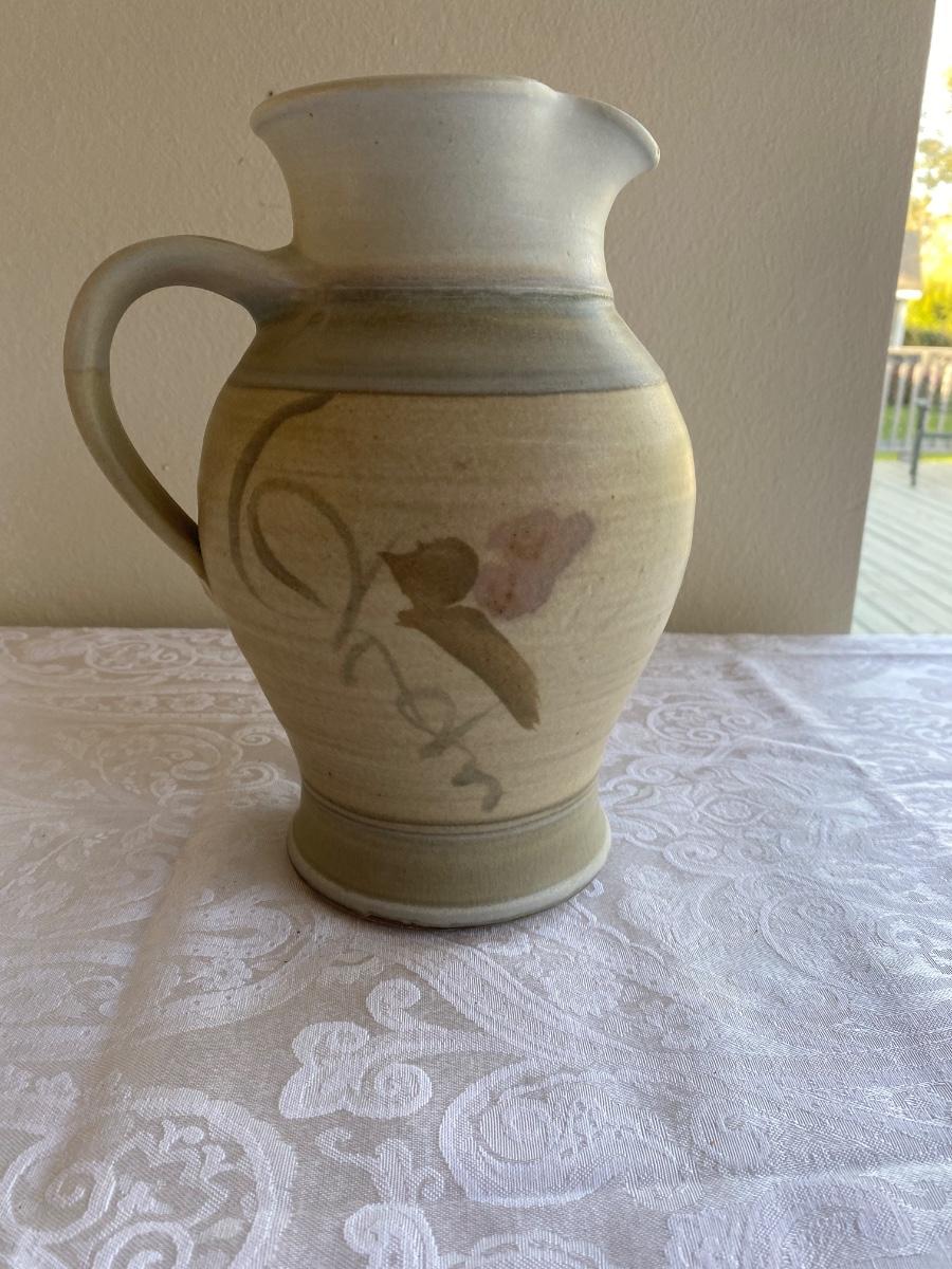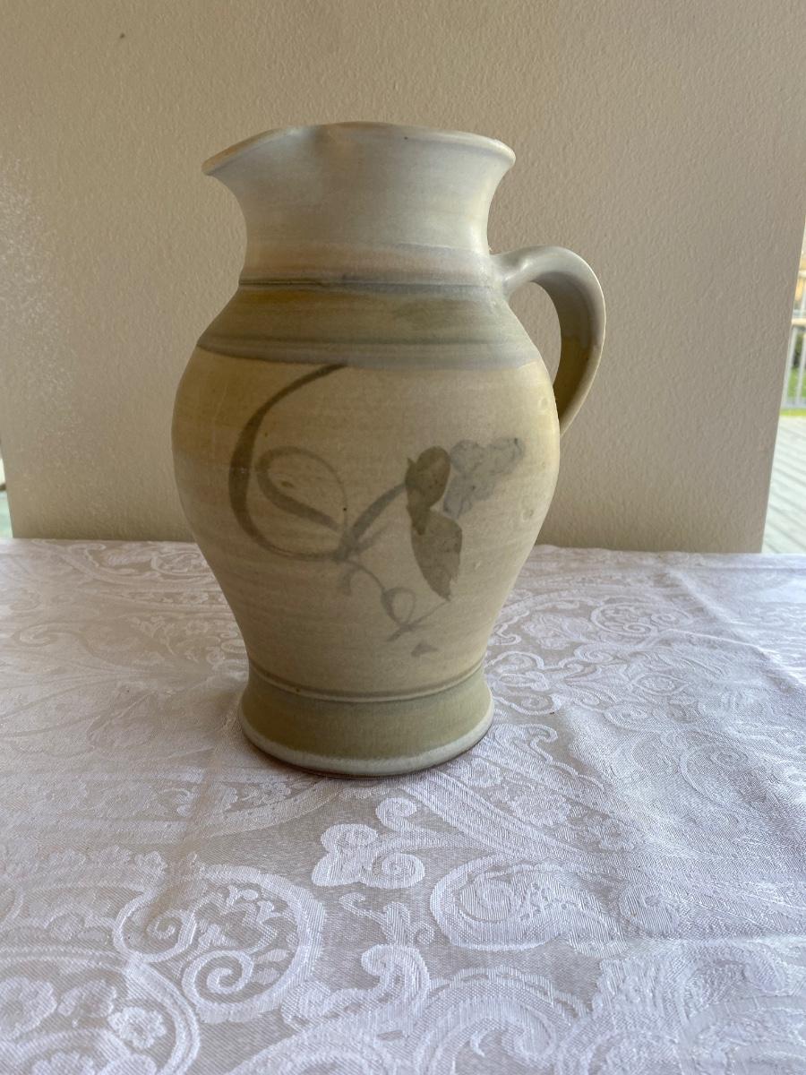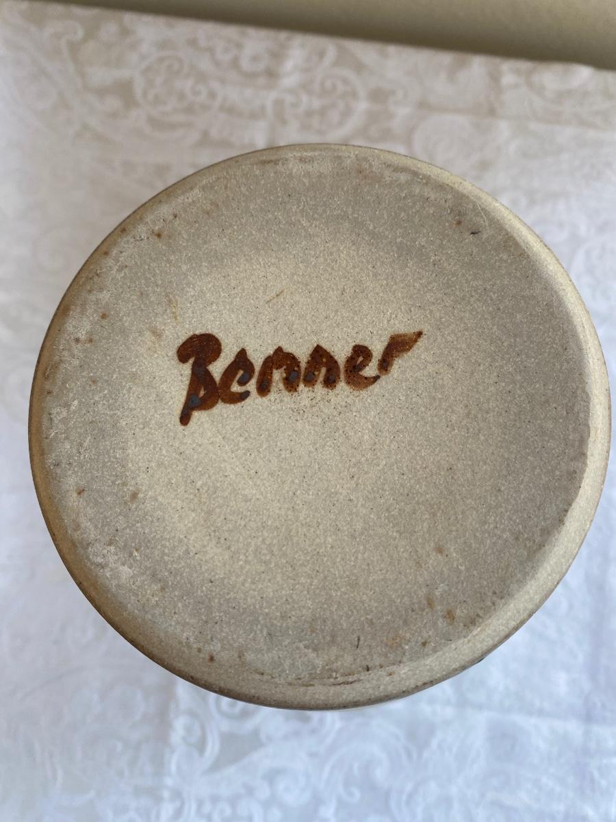 Hand thrown pottery pitcher, signed Benner Barclay, noted local potter. Approx 2 qt, 9”h. Exc condition.