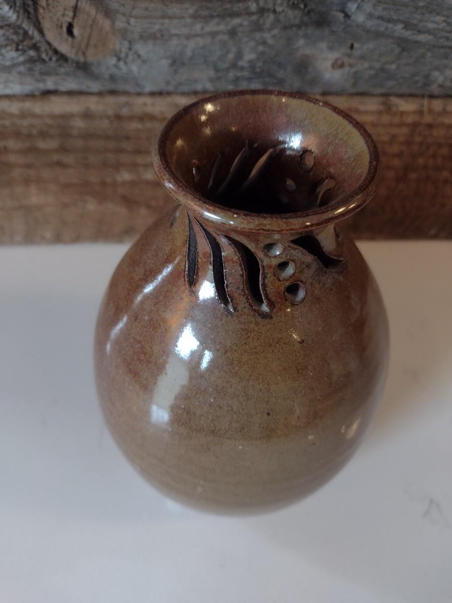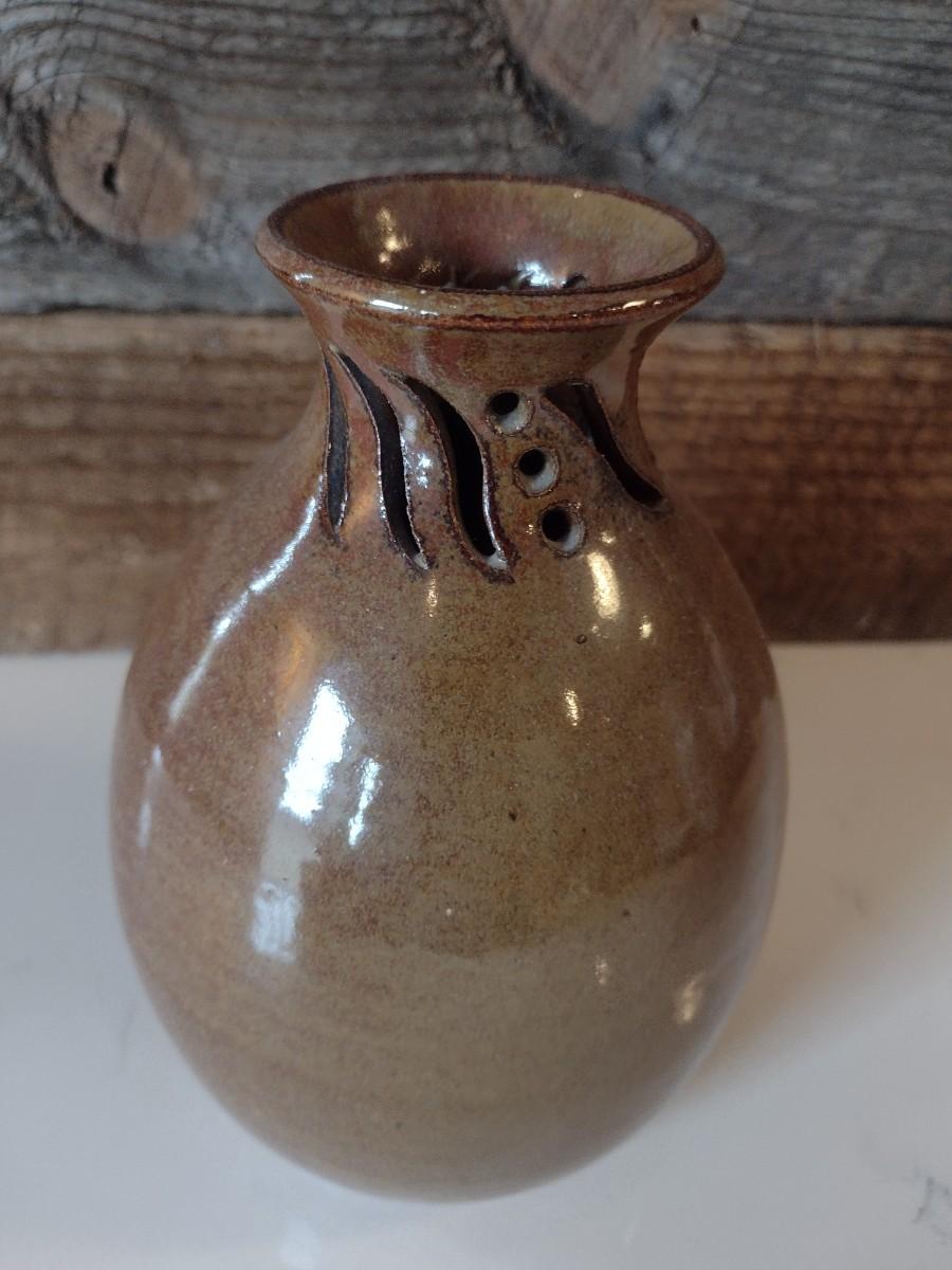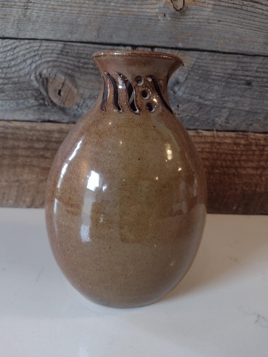 Hand Thrown Pottery Vase with Reticulated Neck Design by Fran Symes