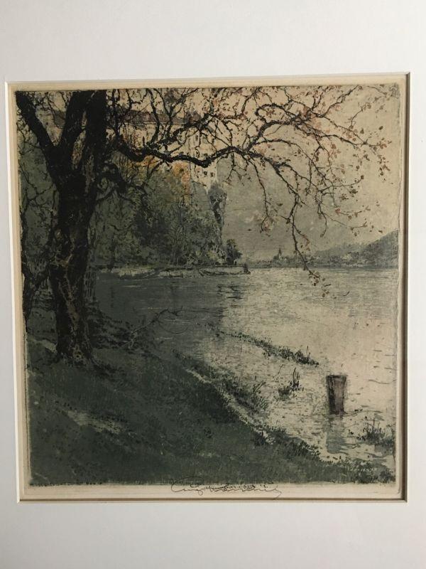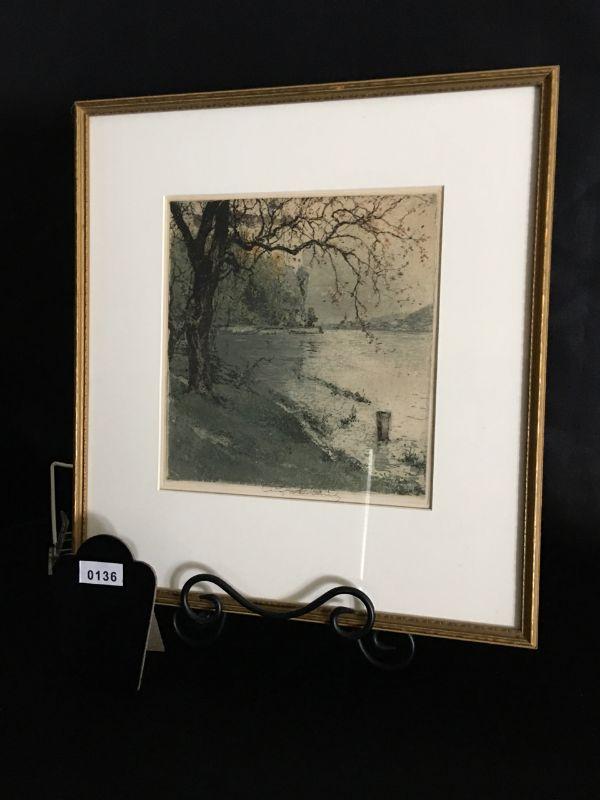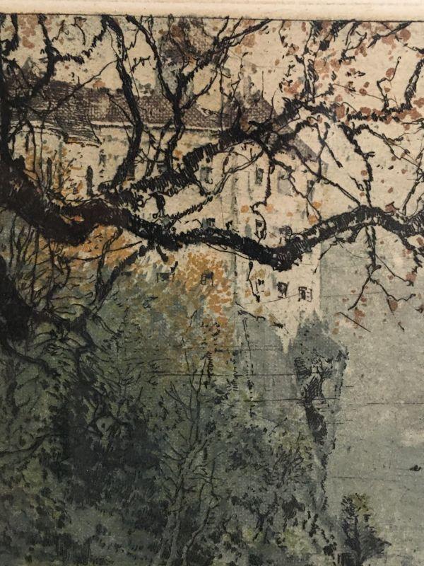 Hand Tinted Etching Early 20th C. European Landscape 15.5" x 17" lot 136