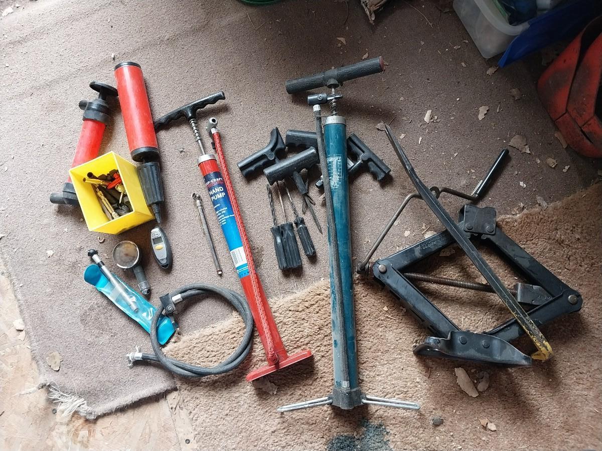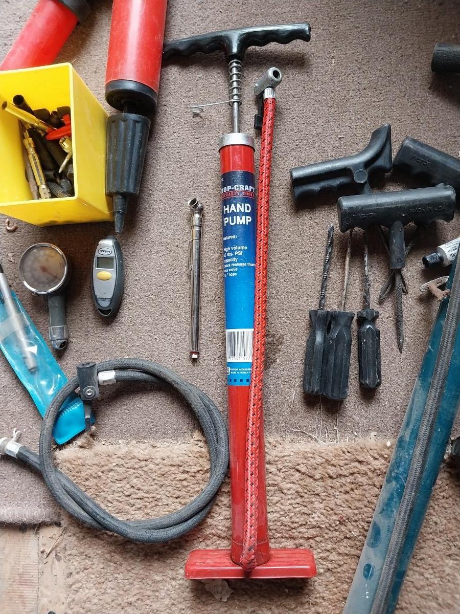 HAND TIRE PUMPS-TIRE REPAIRS =CAPS AND MORE