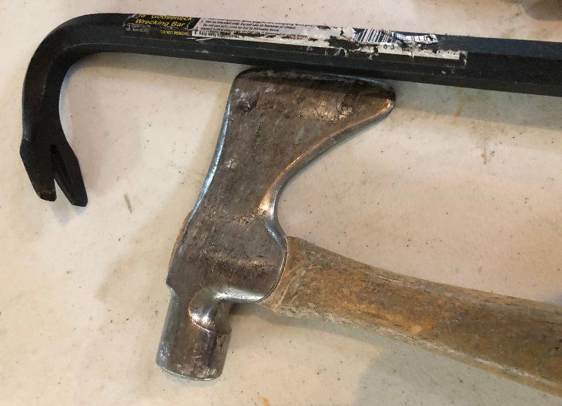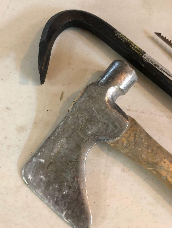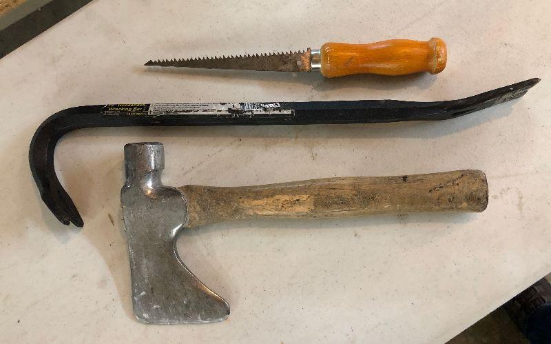 Hatchet..crow bar and small hand saw in this lot..used condition