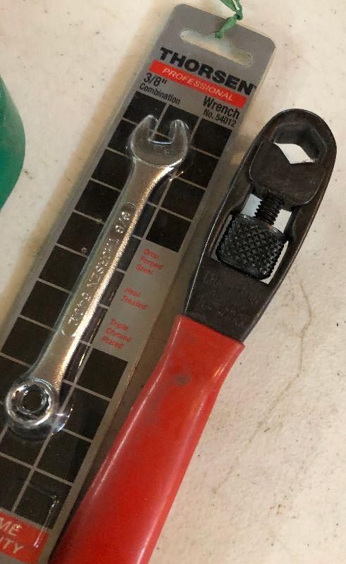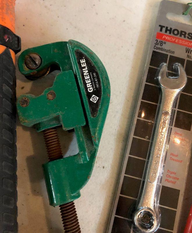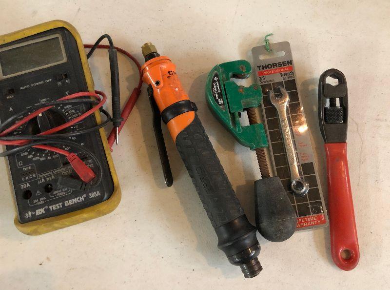 Includes a test meter..air drill...pipe cutter and wrenches shown...Used and new...