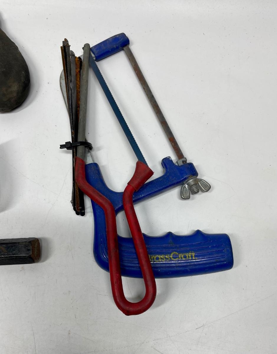 Hand Tool Lot - Saws and Nail Pullers. Includes 1 standard hacksaw, 2 mini hacksaws, and 3 nail pullers. See photos for more details and sizes.