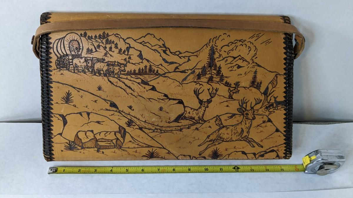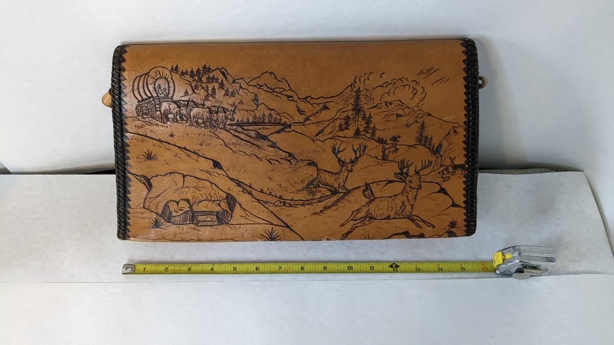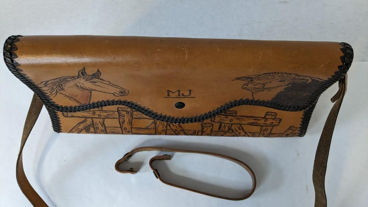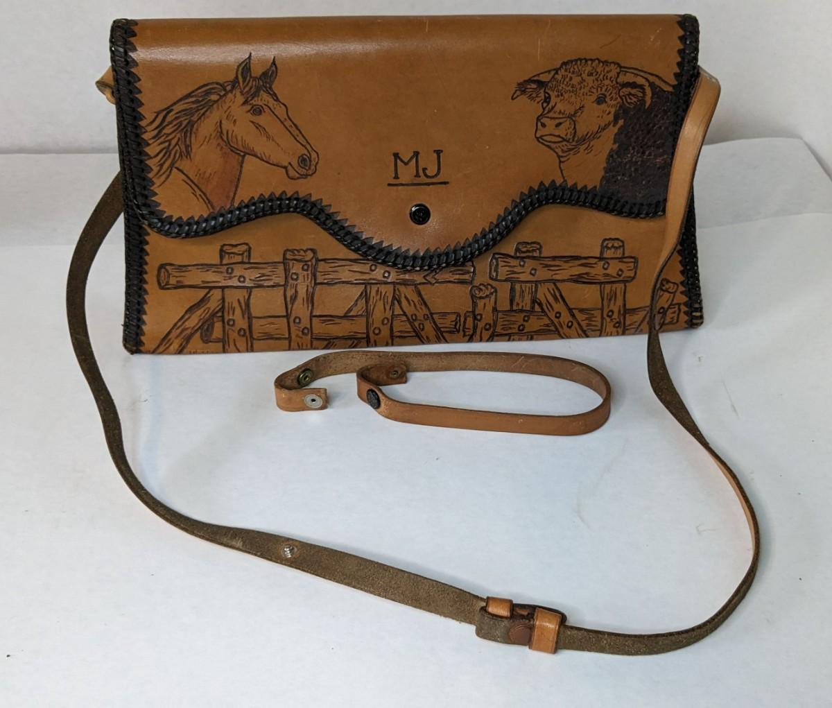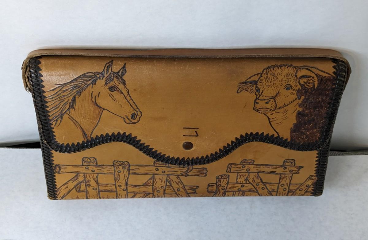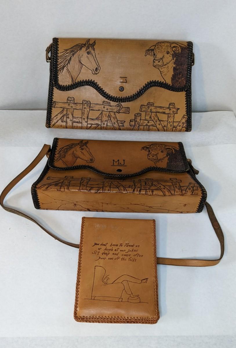 2 amazing animal motif embellished leather purses with hand stitched edges. Both are in phenomenal condition for age and are just so darn cute. Also includes family monikered guest album with fun sayings on the outside, unused inside.
