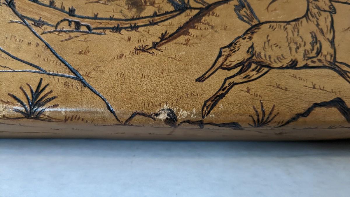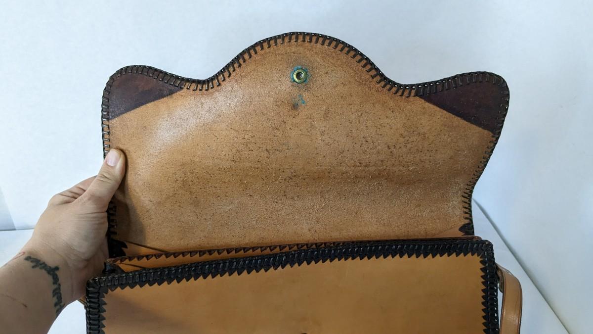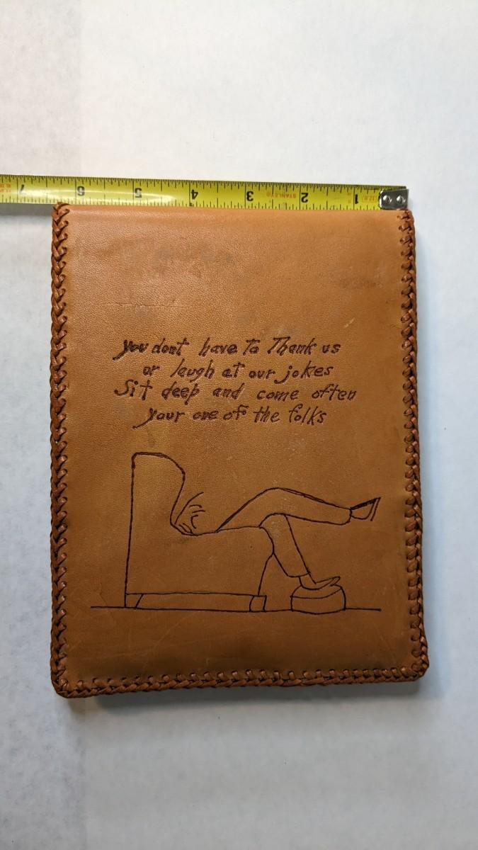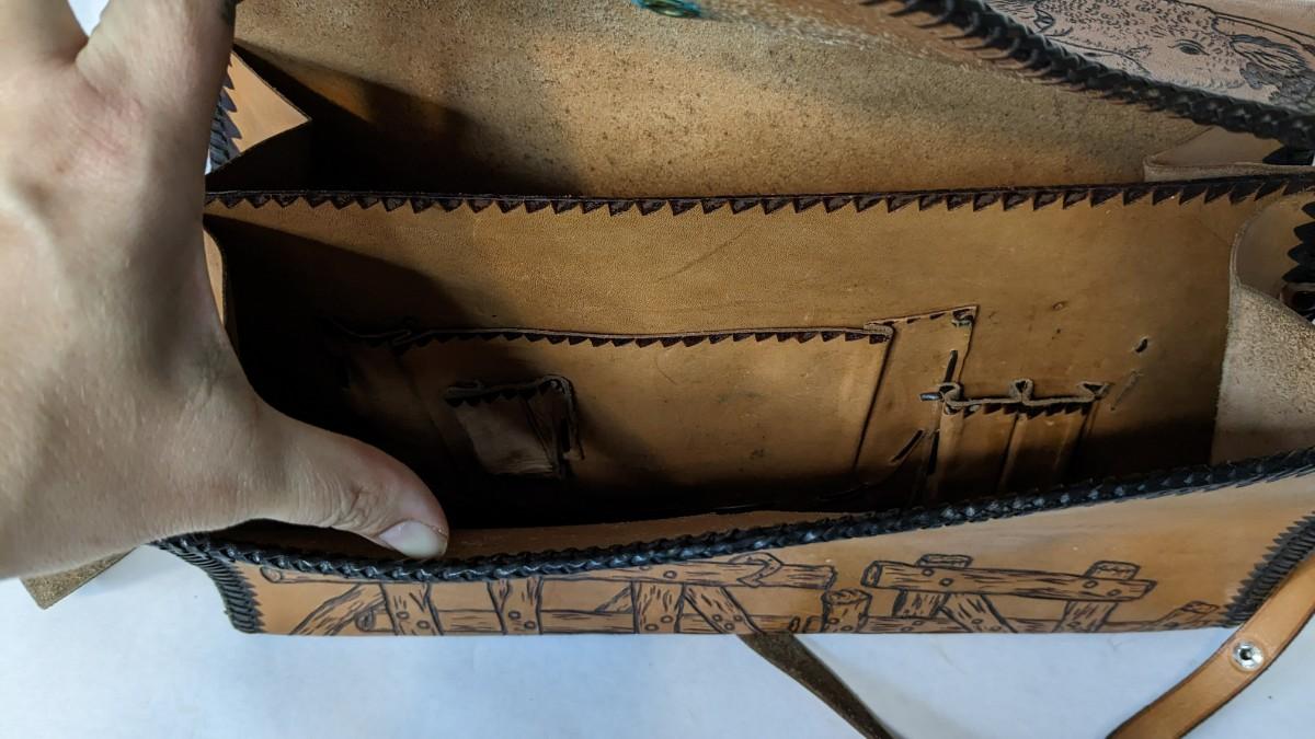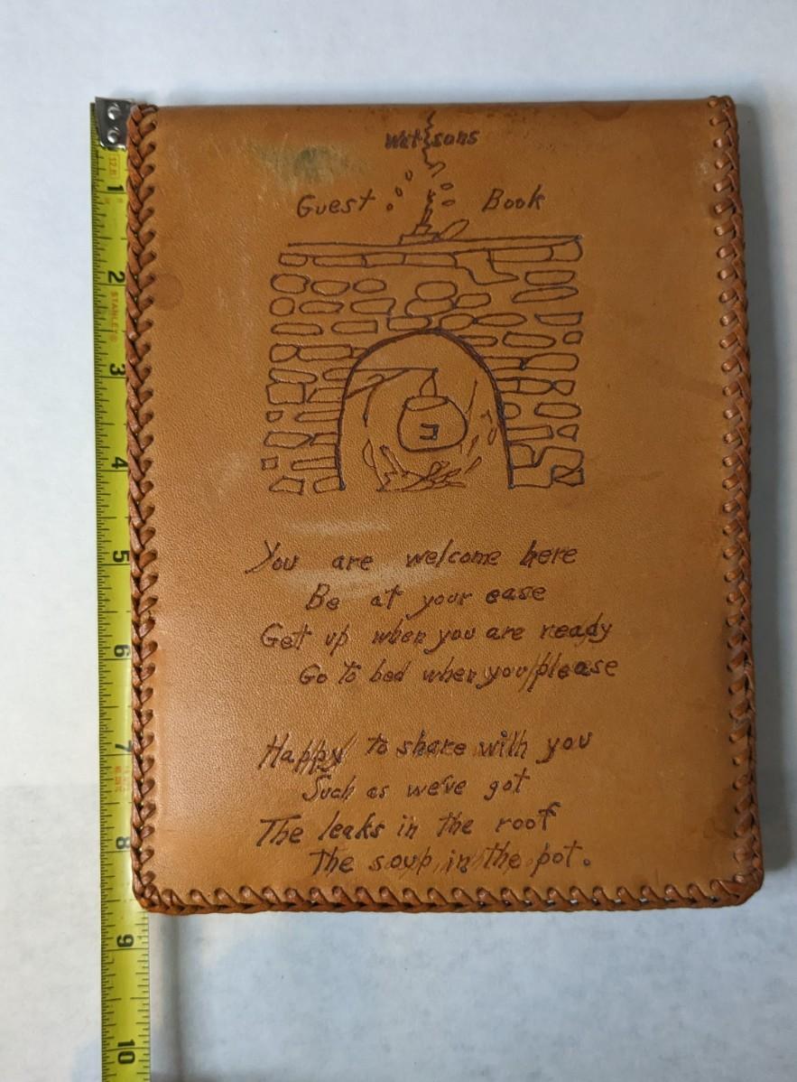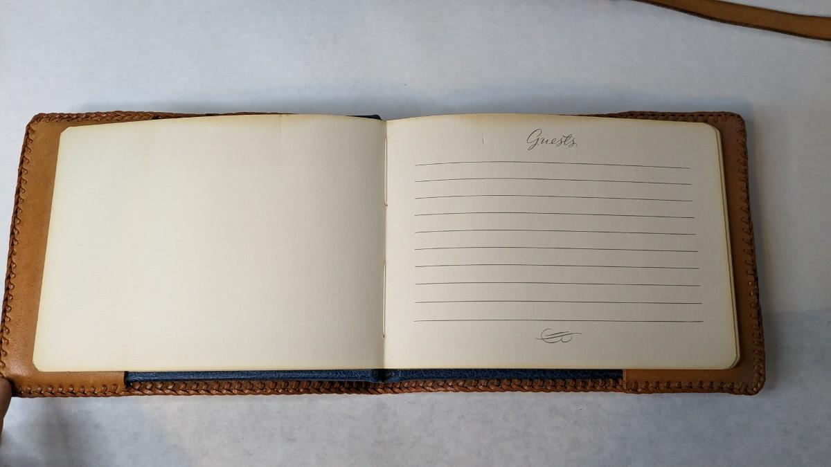 2 amazing animal motif embellished leather purses with hand stitched edges. Both are in phenomenal condition for age and are just so darn cute. Also includes family monikered guest album with fun sayings on the outside, unused inside.