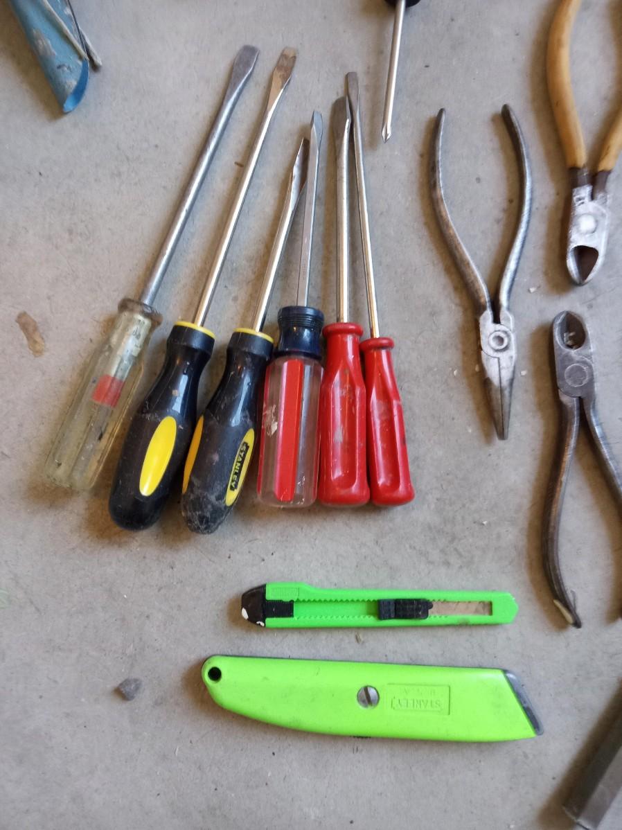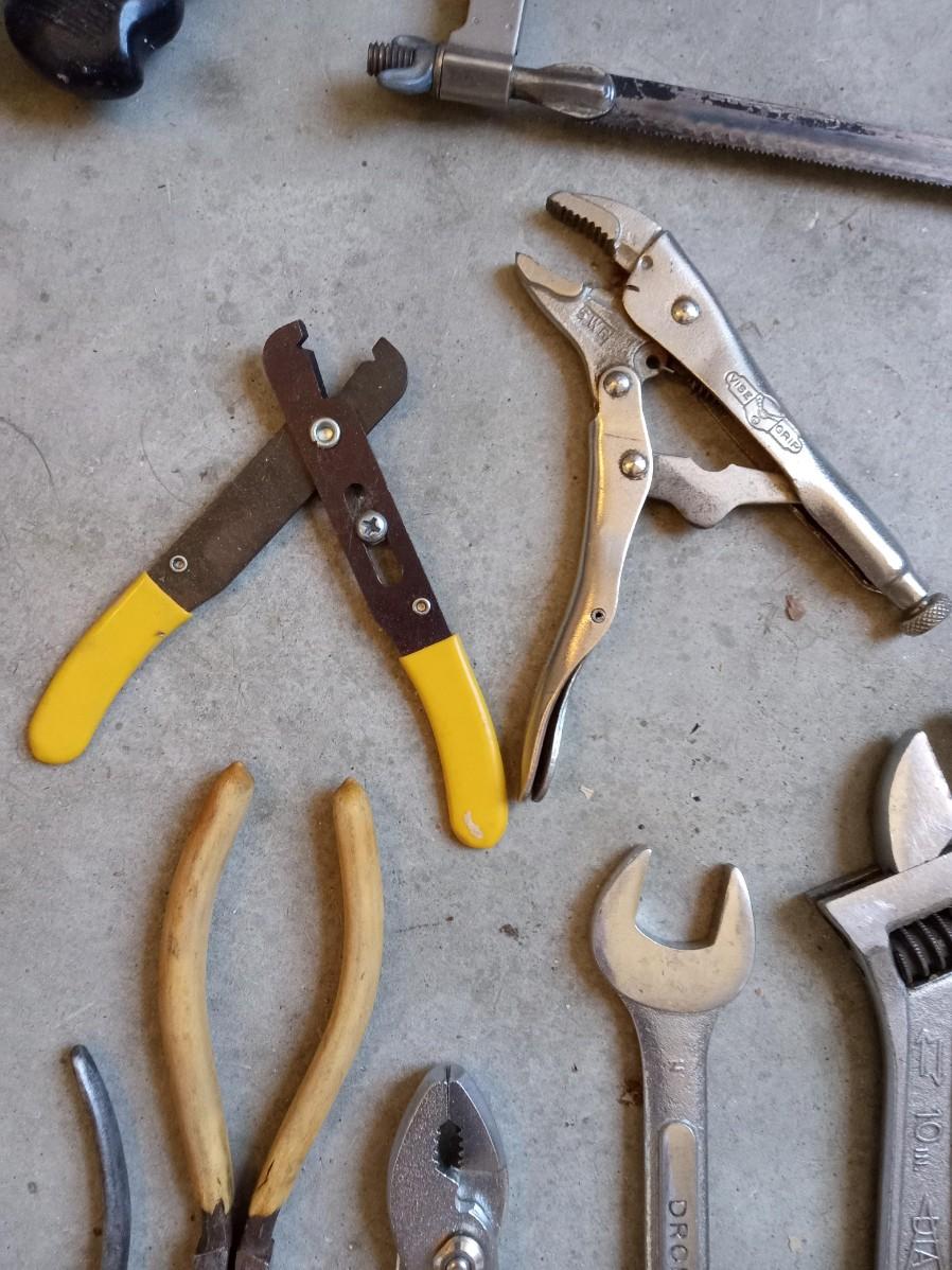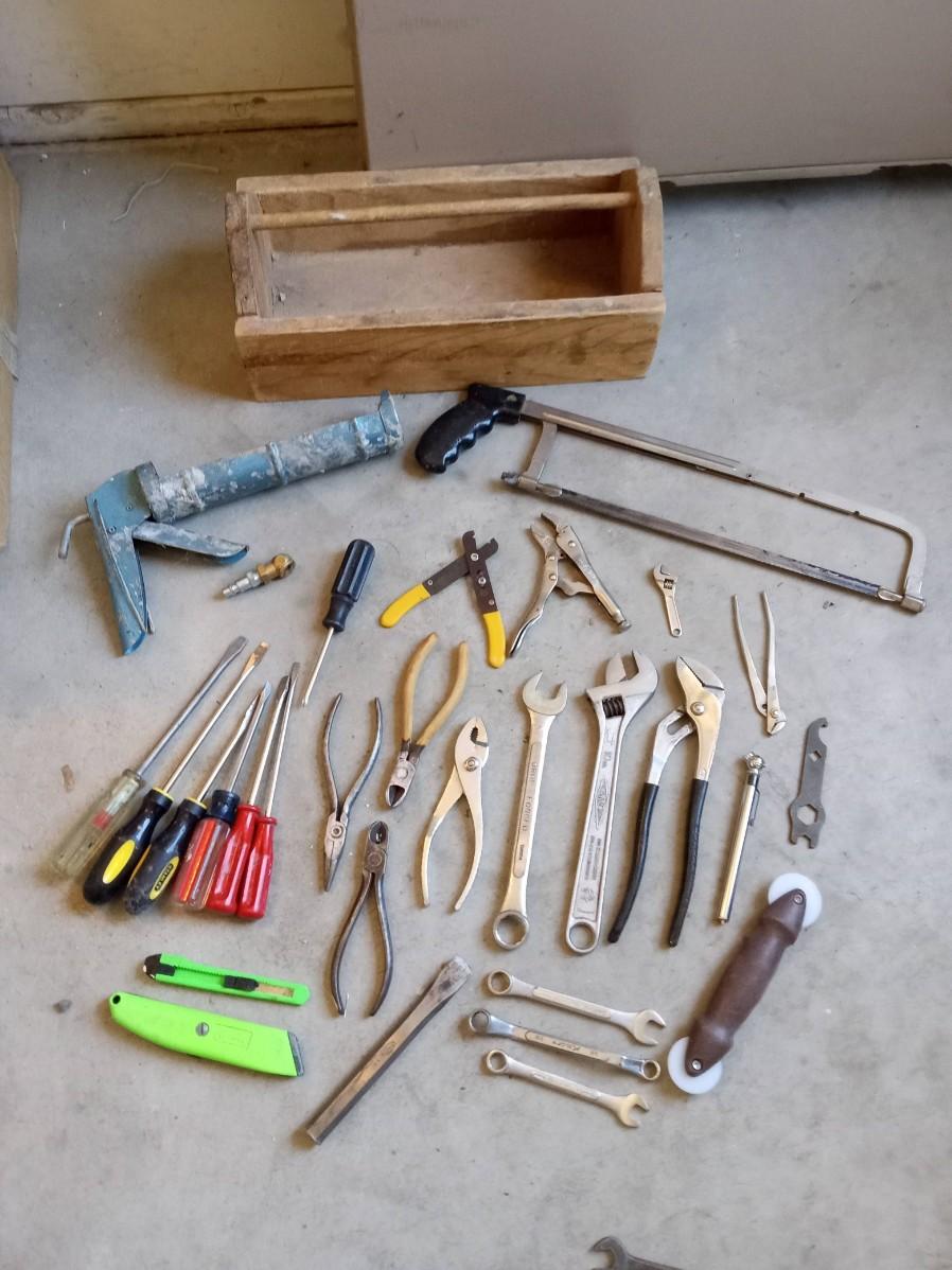 HAND TOOLS AND A WOODEN TOOL BOX