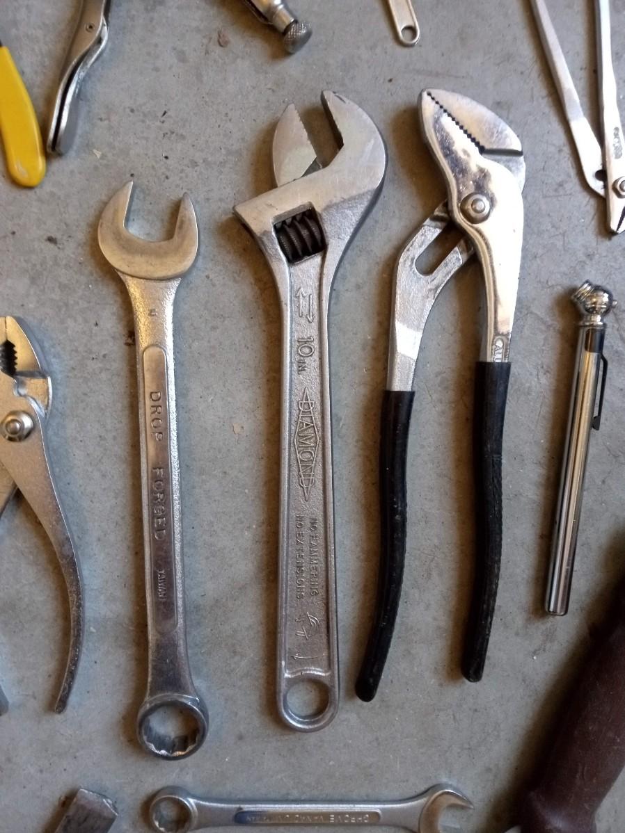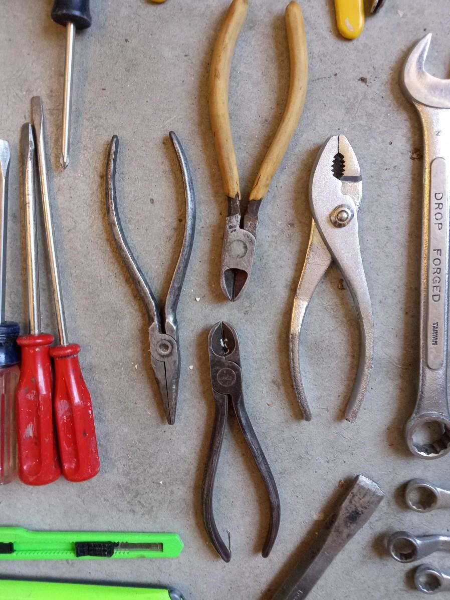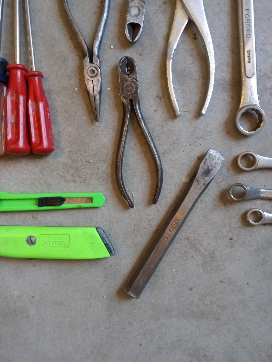 HAND TOOLS AND A WOODEN TOOL BOX