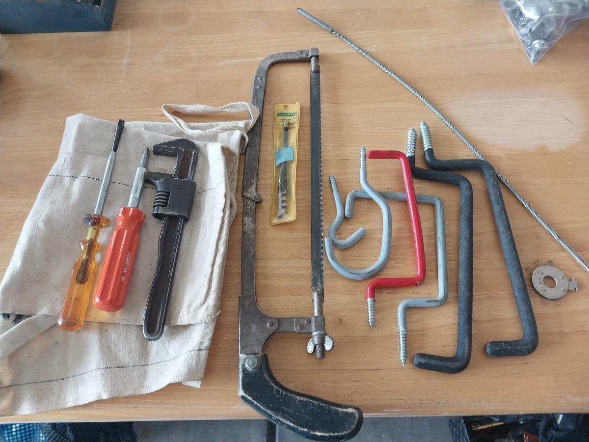 HAND SAW-PIPE WRENCH- SCREWDRIVER-VARIETY OF HOOKS AND MORE