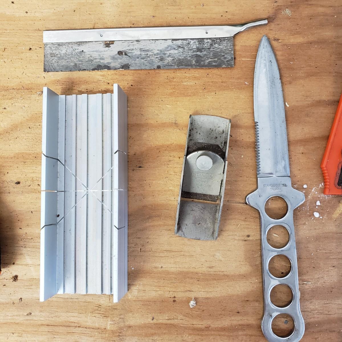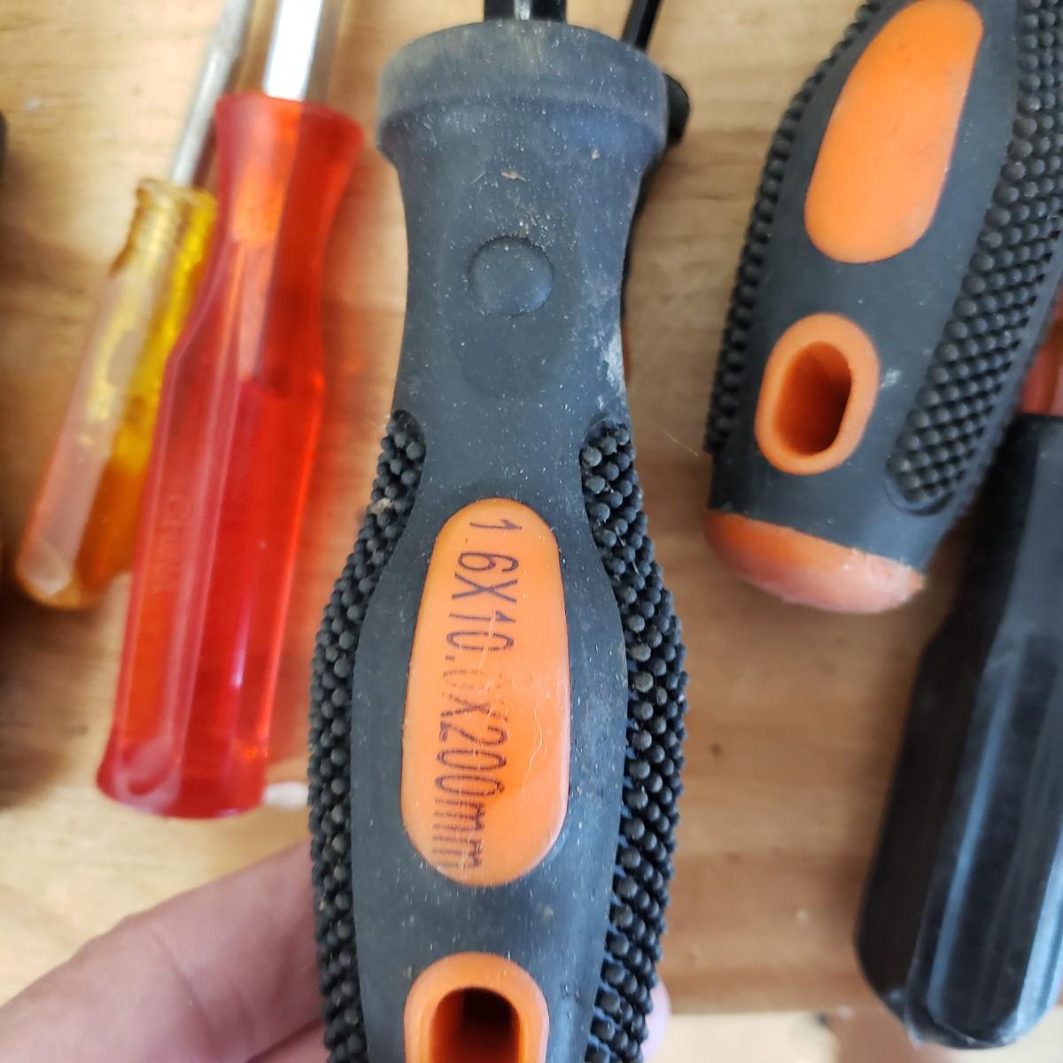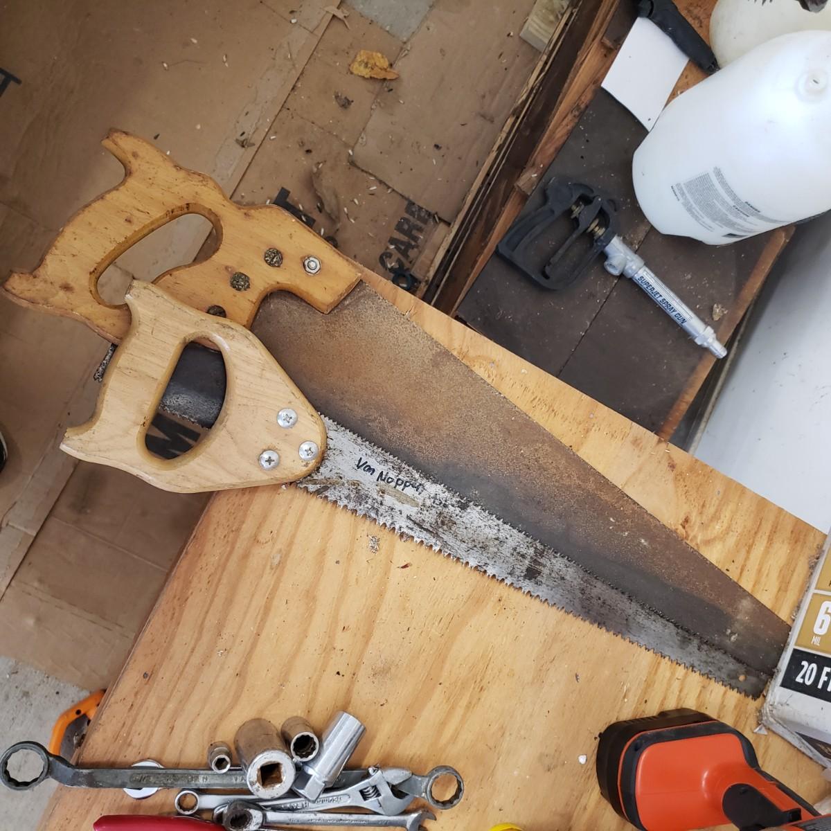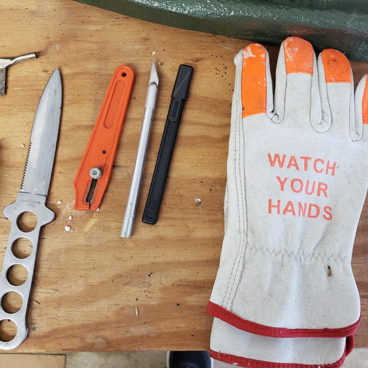 Lot includes several hand tools including gloves, to exacto knives, screwdrivers, hammers, drill bits and wrenches. There are also three saws. The Black and Decker battery operated drill comes with a battery, but no charger. The drill did work when battery is in it.