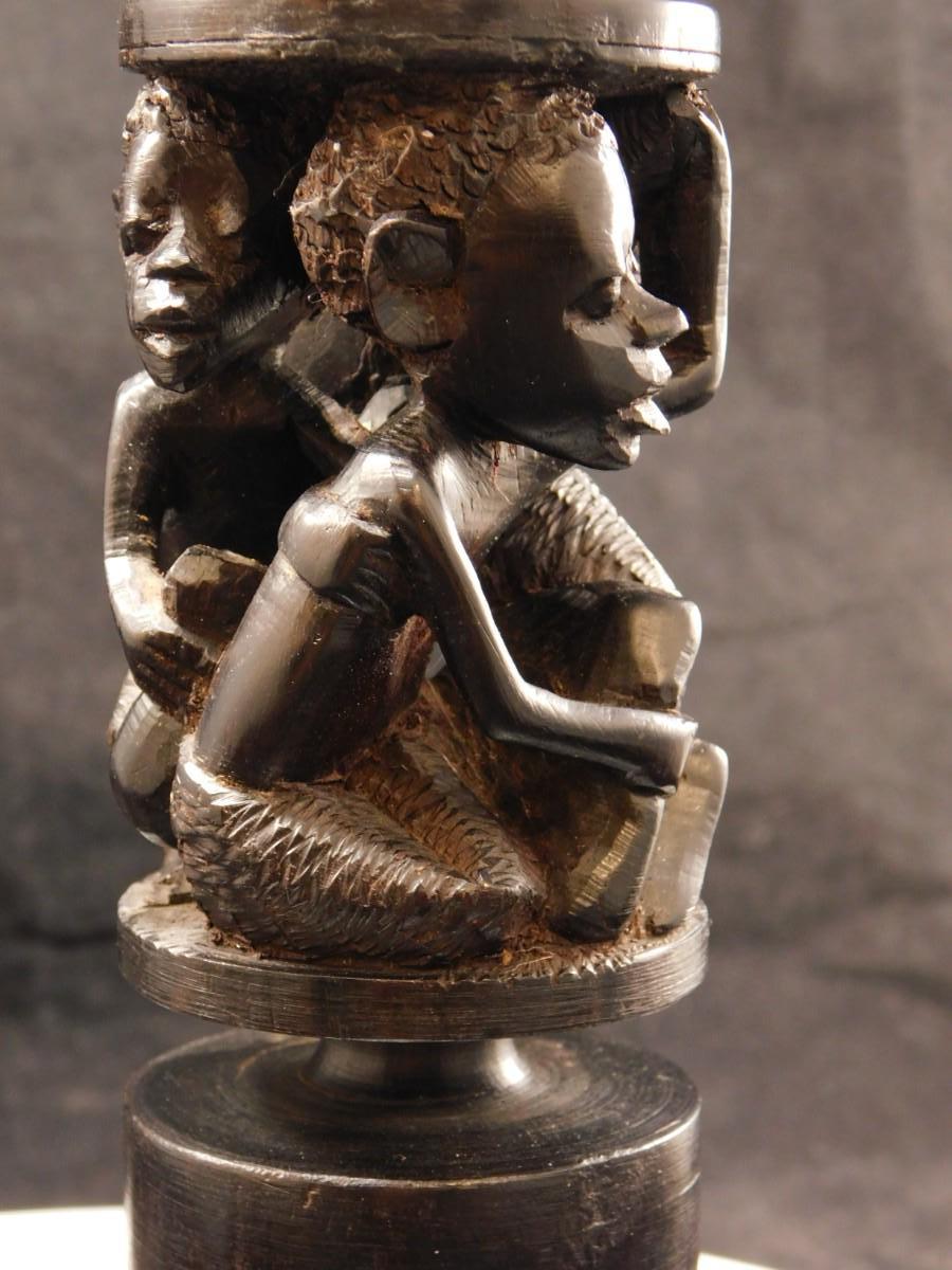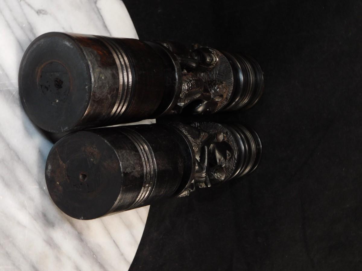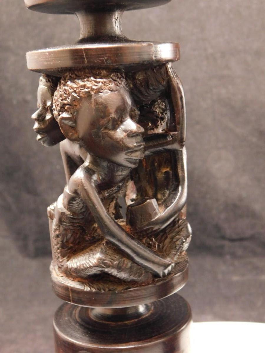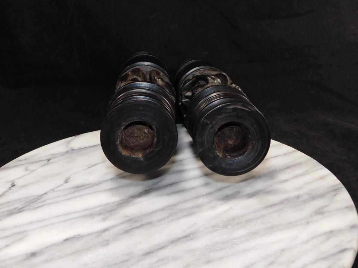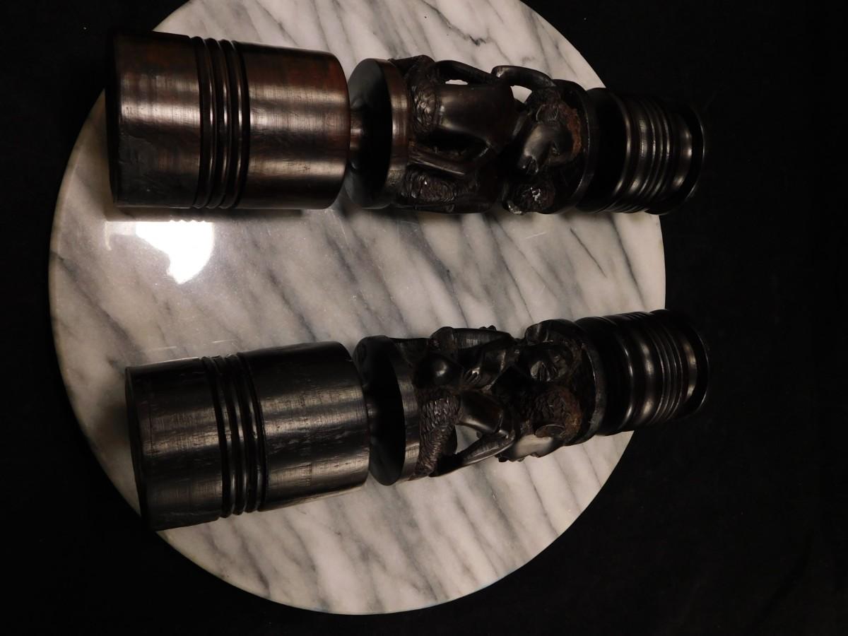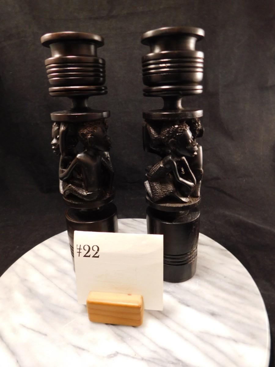 Hand Turned & Carved Wooden Candlesticks, Africa 9.75” Tall