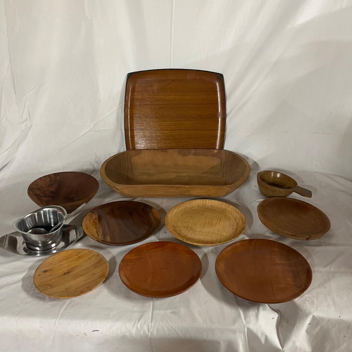 Hand Turned Plates, Teak Tray & More (B-MG)