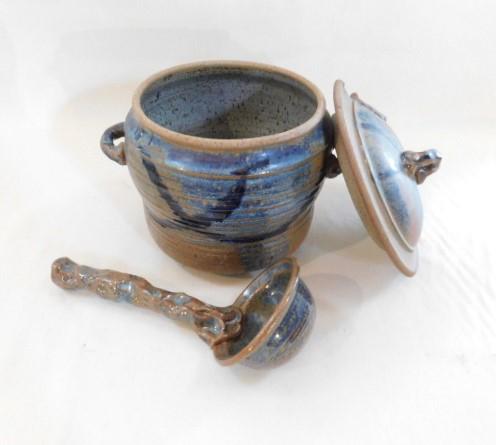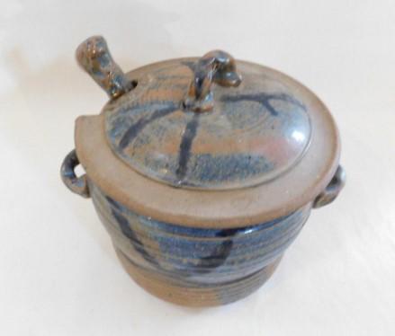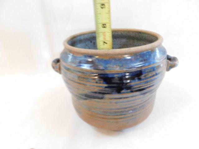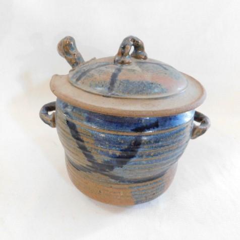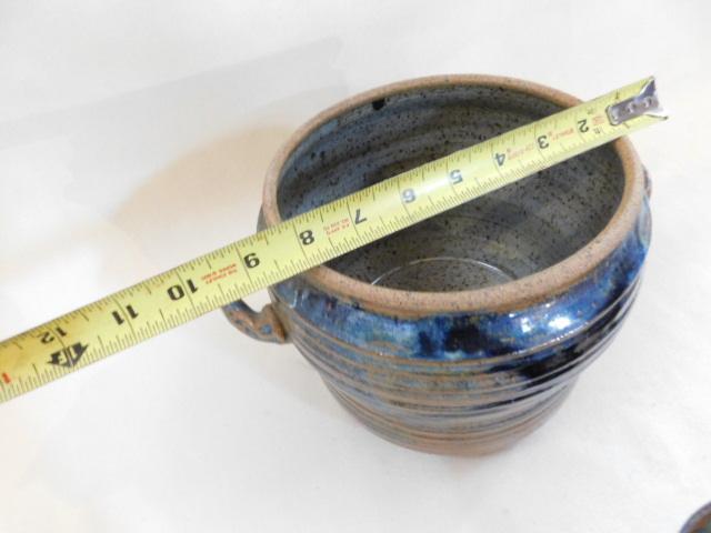 Hand Turned Studio Blue Pottery Soup Tureen Signed by Artist 9"x8"