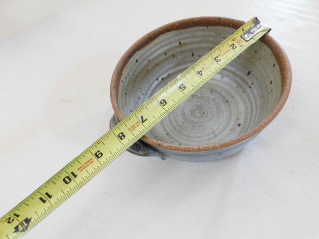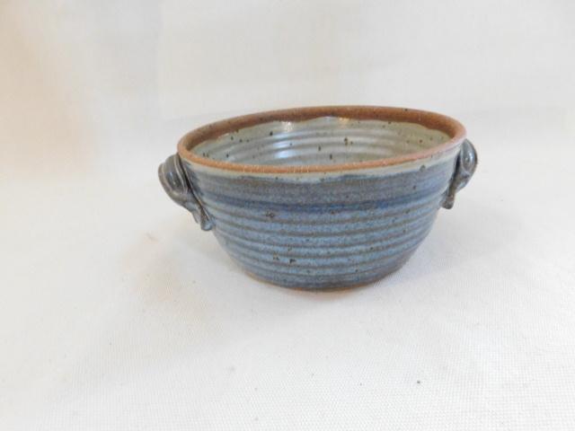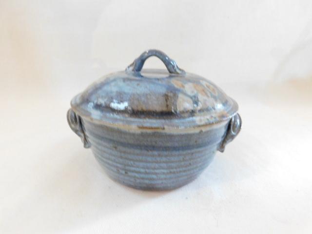 Hand Turned Studio Blue Pottery Lidded Bowl Signed by Artist 8"