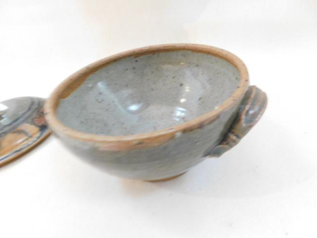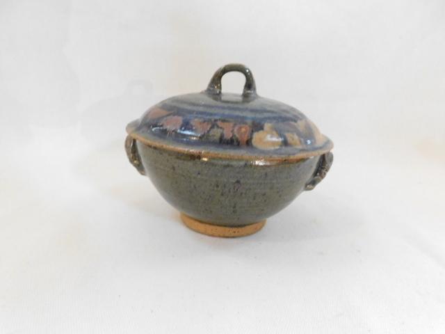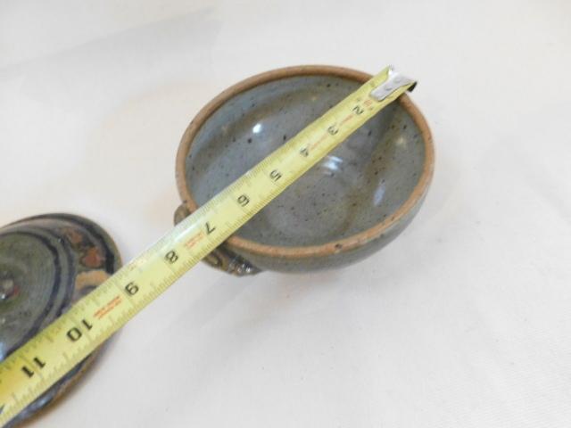 Hand Turned Studio Blue Pottery Lidded Bowl Signed by Artist 7"