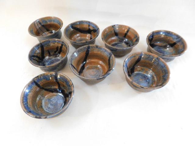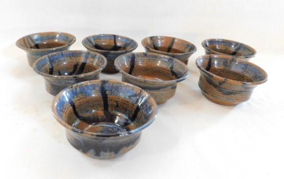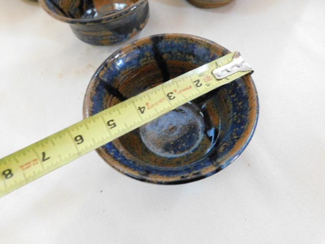 Hand Turned Studio Blue Pottery Signed by Artist 8 total