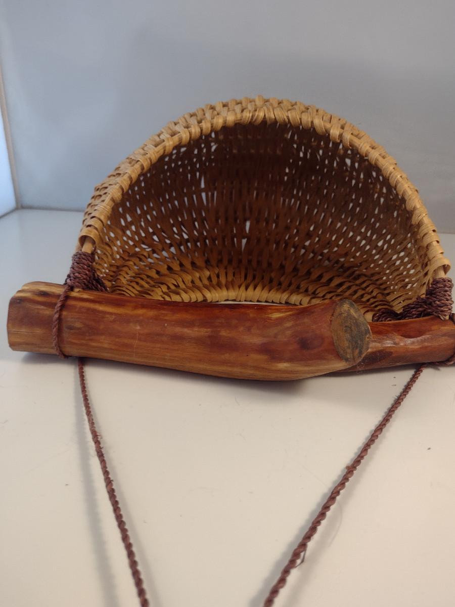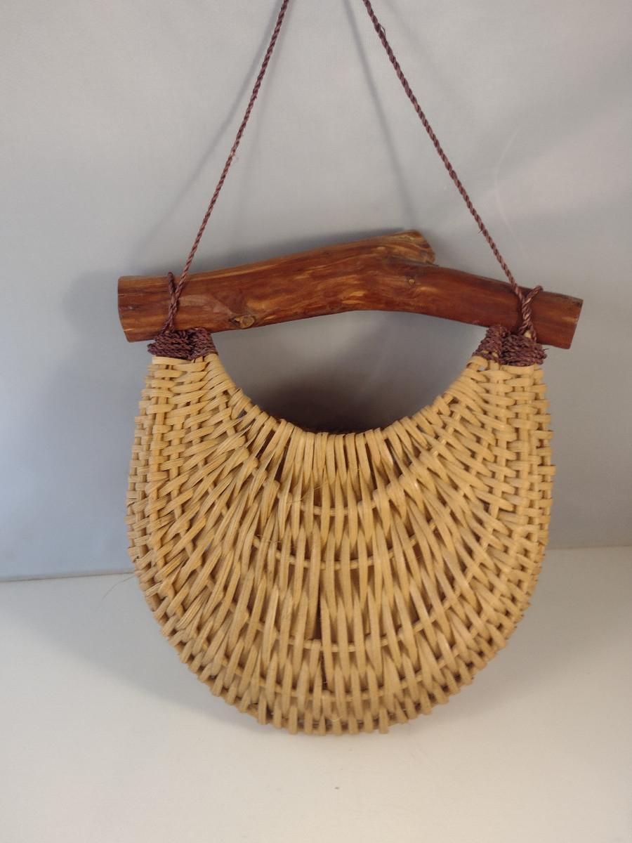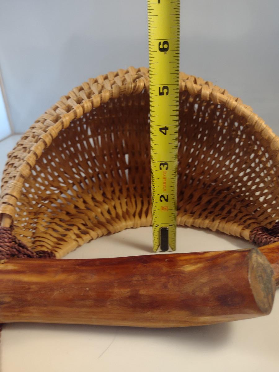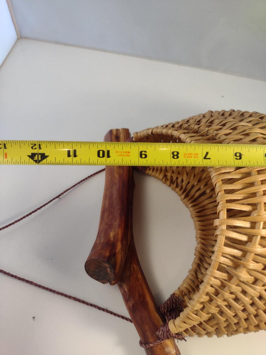 Hand Woven, Artisan Created Hanging Basket. Measures approx 10" tall, 9" wide, 5" deep.
