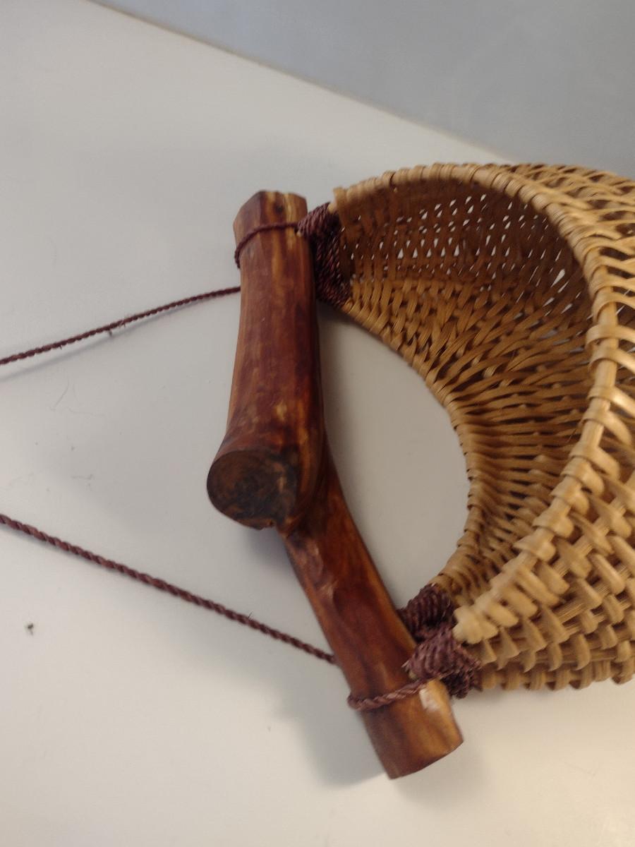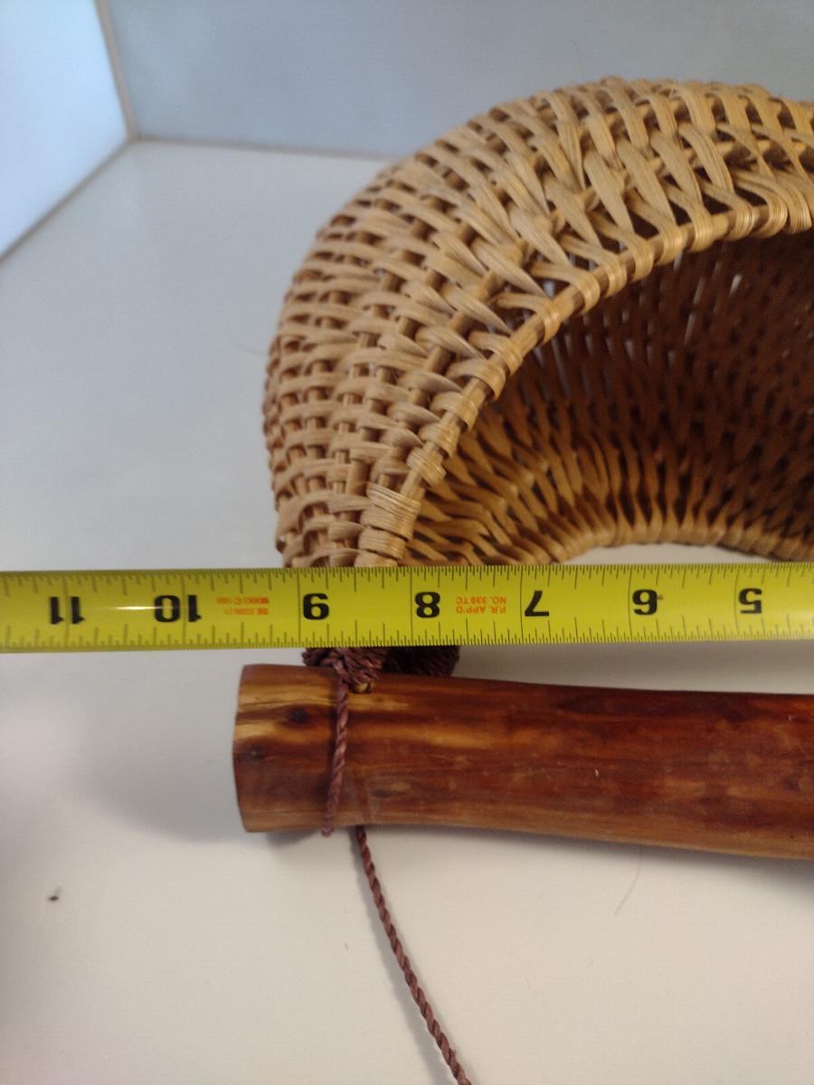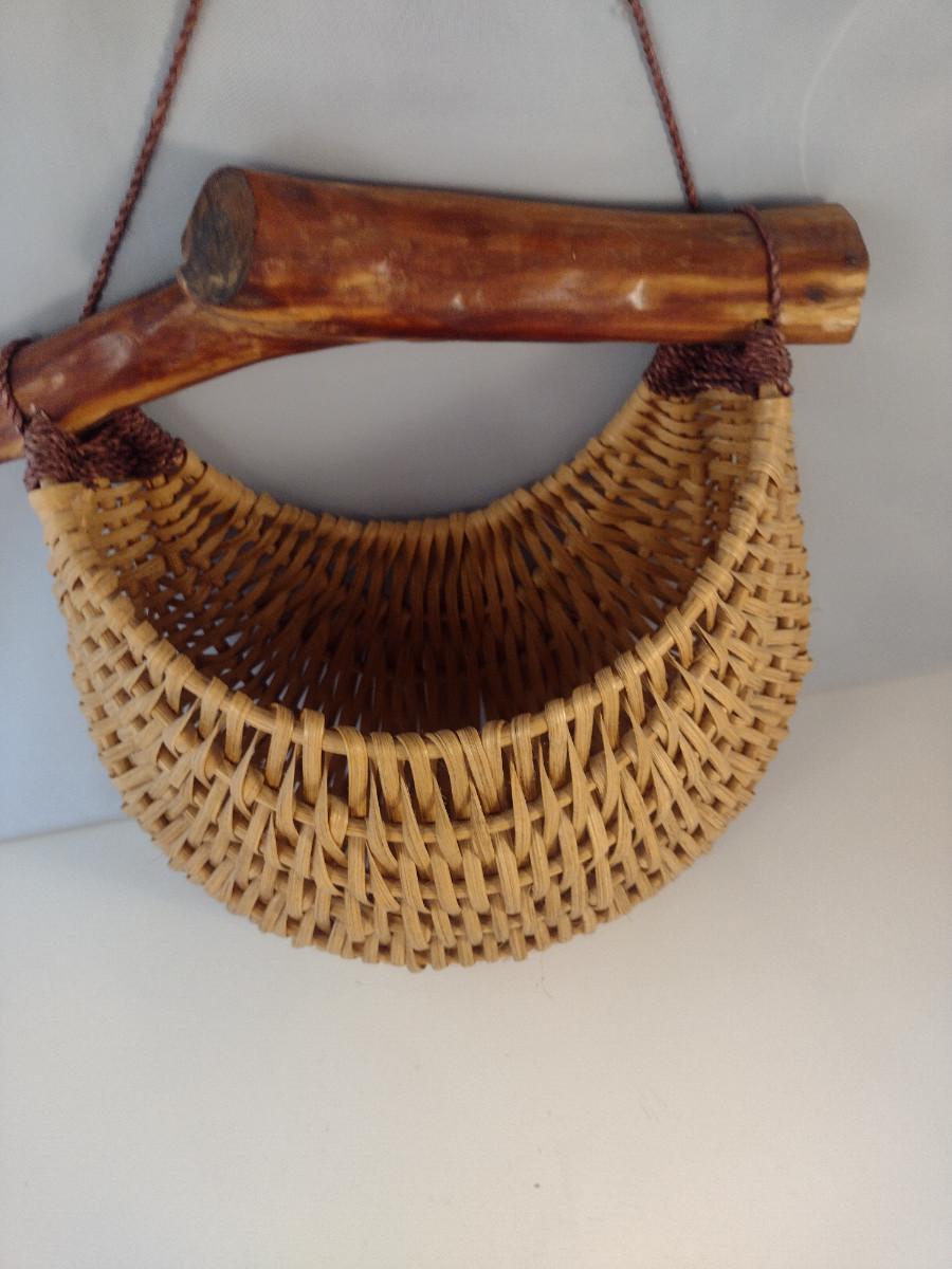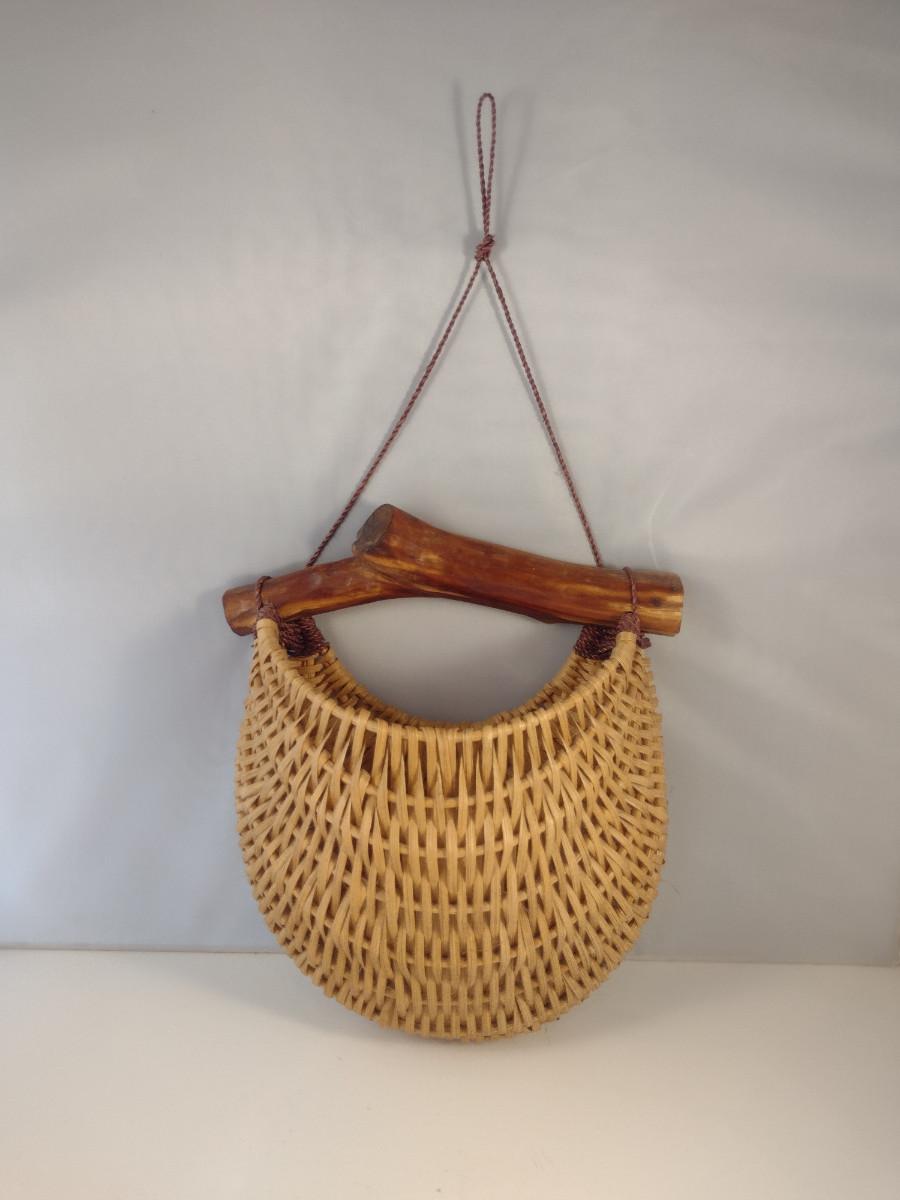 Hand Woven, Artisan Created Hanging Basket. Measures approx 10" tall, 9" wide, 5" deep.