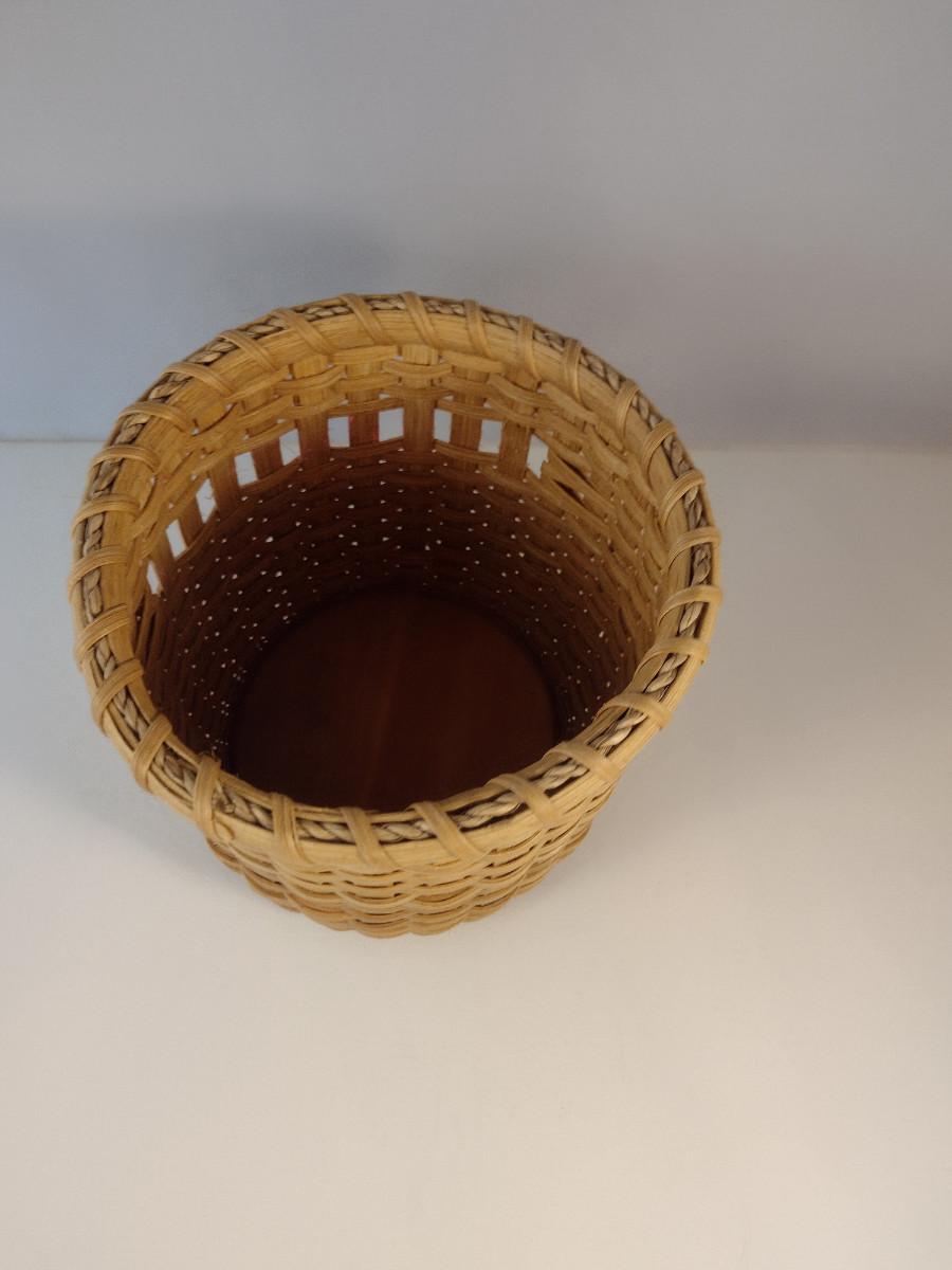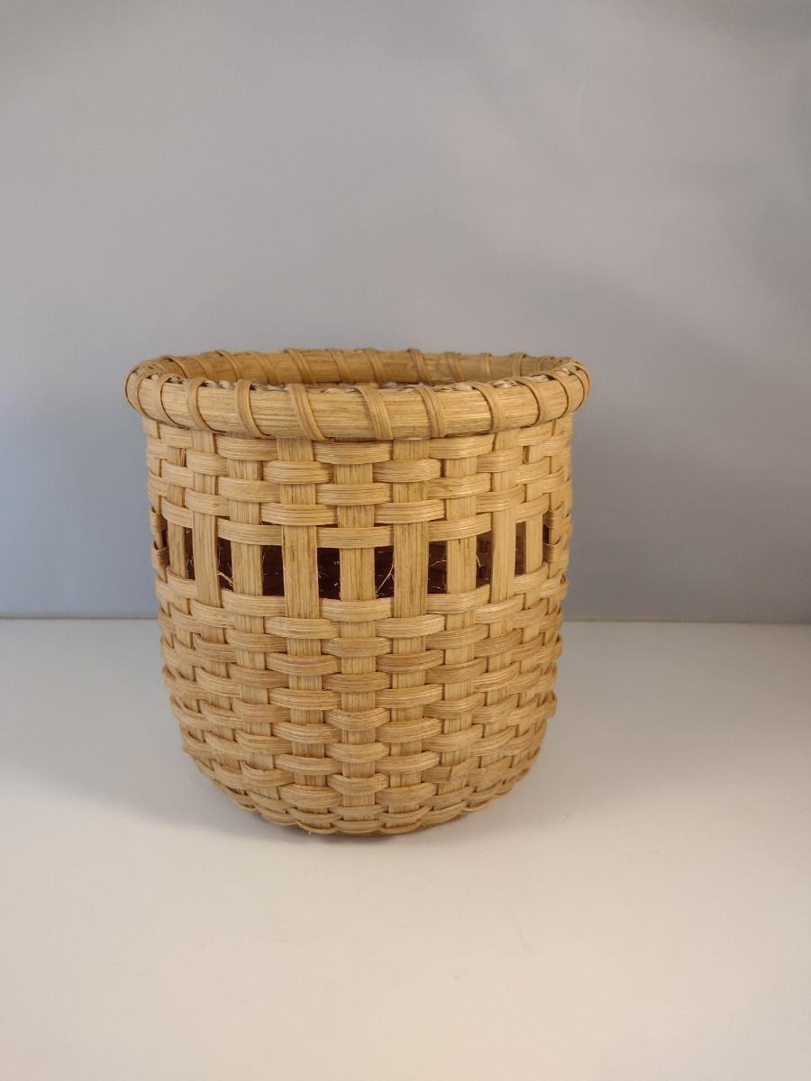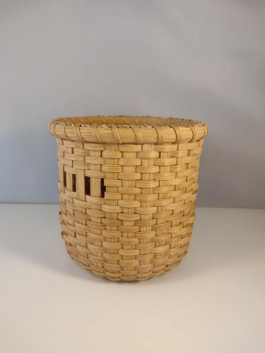 Hand Woven, Artisan Created Round Basket with Window Design. Measures approx 6 1/2" tall, 6 1/2" wide.