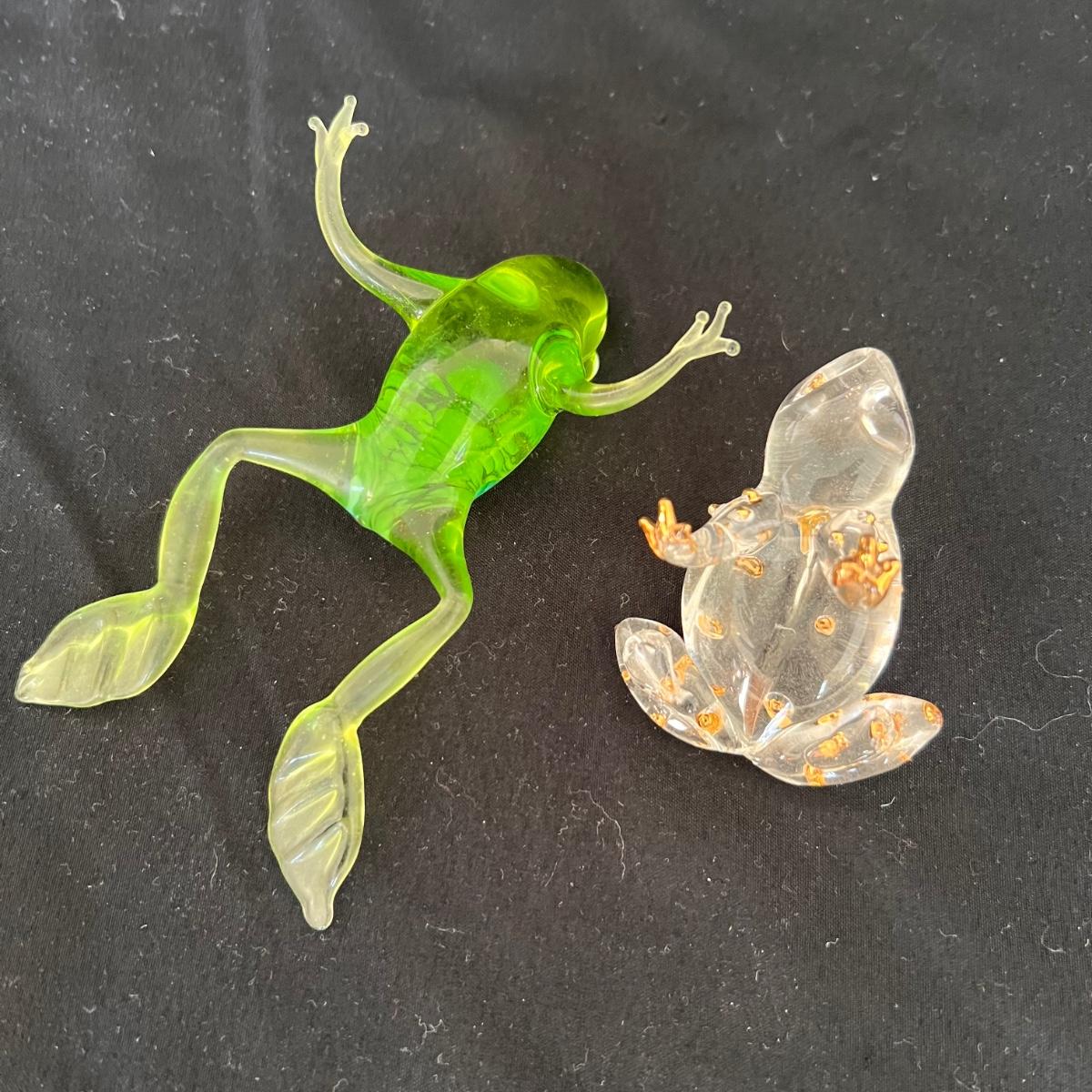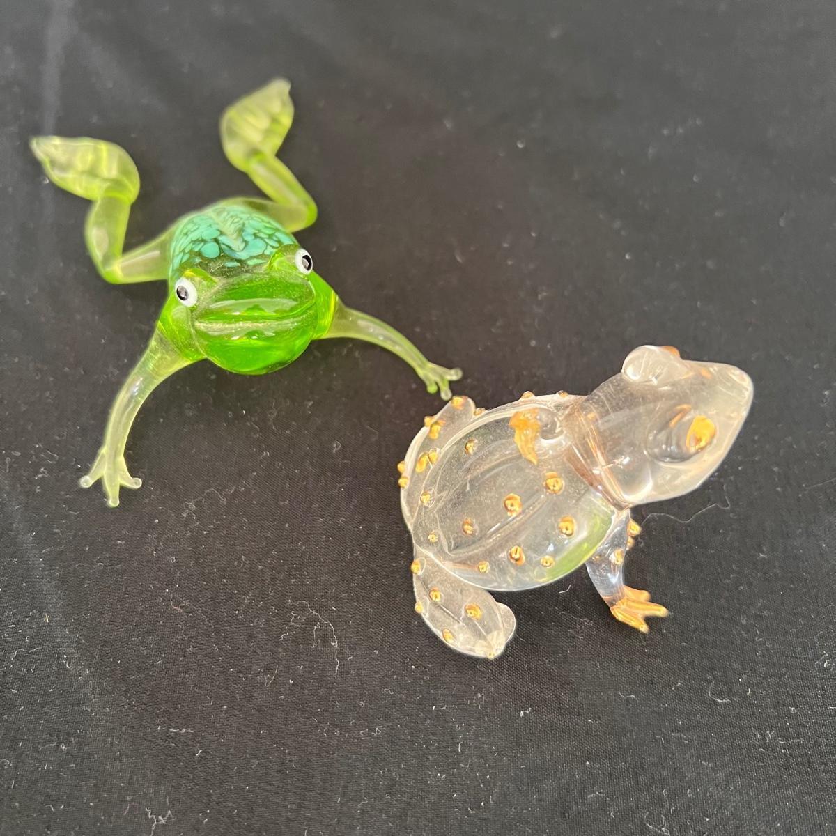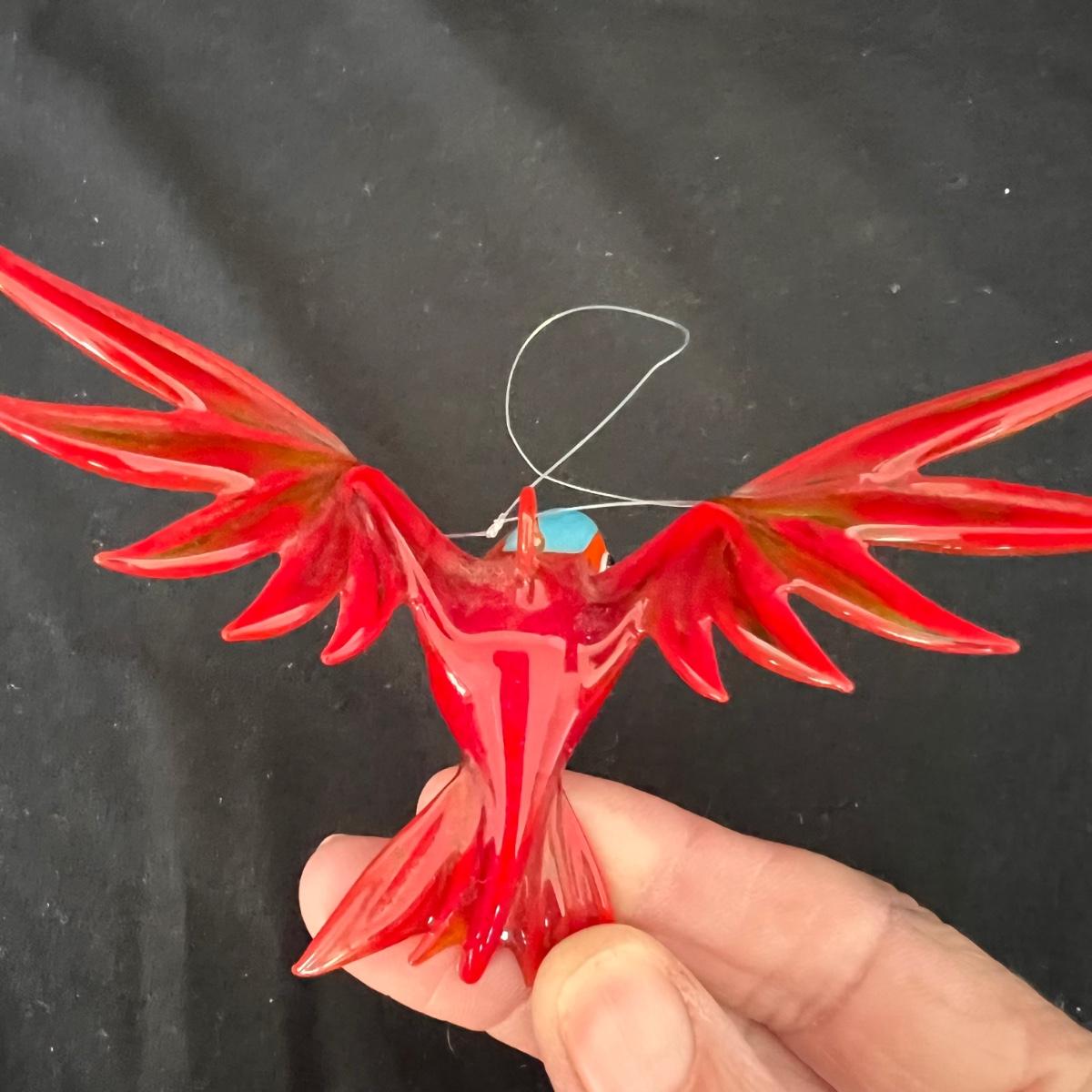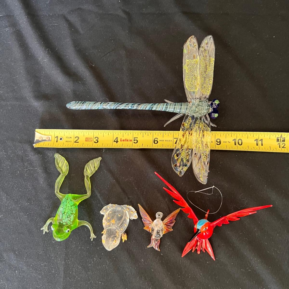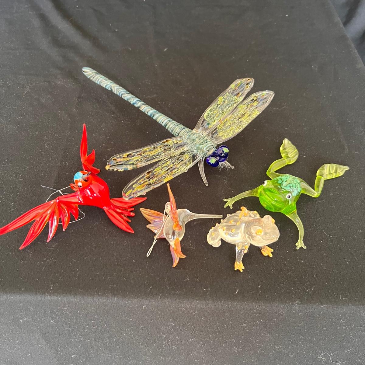 Five glass items, no markings found. The two hummingbirds are set up to hang.