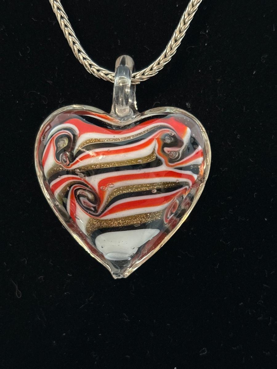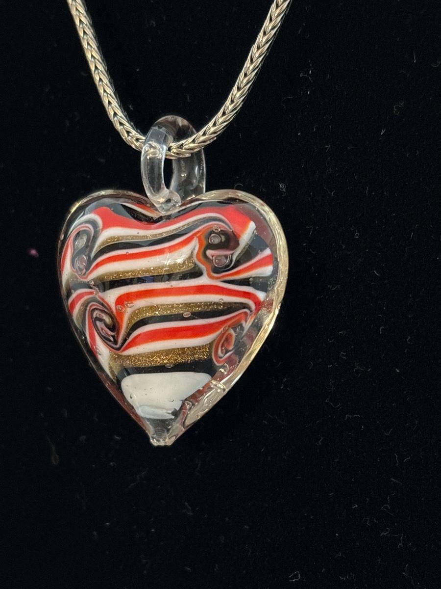 Handblown, glass, heart, pendant, silver, toned chain necklace