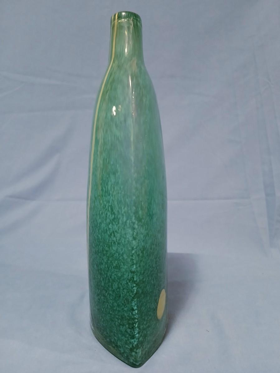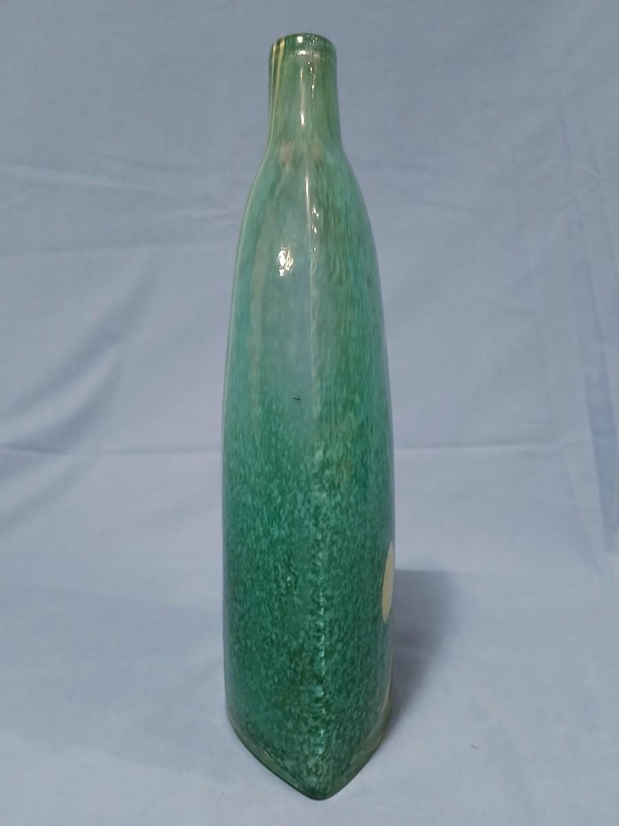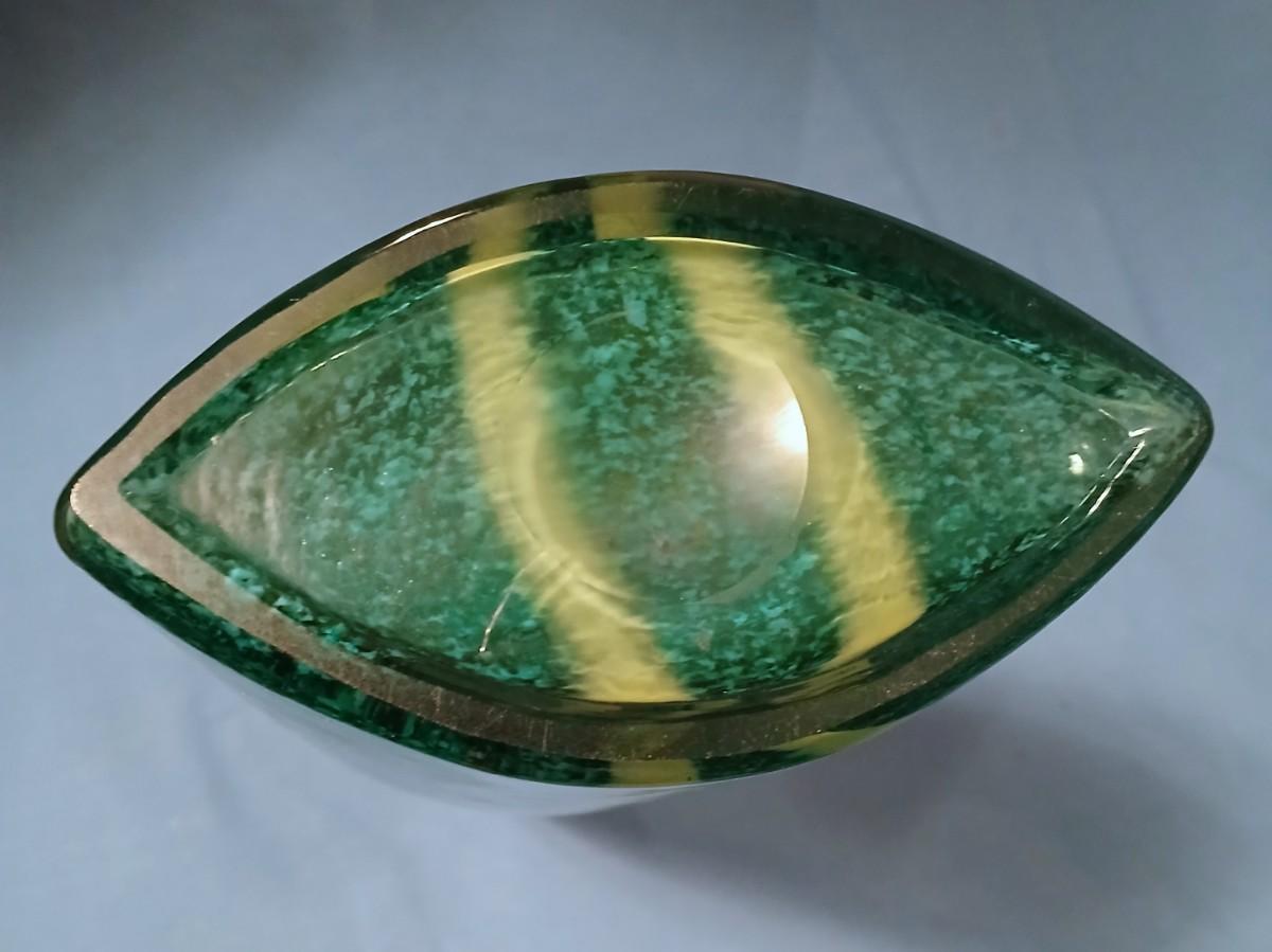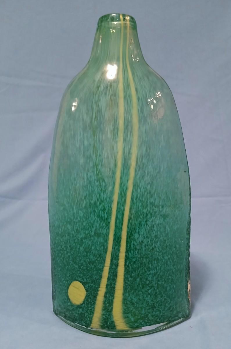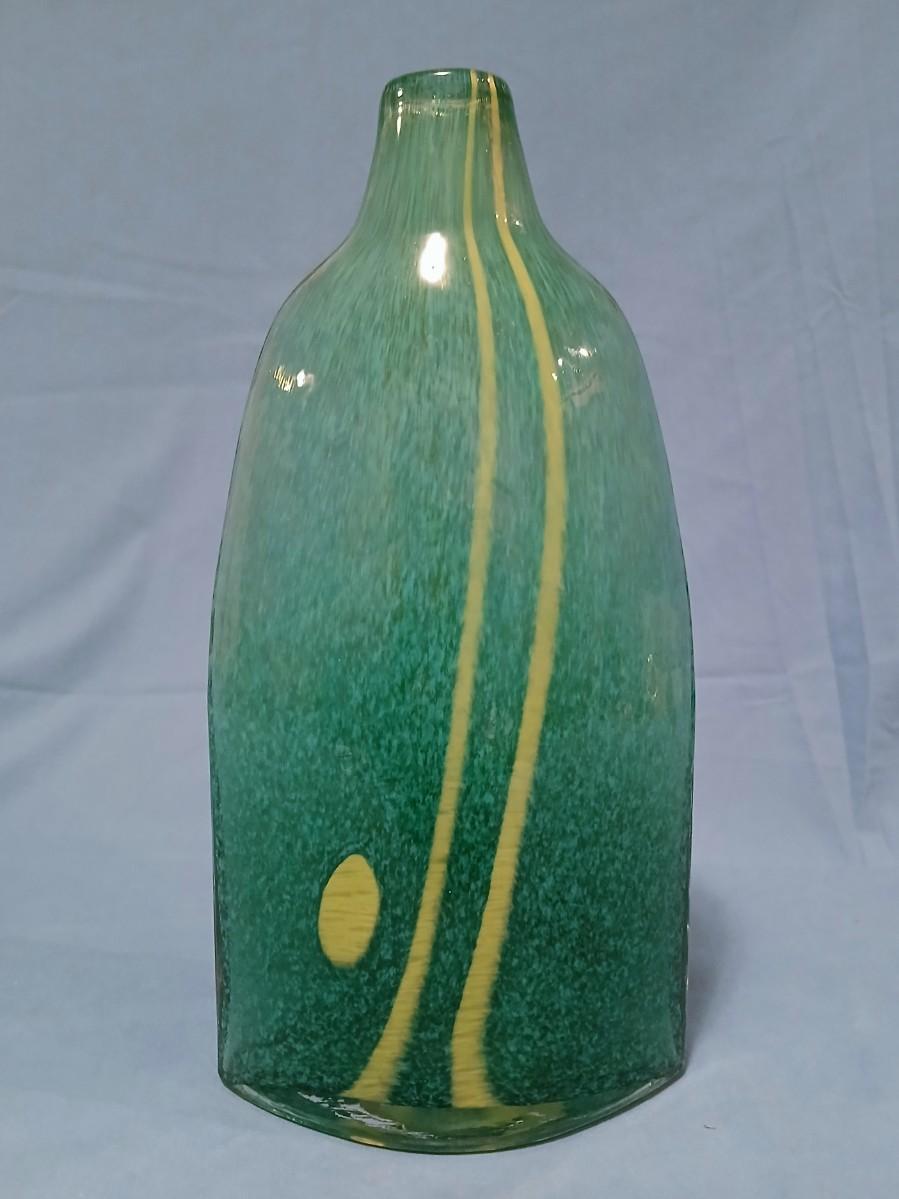 Handblown Glass Vase Green & Yellow Fused Design