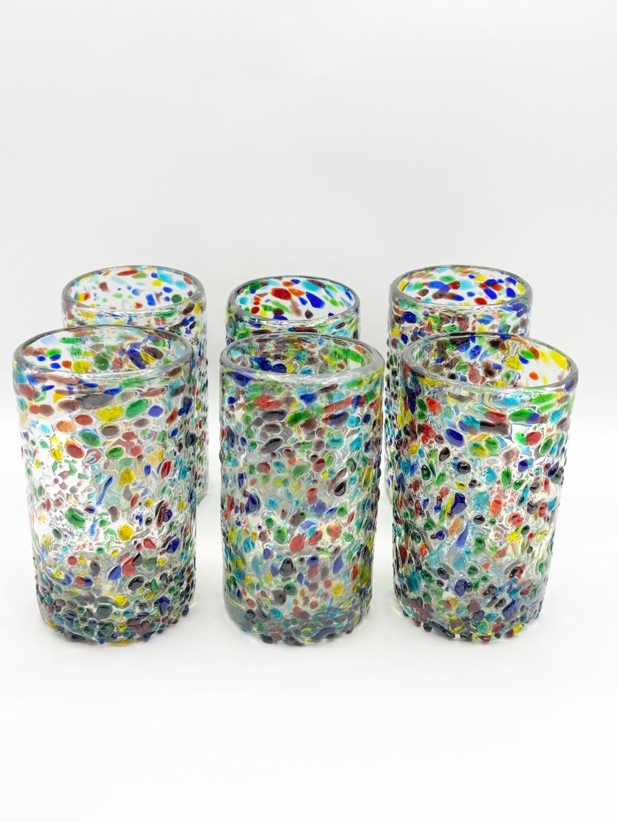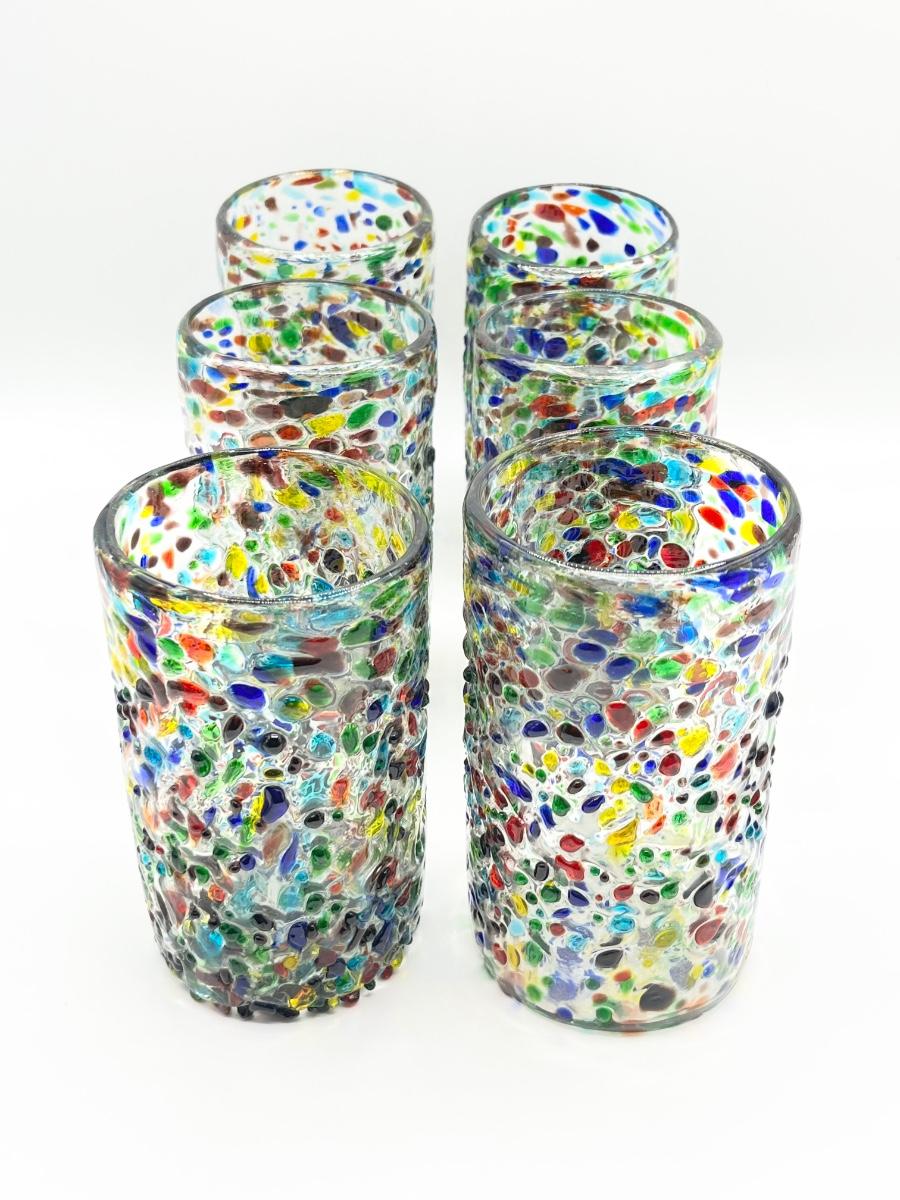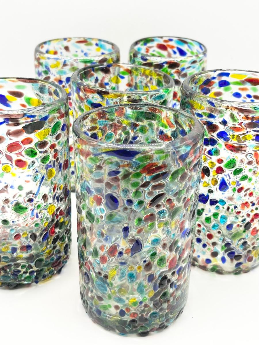 Handblown Mexican Confetti Water Glasses ~ Set Of Six (6)