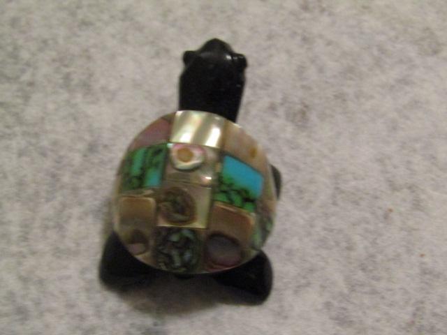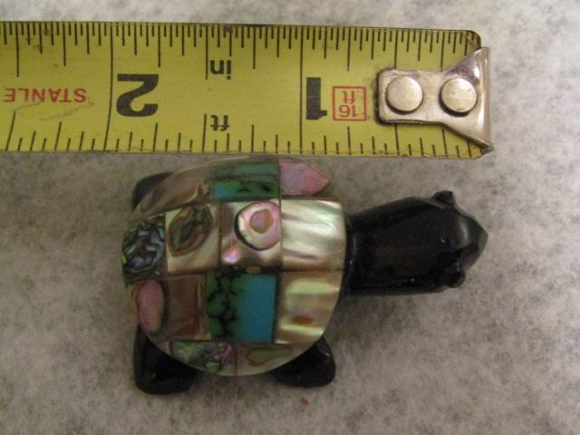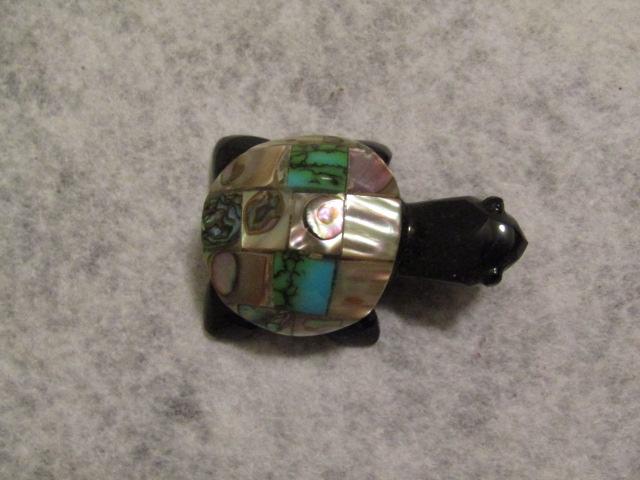 Handcarved Black Onyx Turtle with Gemstone and Abalone Shell 1 1/4" x 2"