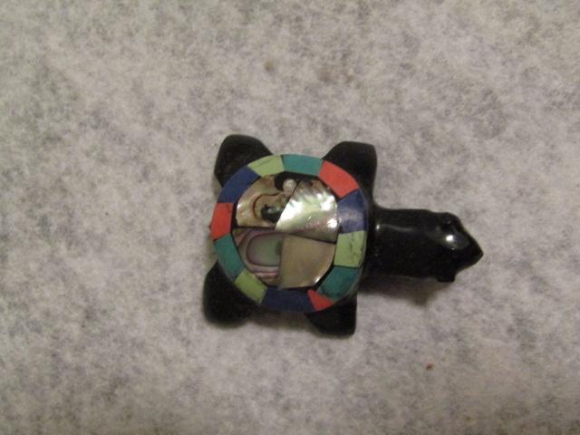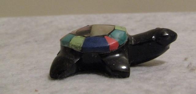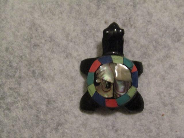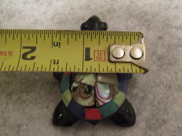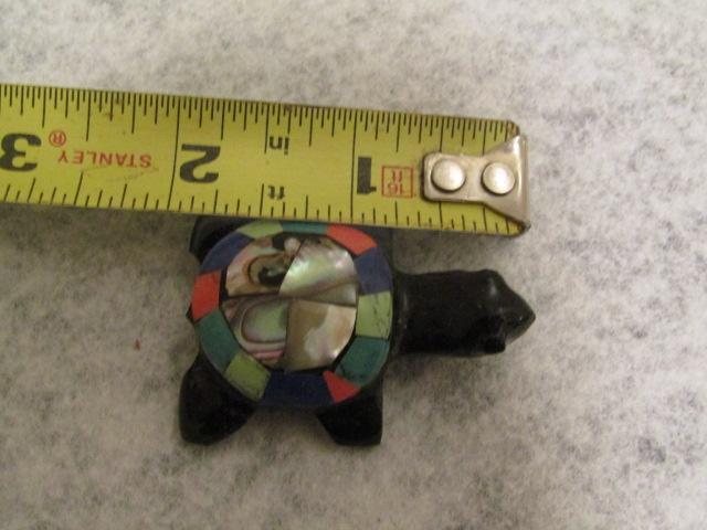 Handcarved Black Onyx Turtle with Gemstone and Abalone Shell 1 1/2" x 2"